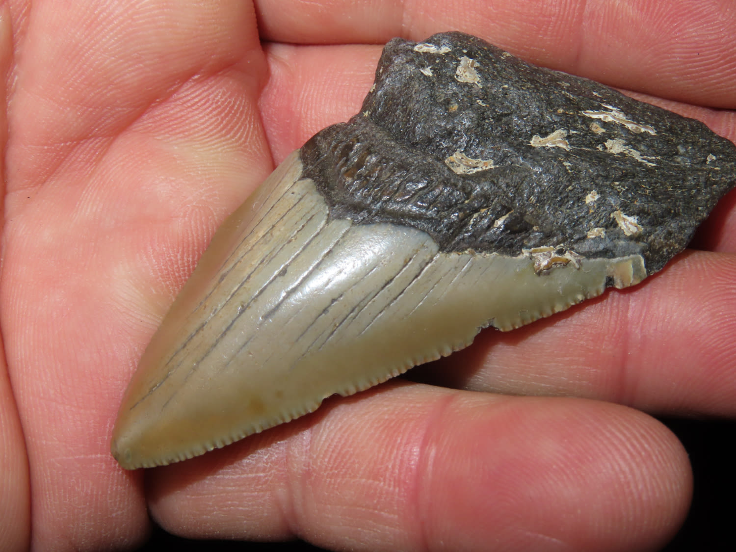 Fossilized Shark Tooth, Pre Historic Fossilized Megladon’s Tooth 2 3/4″