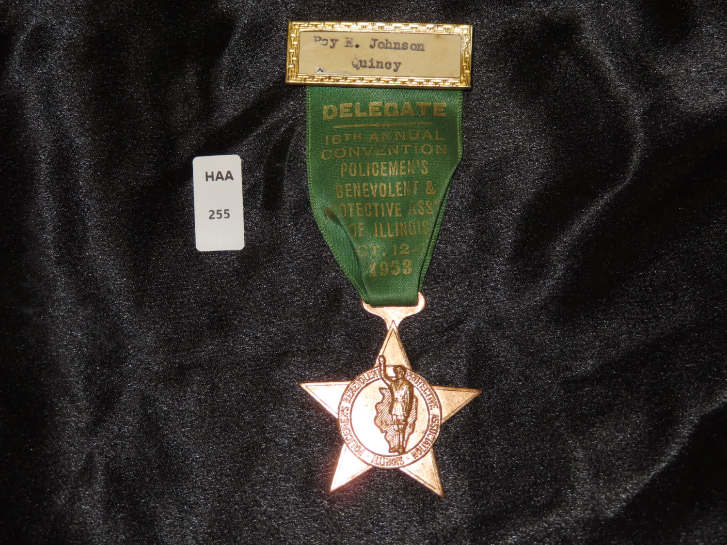 Roy E. Johnson of Quincy’s Delegate 16th Annual Convention of Policemen’s Benevolent & Protective Ass’n. of Illinois, dated Oct 12-13, 1953