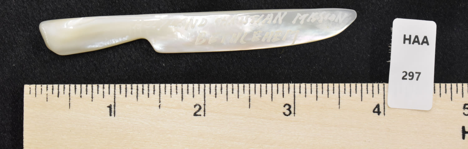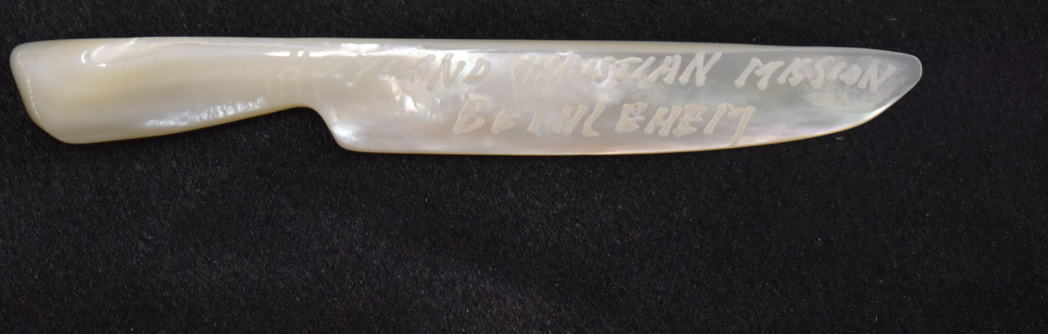 Mother-of-Pearl Commemoritave Knife-Engraved “Holyland Christian Mission Bethlehem”