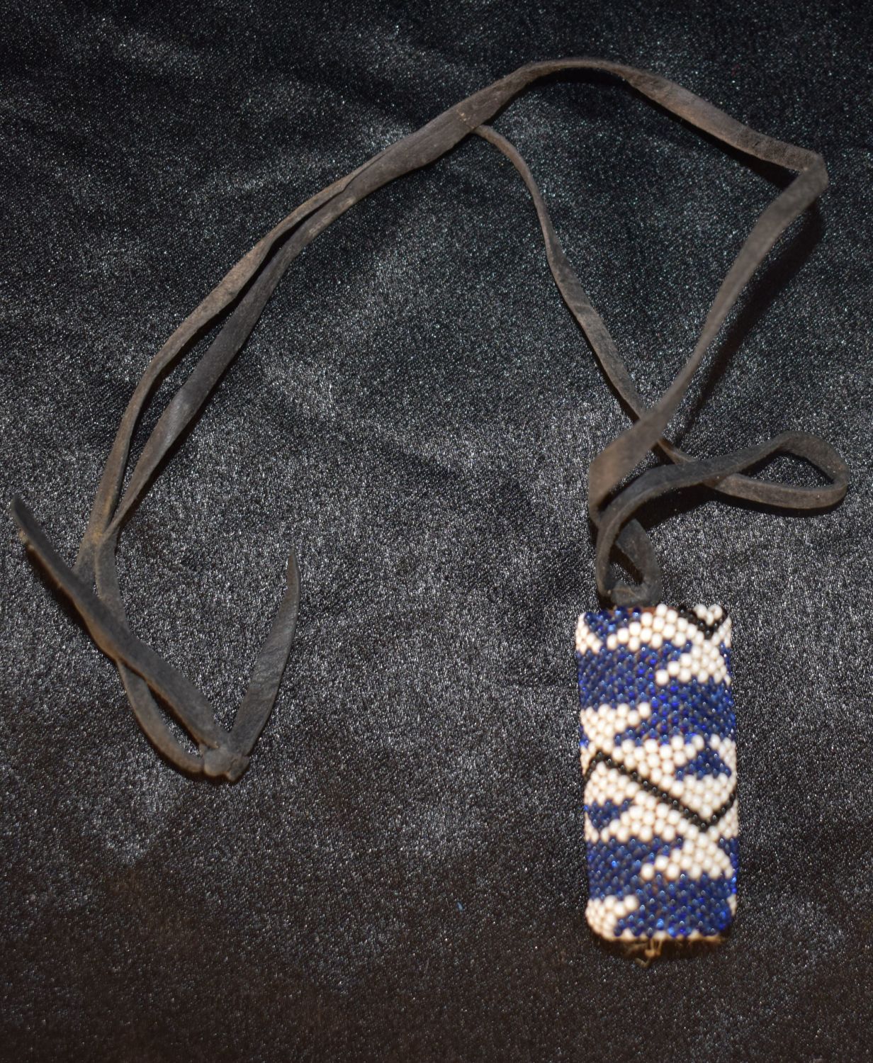Seed Bead Pendant on Leather Thong Necklace