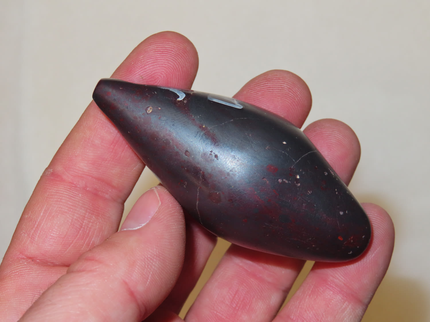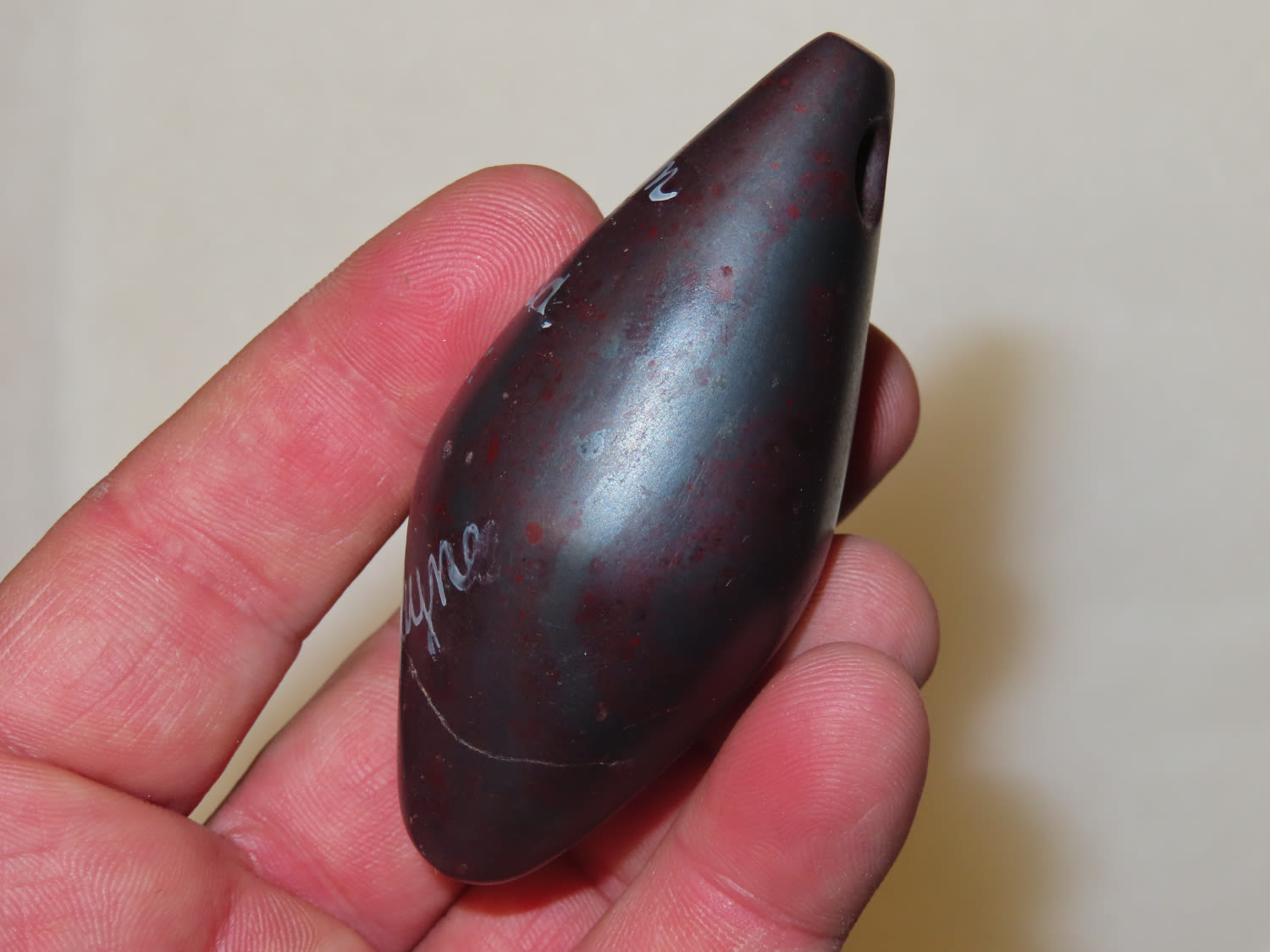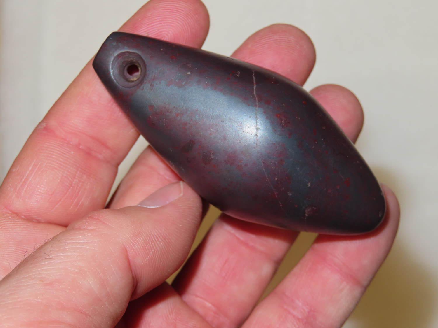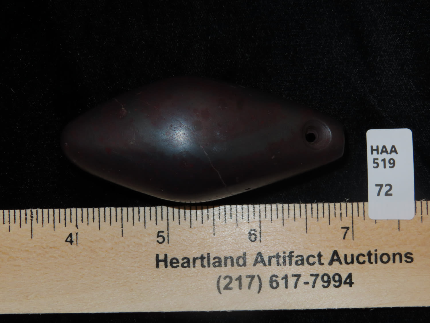 3″ Drilled Hematite Plummet, found in Morgan Co, Indiana, Ex Judge Edward Payne Collection
