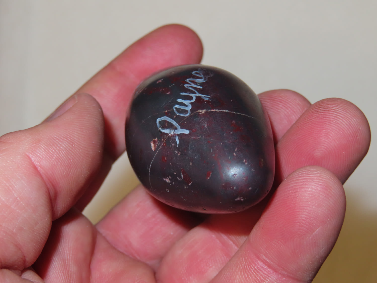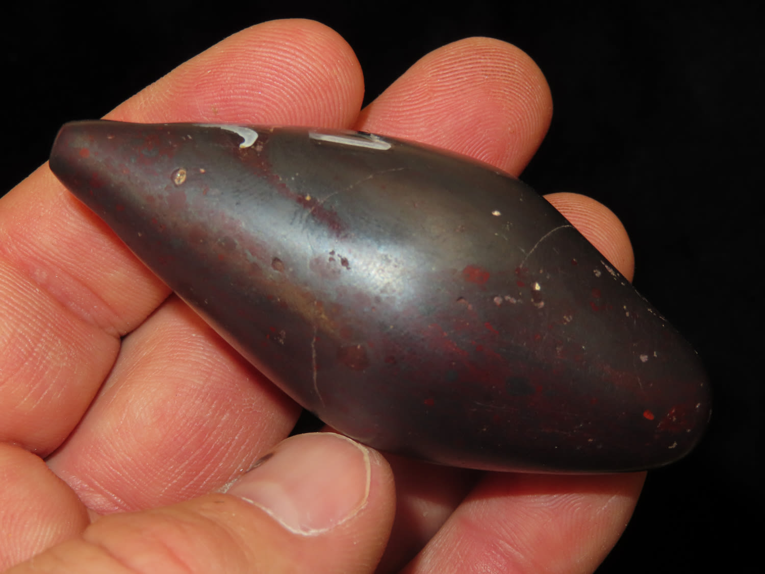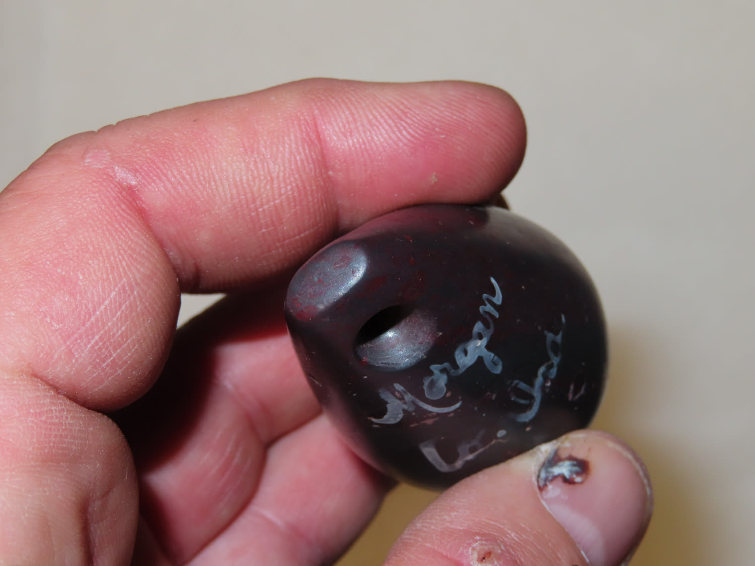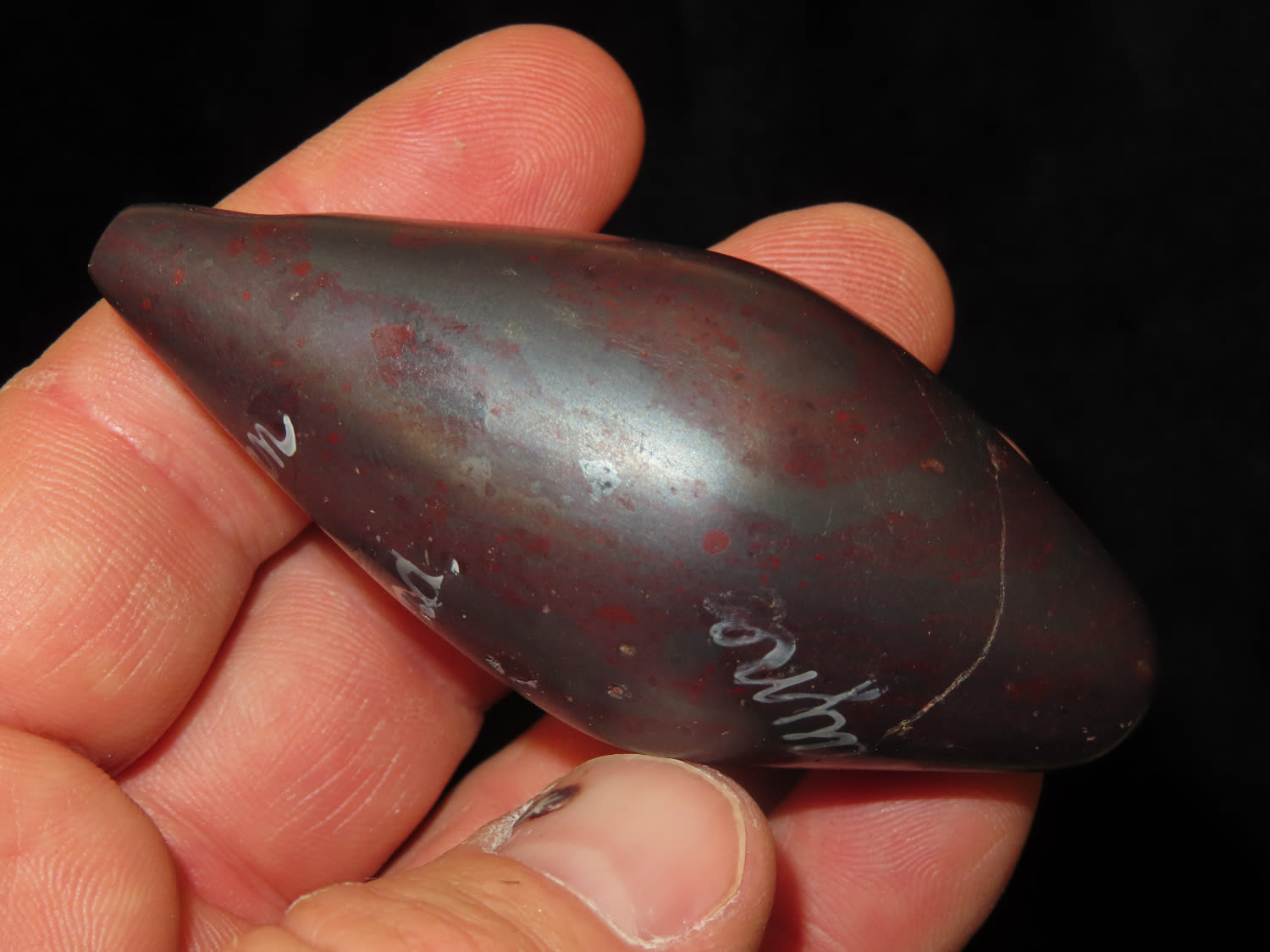 3″ Drilled Hematite Plummet, found in Morgan Co, Indiana, Ex Judge Edward Payne Collection