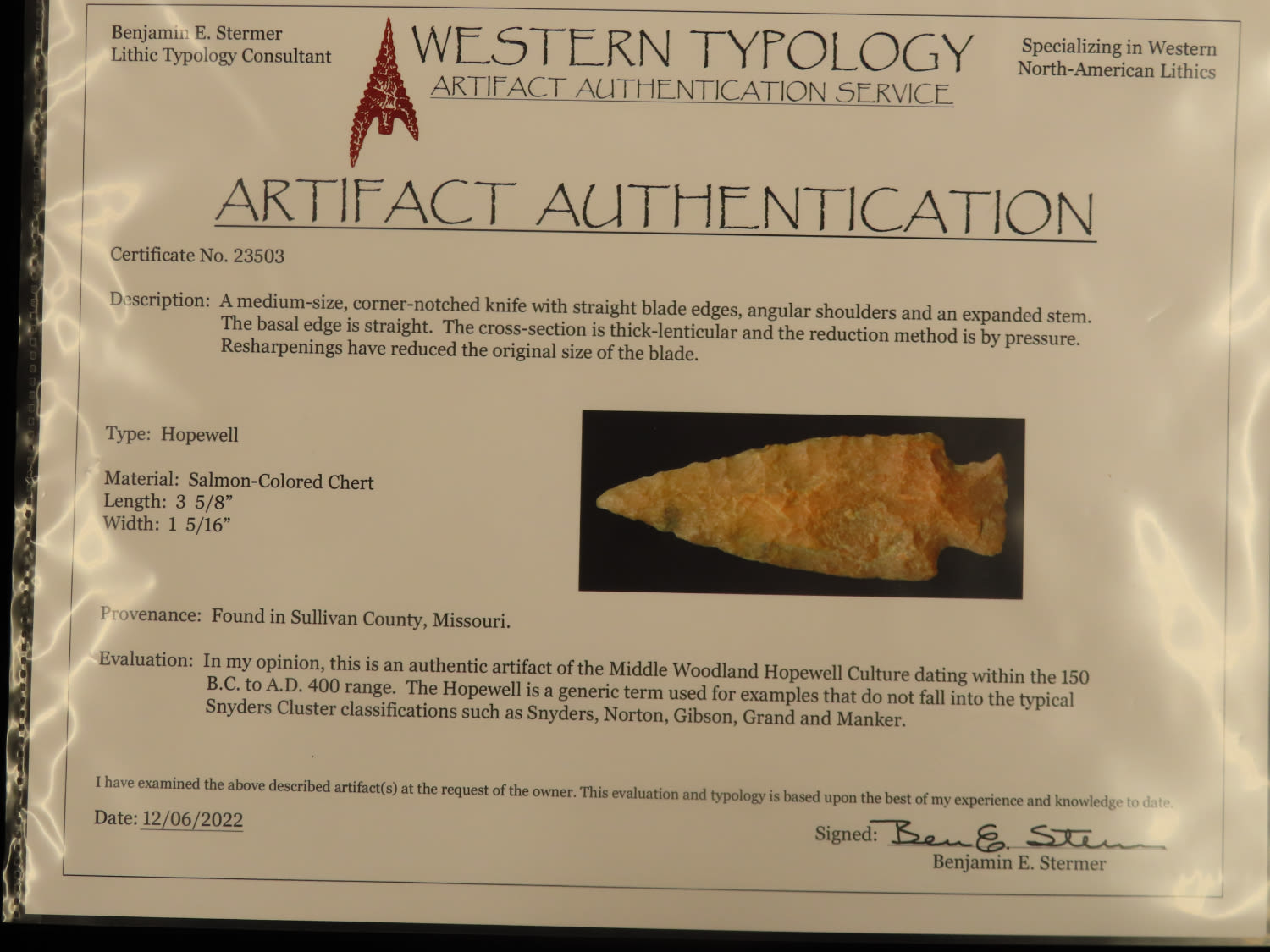 3 5/8″ Hopewell, Stermer COA, found in Sullivan Co Missouri, Ex Steve McCabe Collection, Milan, Missouri