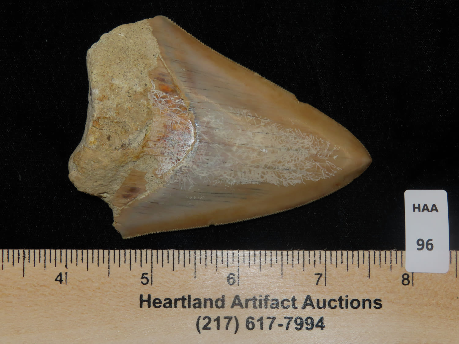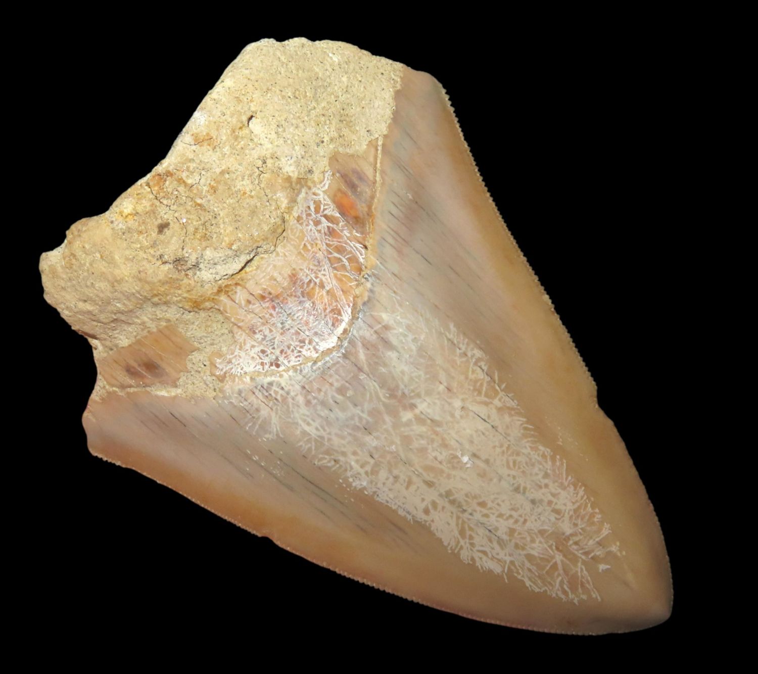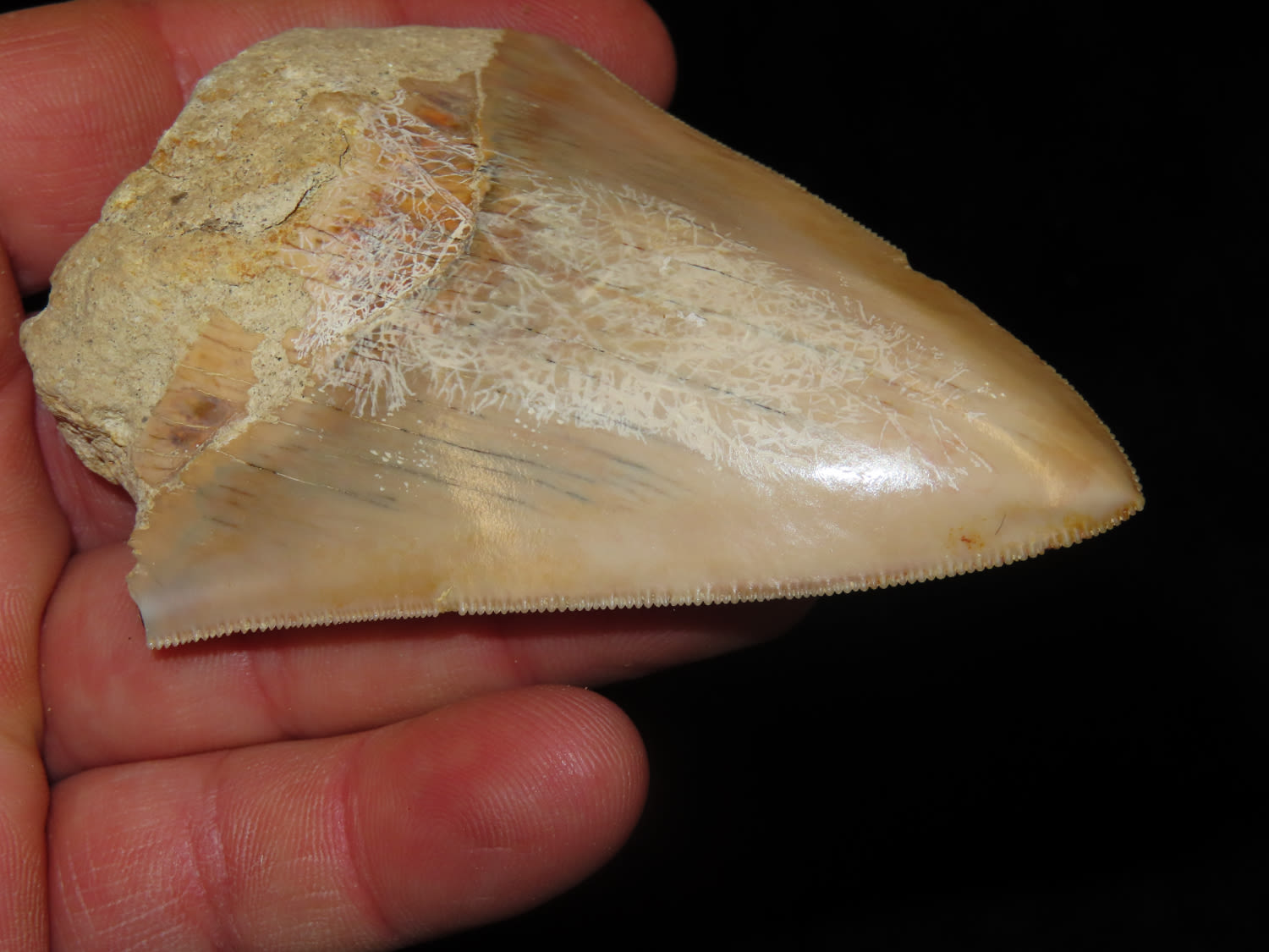 3 1/2″ Fossilized Megaladon Tooth with Super fine Serration on Edges