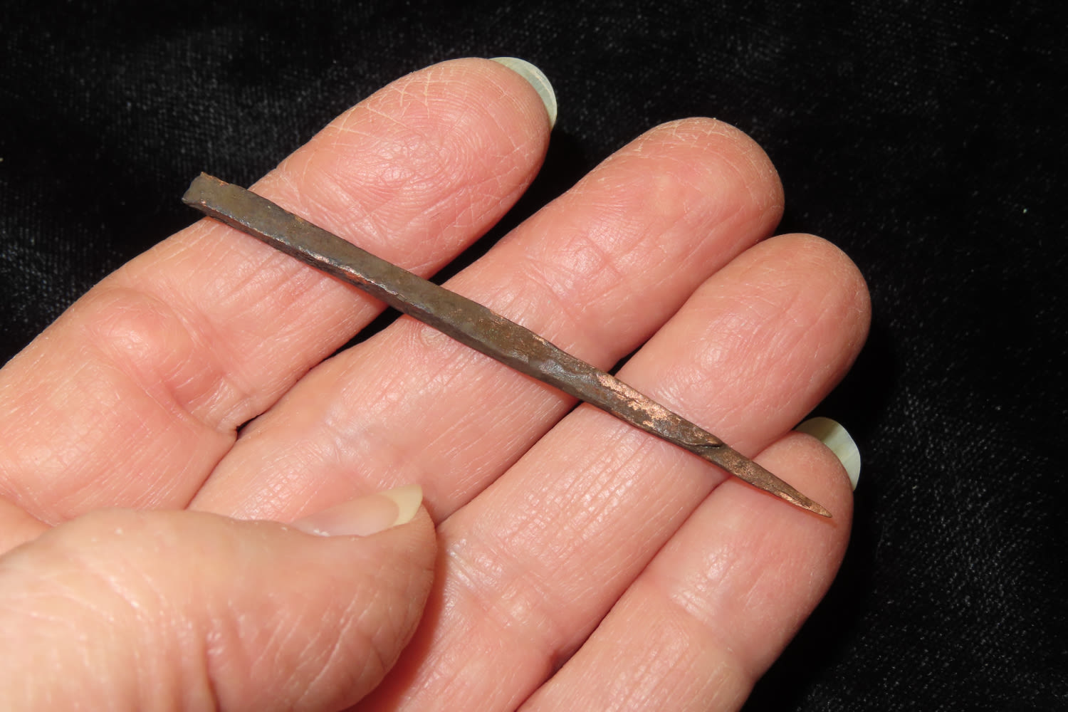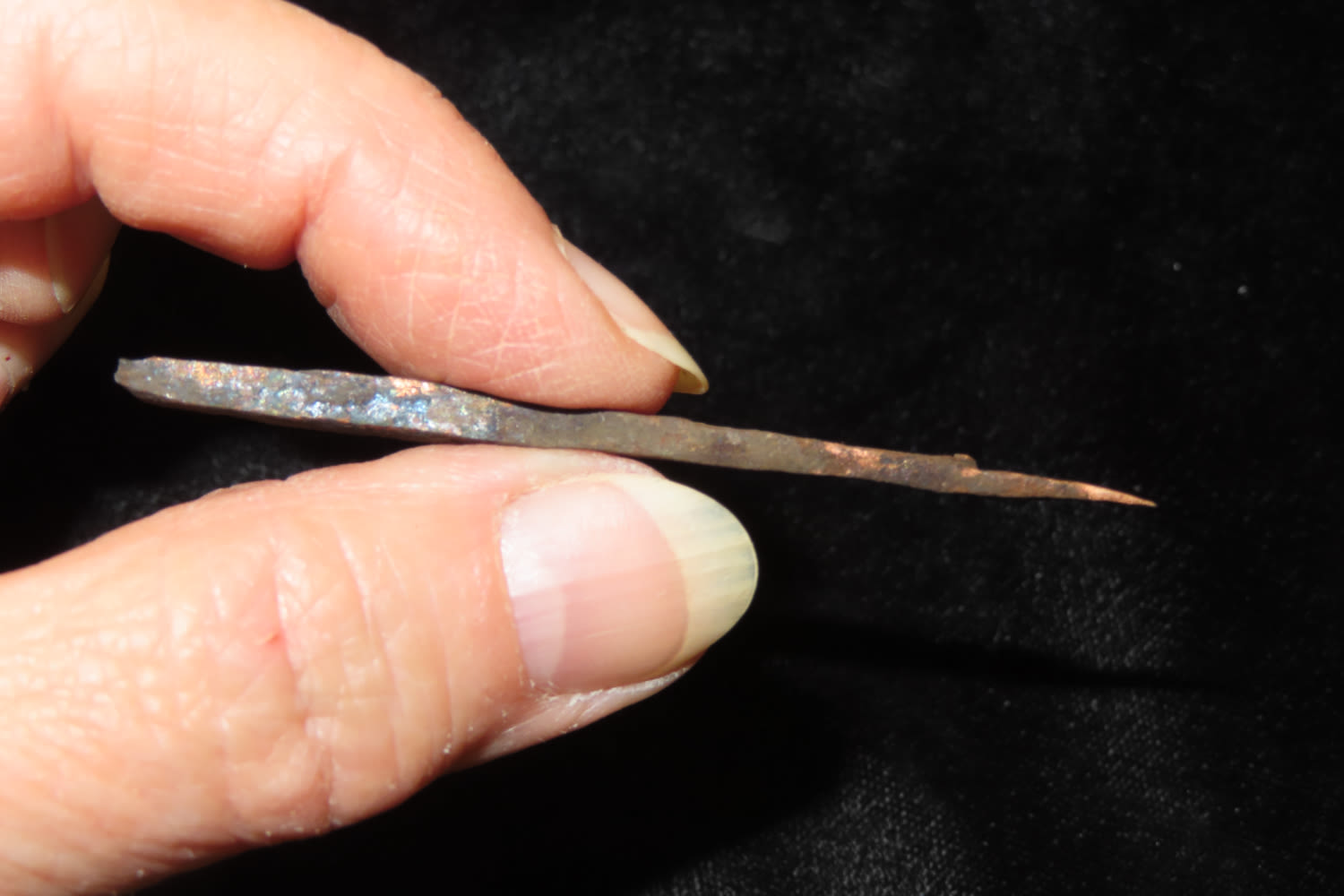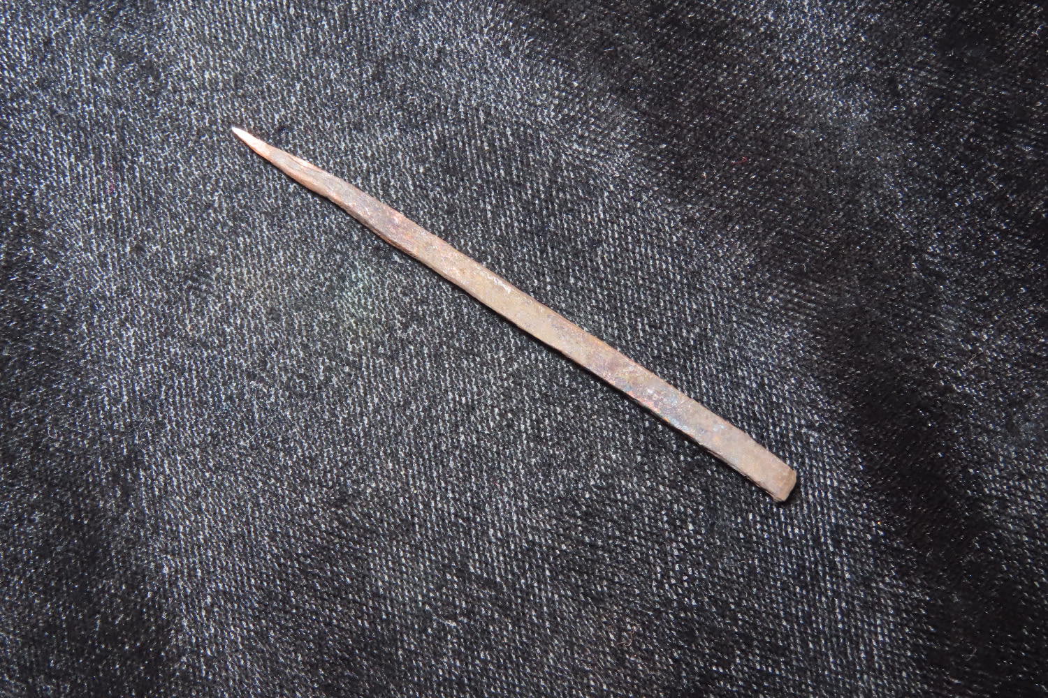 2.1/2″ Copper Awl, Ex Robert Hruska Collection, Milwaukee, Wisconsin EX. Sam Wasion Collection Authentic Native American Artifact