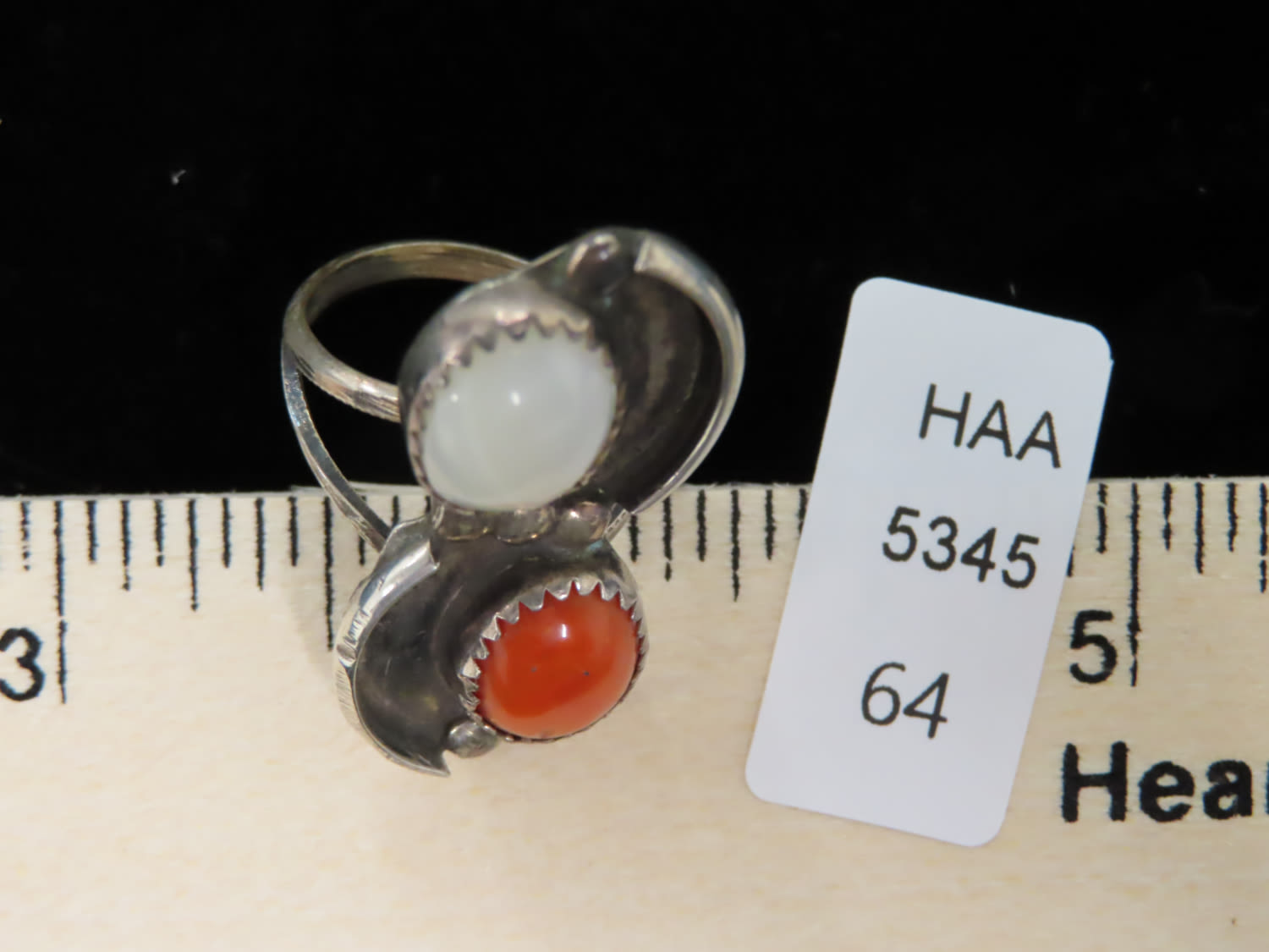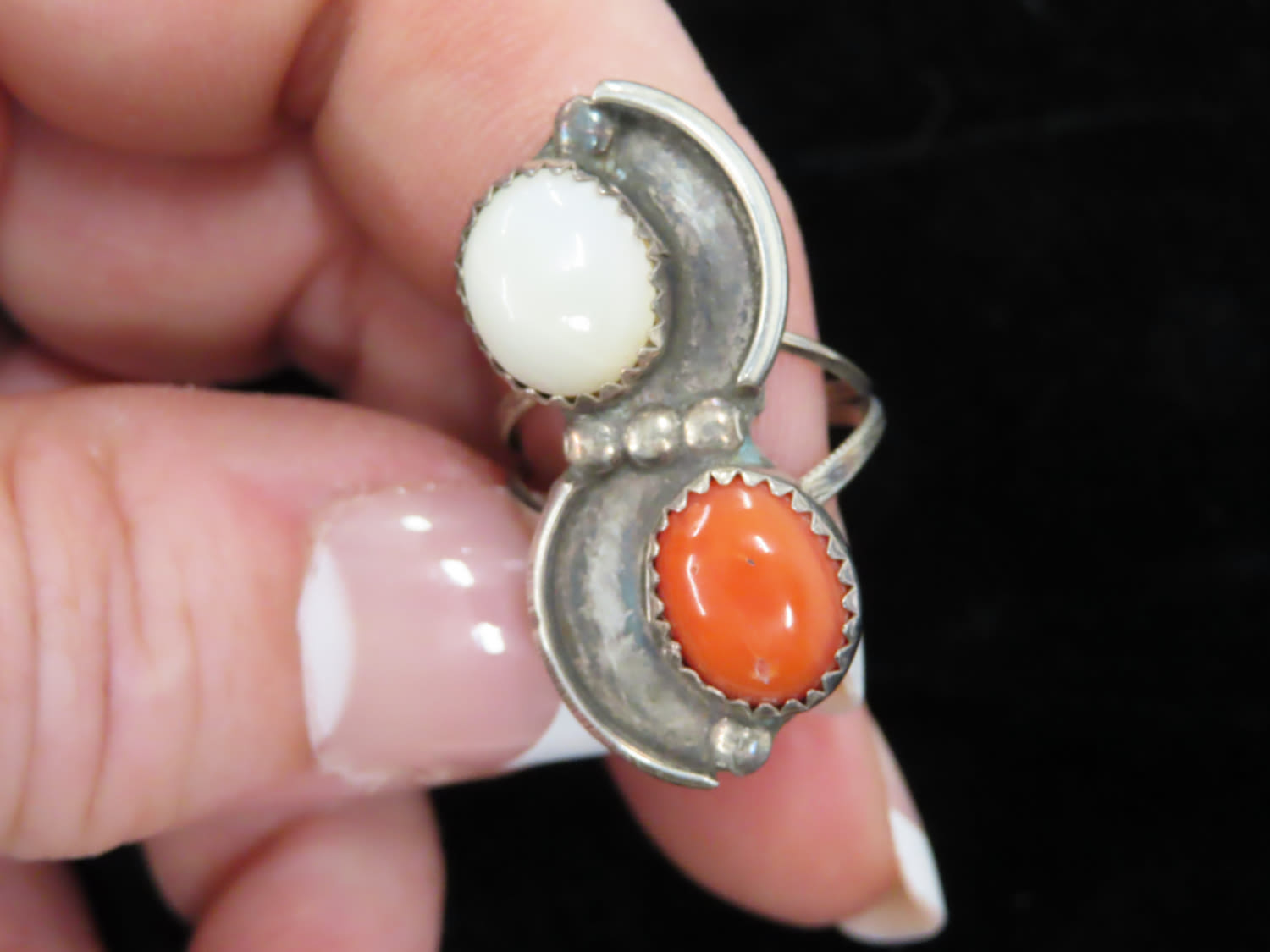 Size 5 Woman’s Sterling Silver Coral and Mother of Pearl Ring