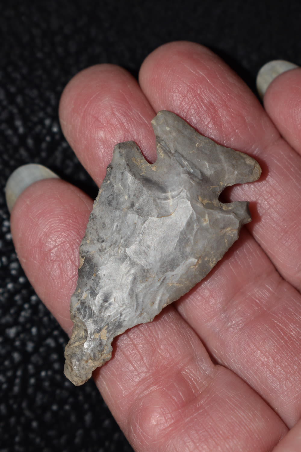 1 13/16″ Kirk Corner Notch found in St. Clair Co, Missouri.