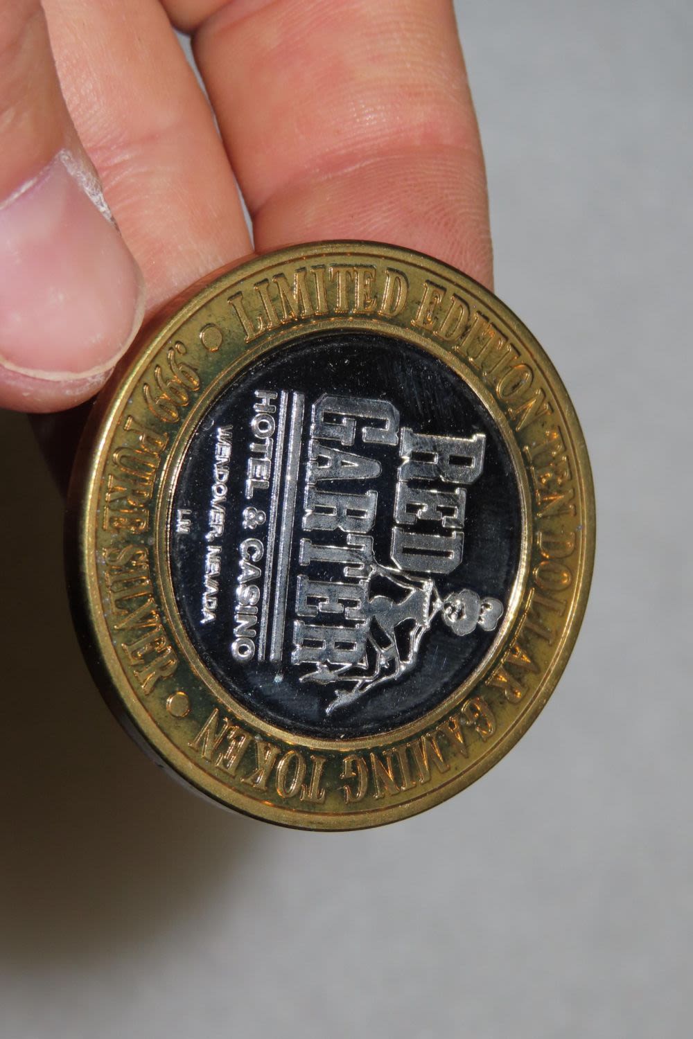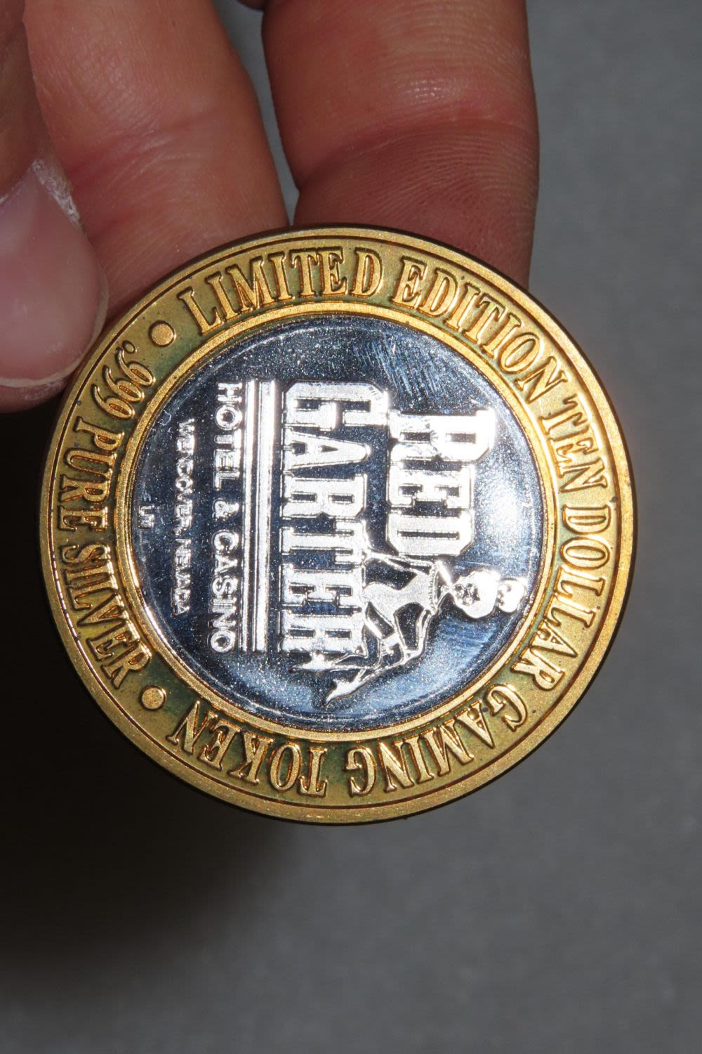 Red Garter Hotel and Casino Wendover NV .999 Fine Silver $10 Ten Dollar Gaming Casino Token