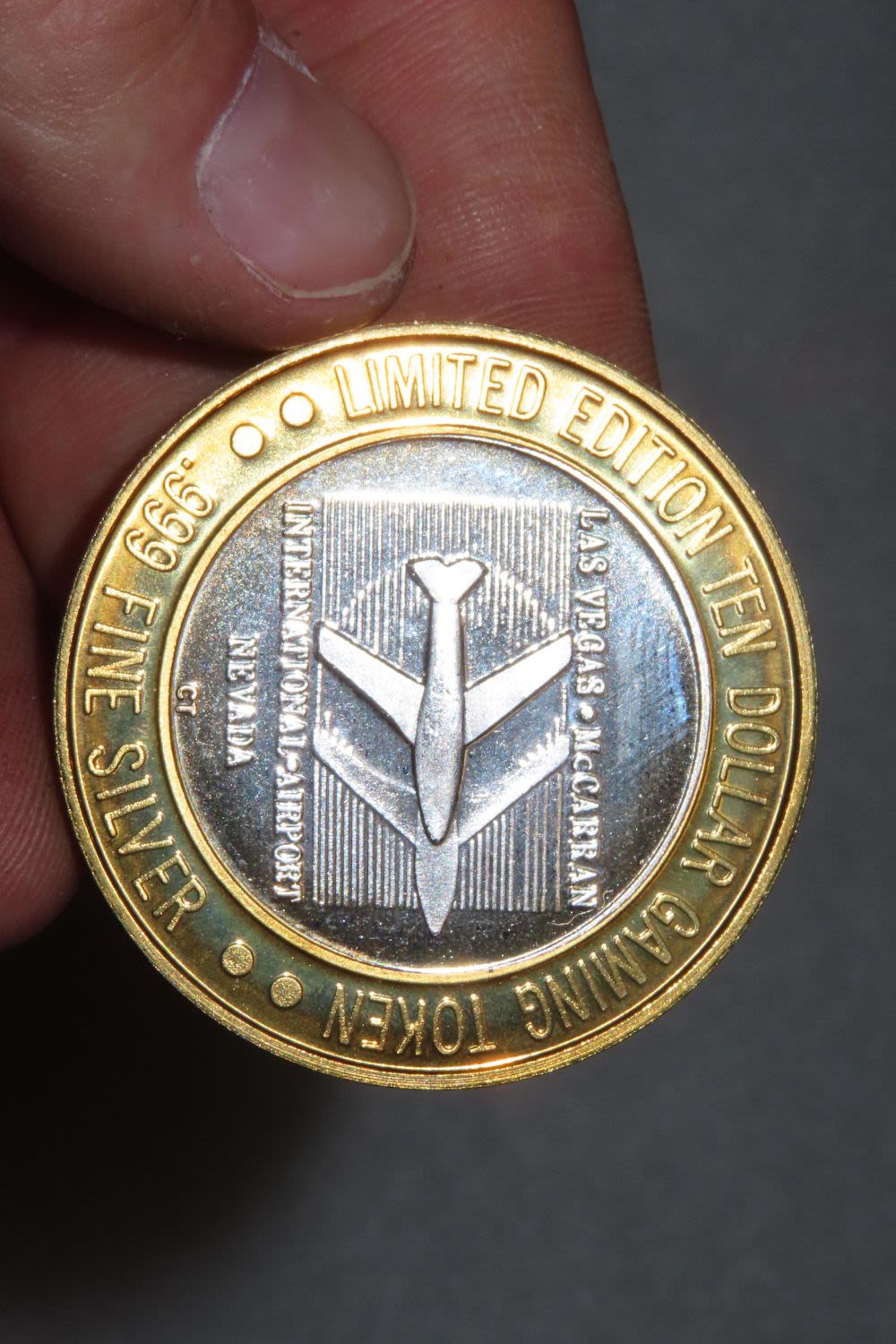 McCarren’s Slots Las Vegas International Airport .999 Fine Silver $10 Ten Dollar Gaming Casino Token