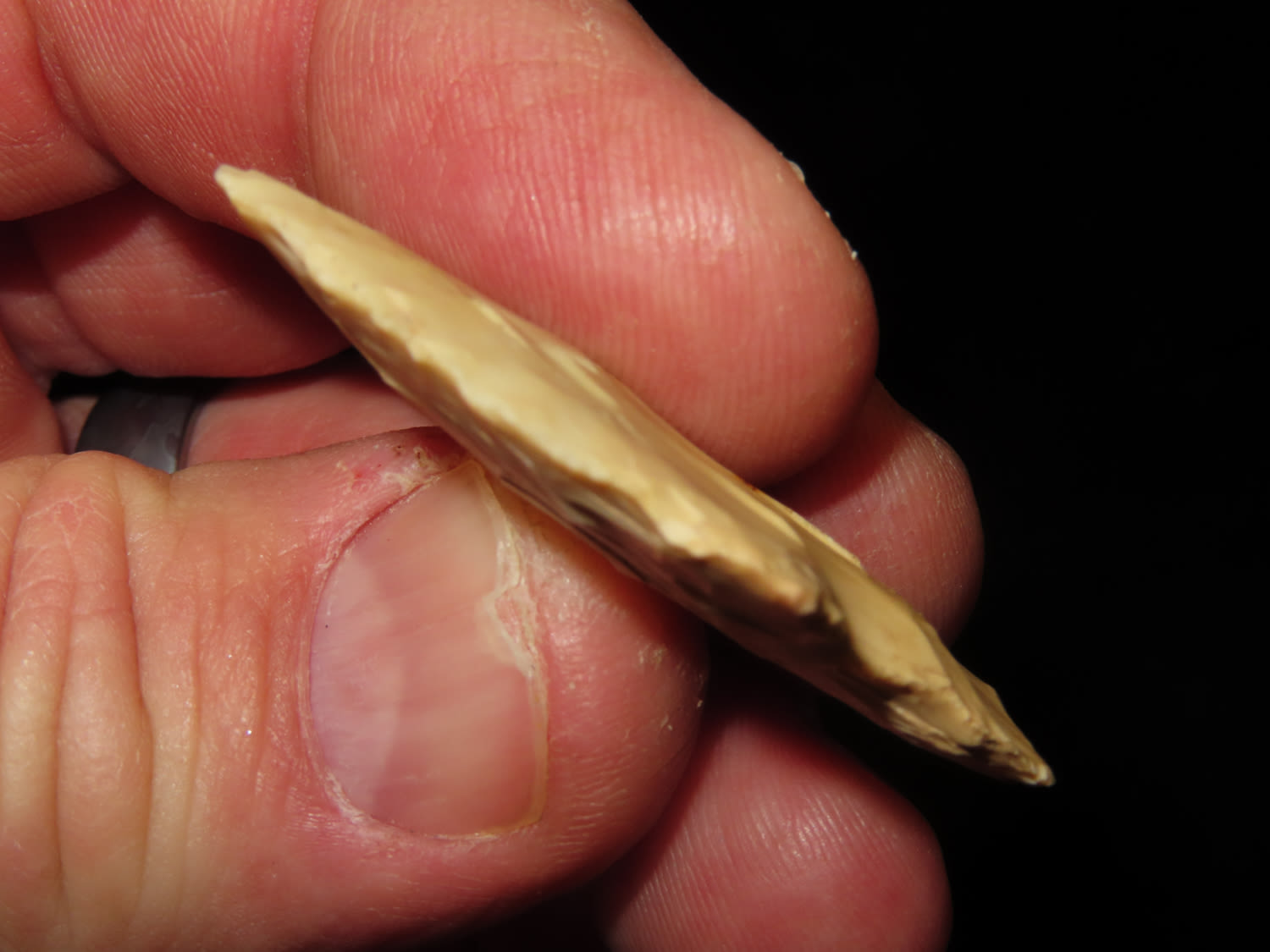 NICE THIN DICKSON FOUND BY LOWELL BRENNER IN PLATTE COUNTY MISSOURI, INDIAN ARROWHEAD, ARTIFACT