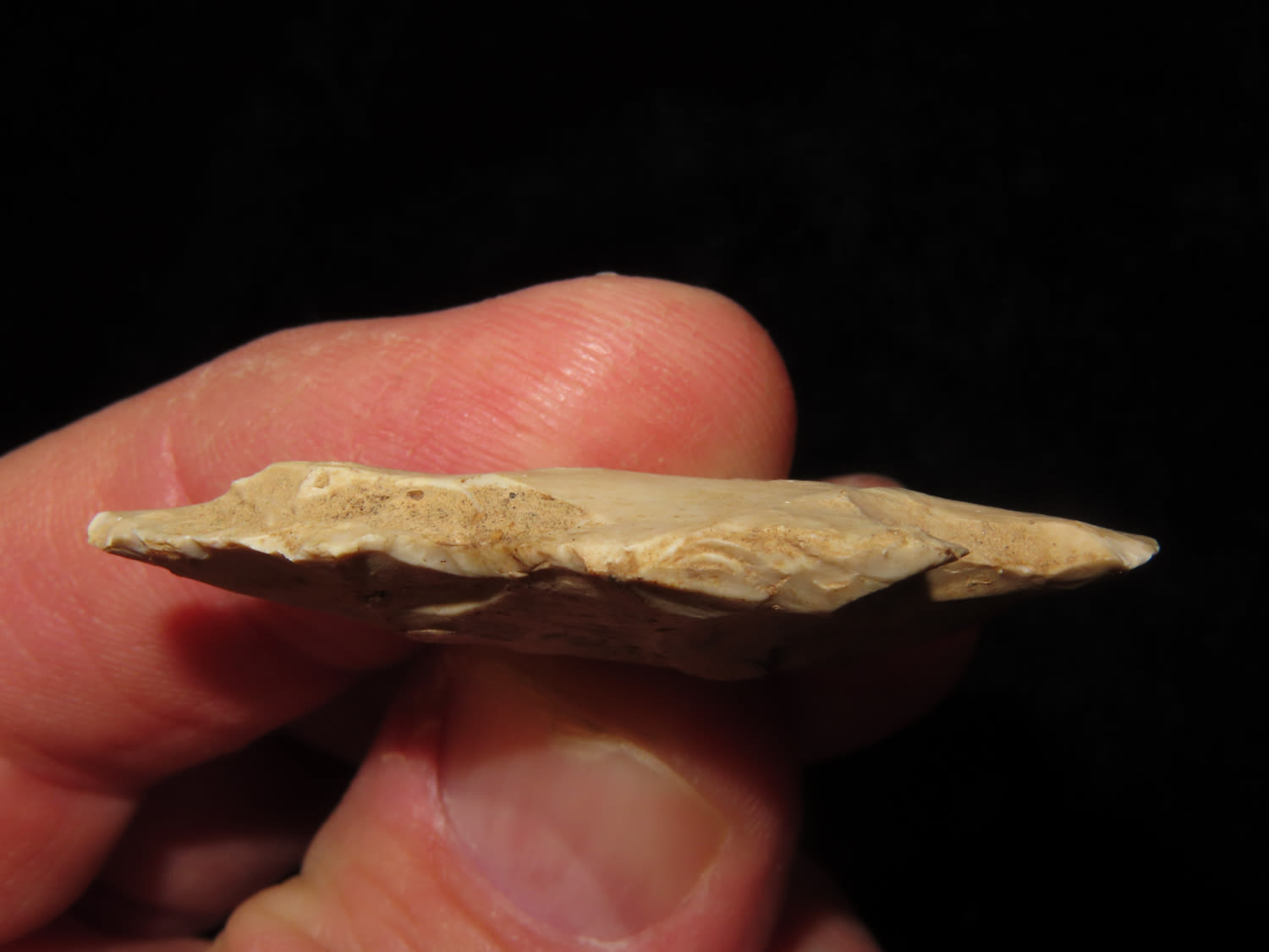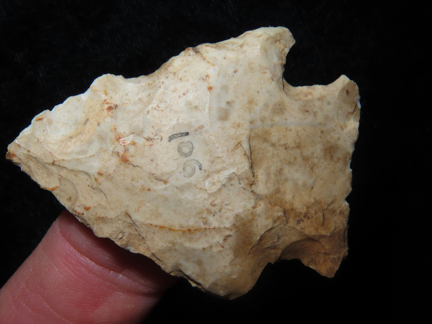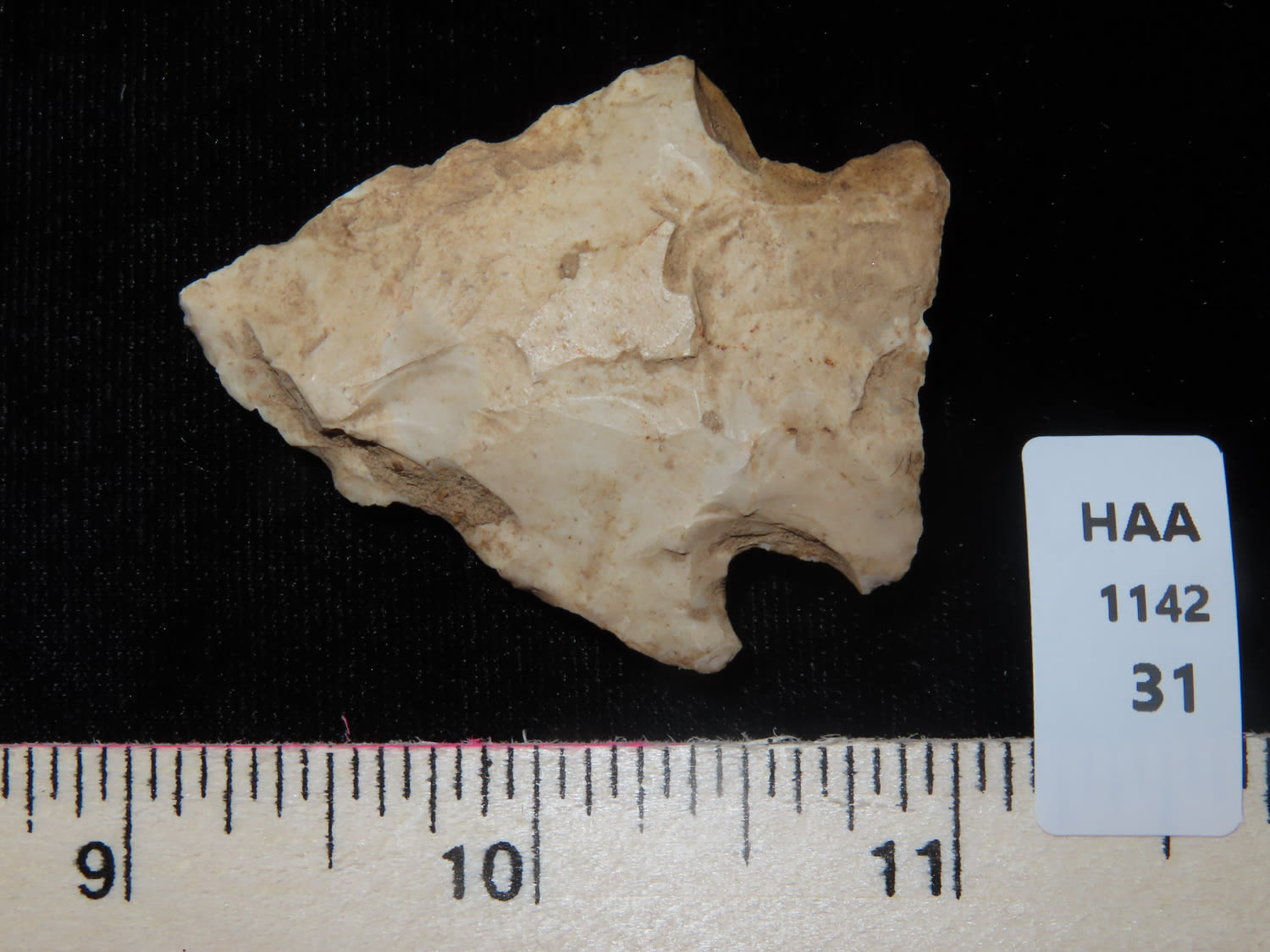KIRK CORNER NOTCH FOUND BY LOWELL BRENNER IN PLATTE COUNTY MISSOURI, INDIAN ARROWHEAD, ARTIFACT