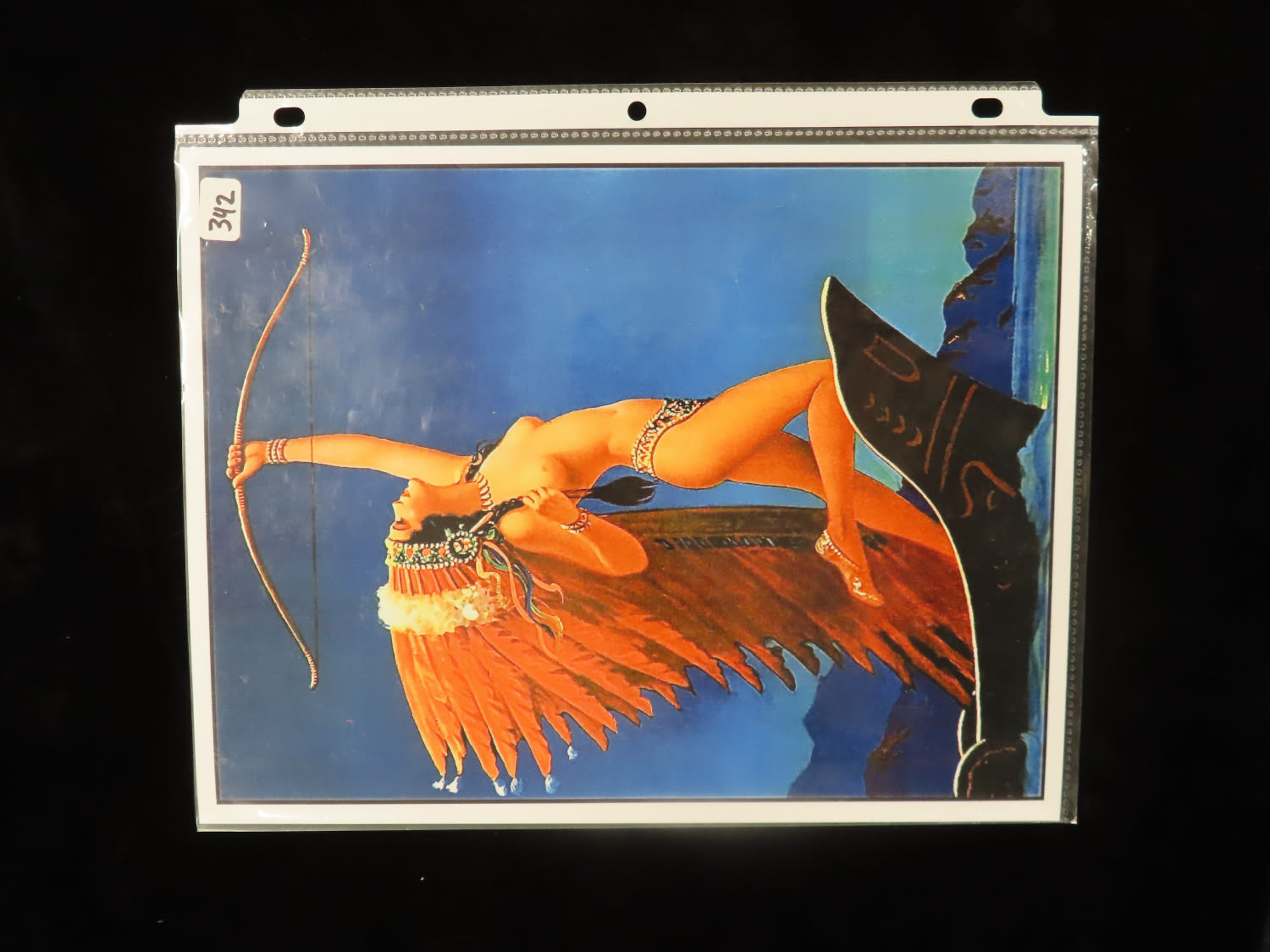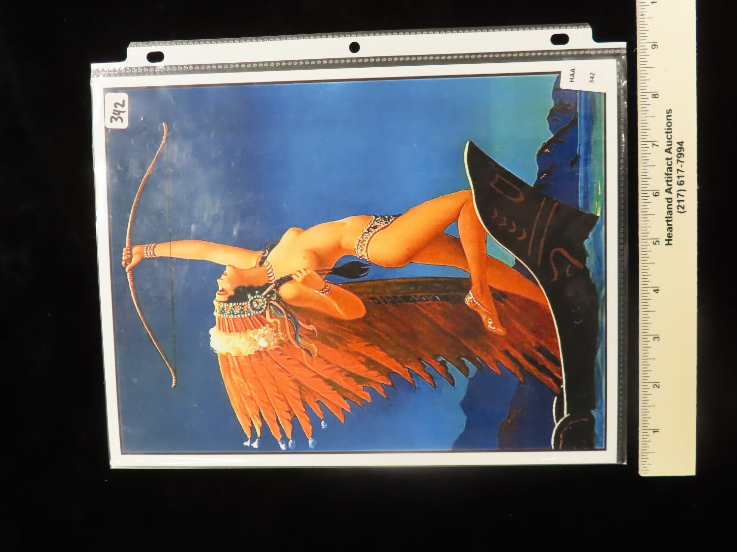 8 1/2″ X 11″ PICTURE OF NUDE INDIAN WOMAN WITH BOW AND ARROW IN CANOE, MAN CAVE