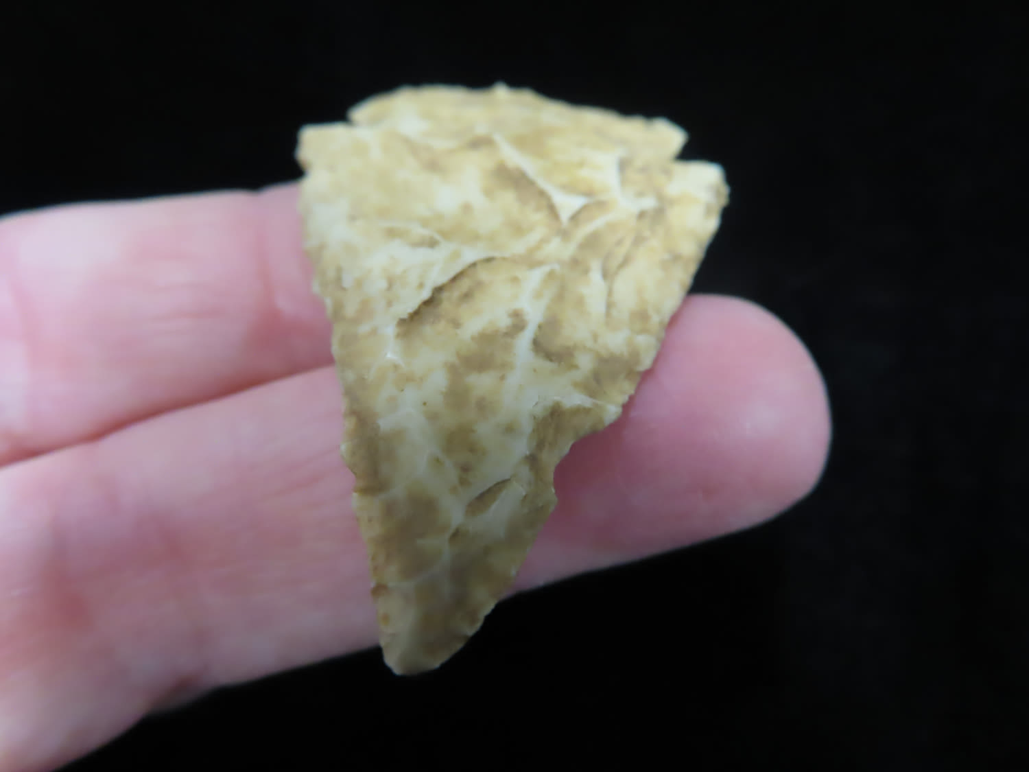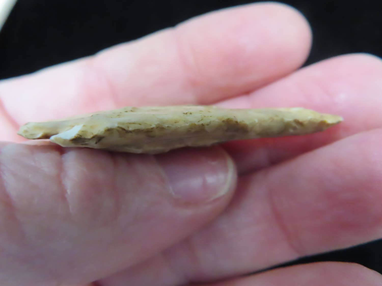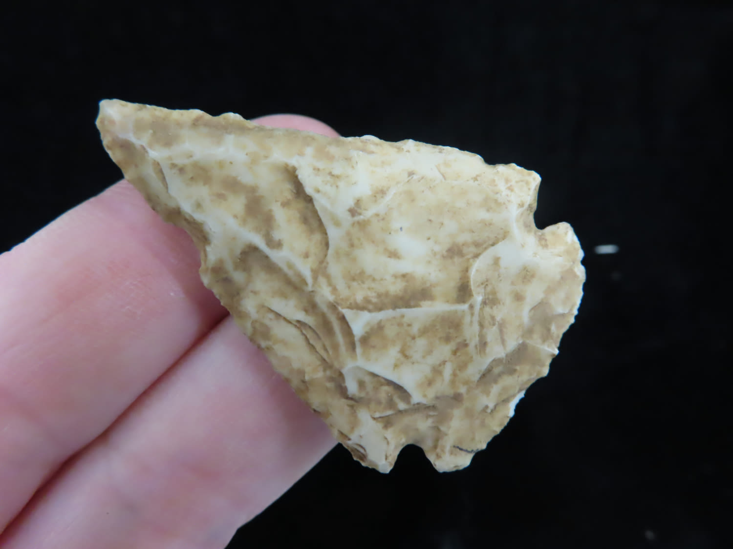 THIN ARCHAIC MICRO NOTCH CORNERNOTCH FOUND BY LOWELL BRENNER IN PLATTE COUNTY MISSOURI, INDIAN ARROWHEAD, ARTIFACT