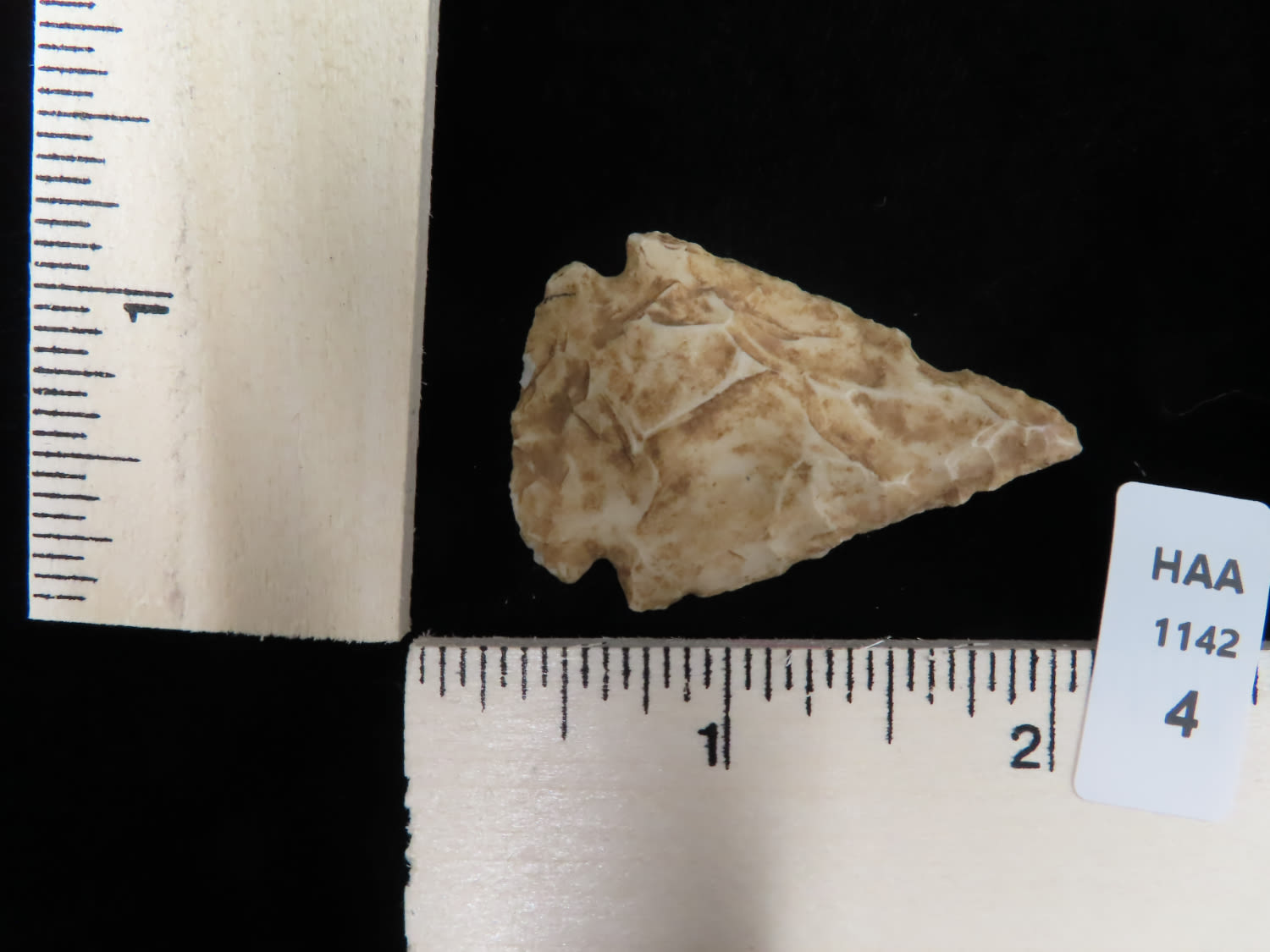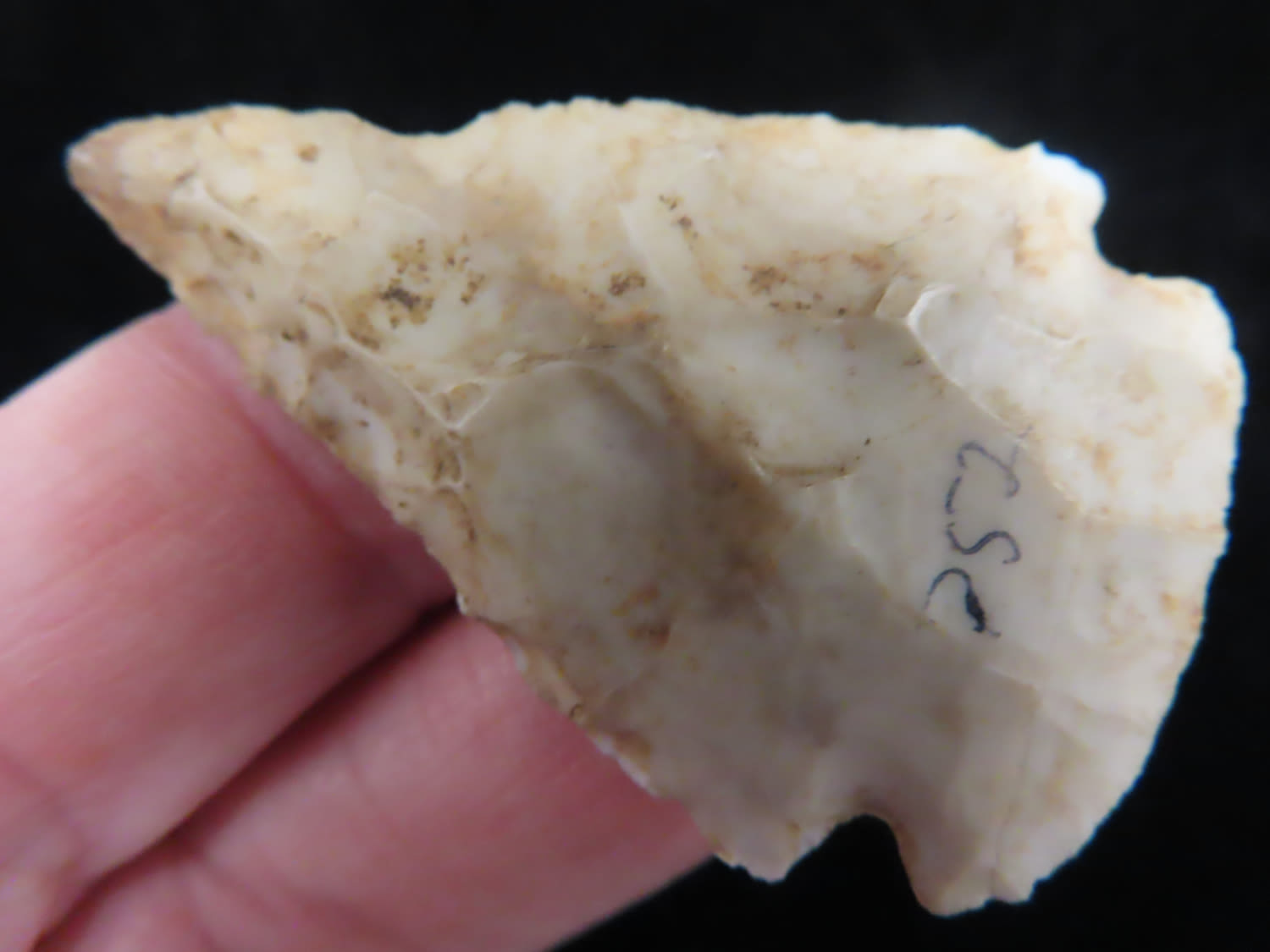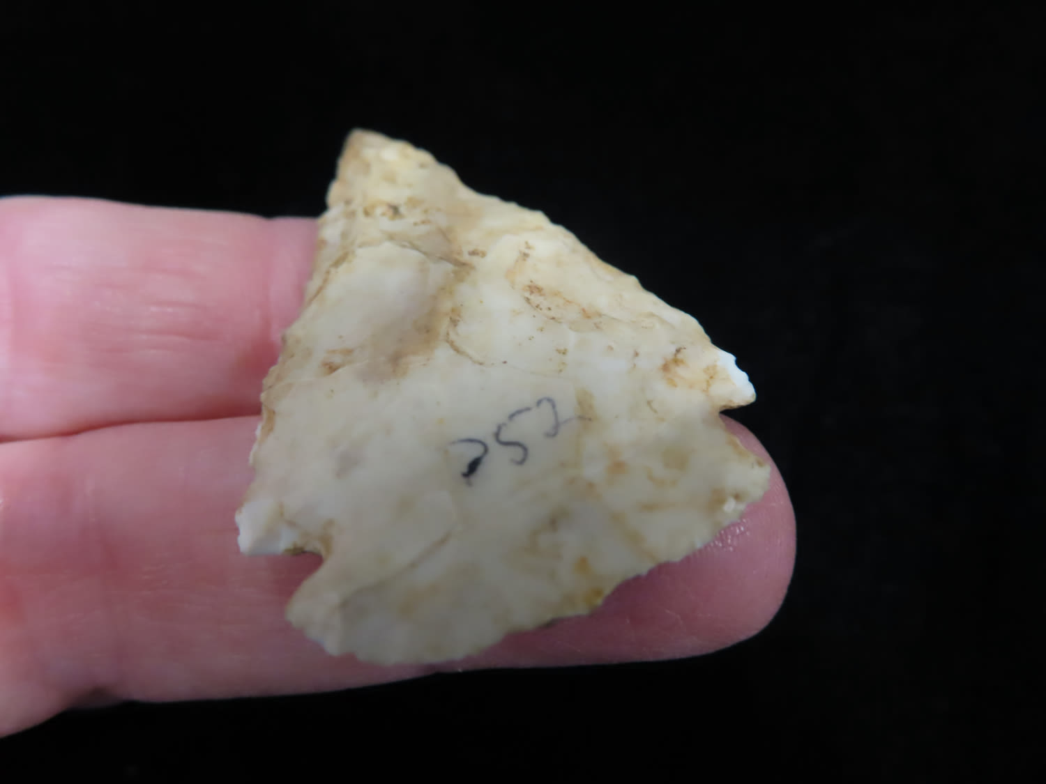 THIN ARCHAIC MICRO NOTCH CORNERNOTCH FOUND BY LOWELL BRENNER IN PLATTE COUNTY MISSOURI, INDIAN ARROWHEAD, ARTIFACT