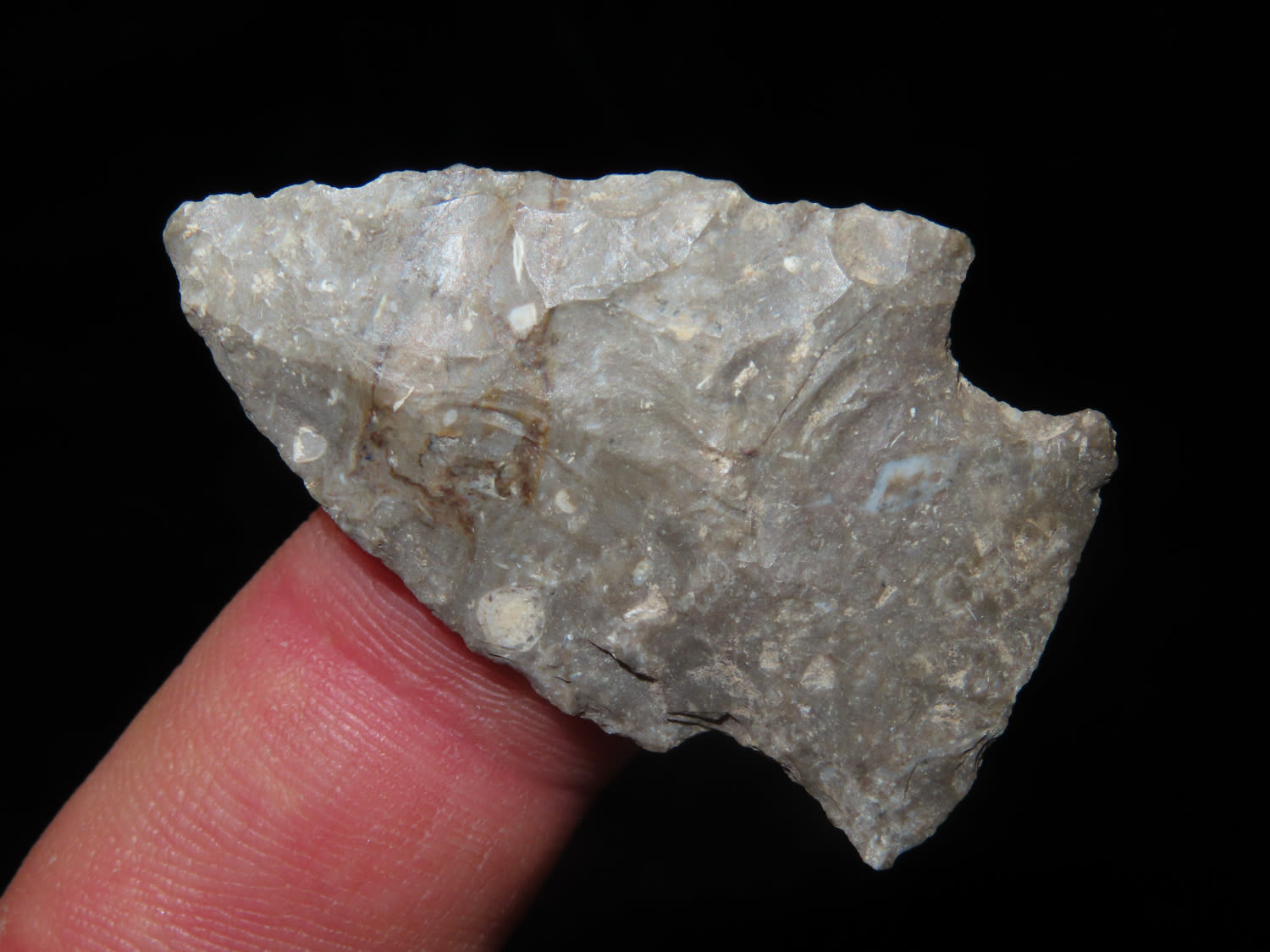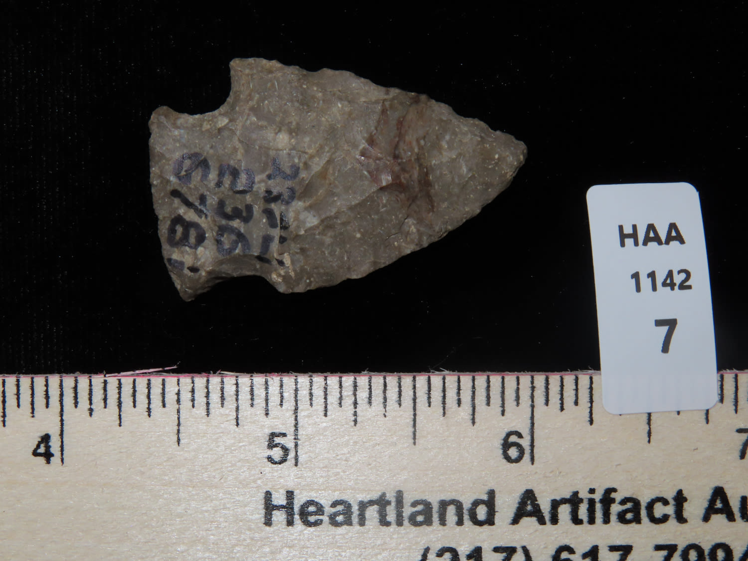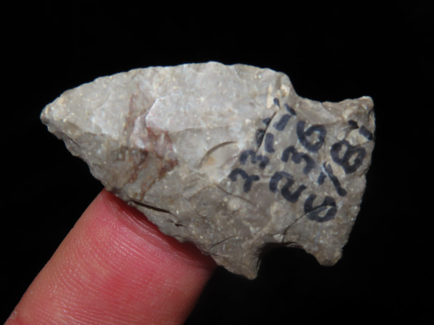 COLORFUL ARCHAIC CORNER NOTCH FOUND BY LOWELL BRENNER IN PLATTE COUNTY MISSOURI, INDIAN ARROWHEAD, ARTIFACT