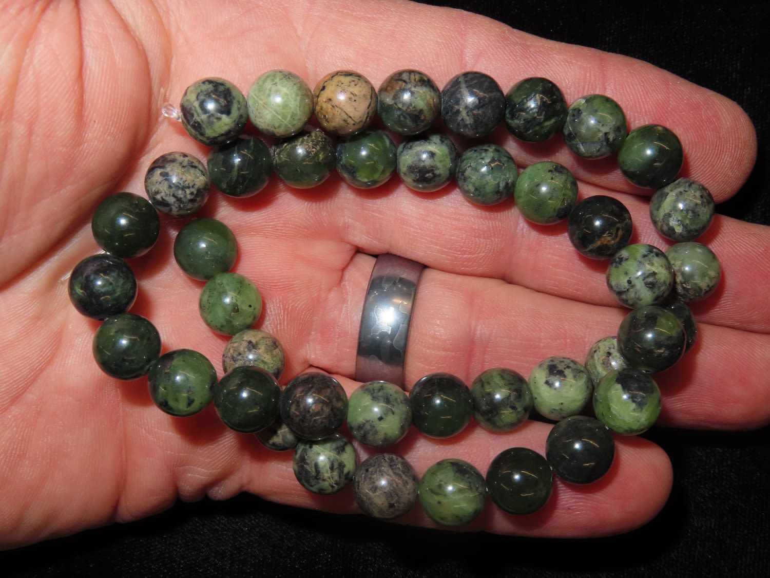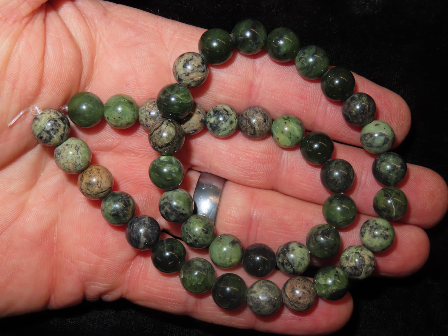 16″ Very Pretty Dark Green Strand Of Stone Beads