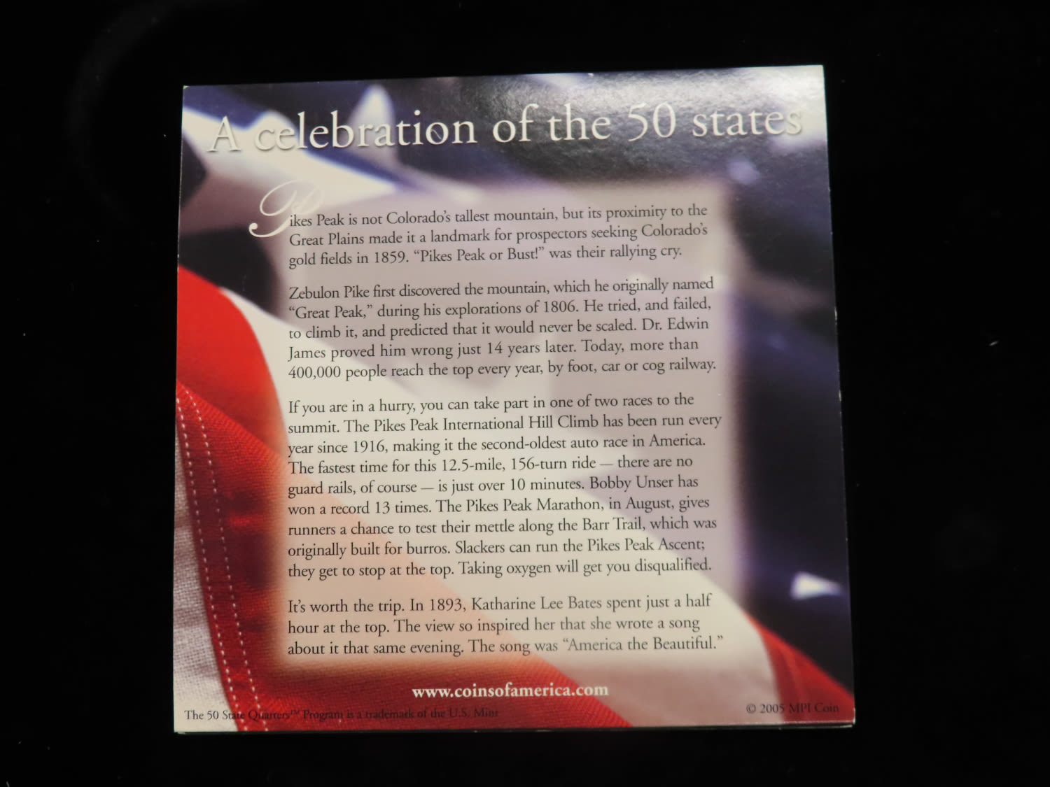 2006 Colorado US Minted Quarter Dollar (# 38 of 50 in this Coins of America set)