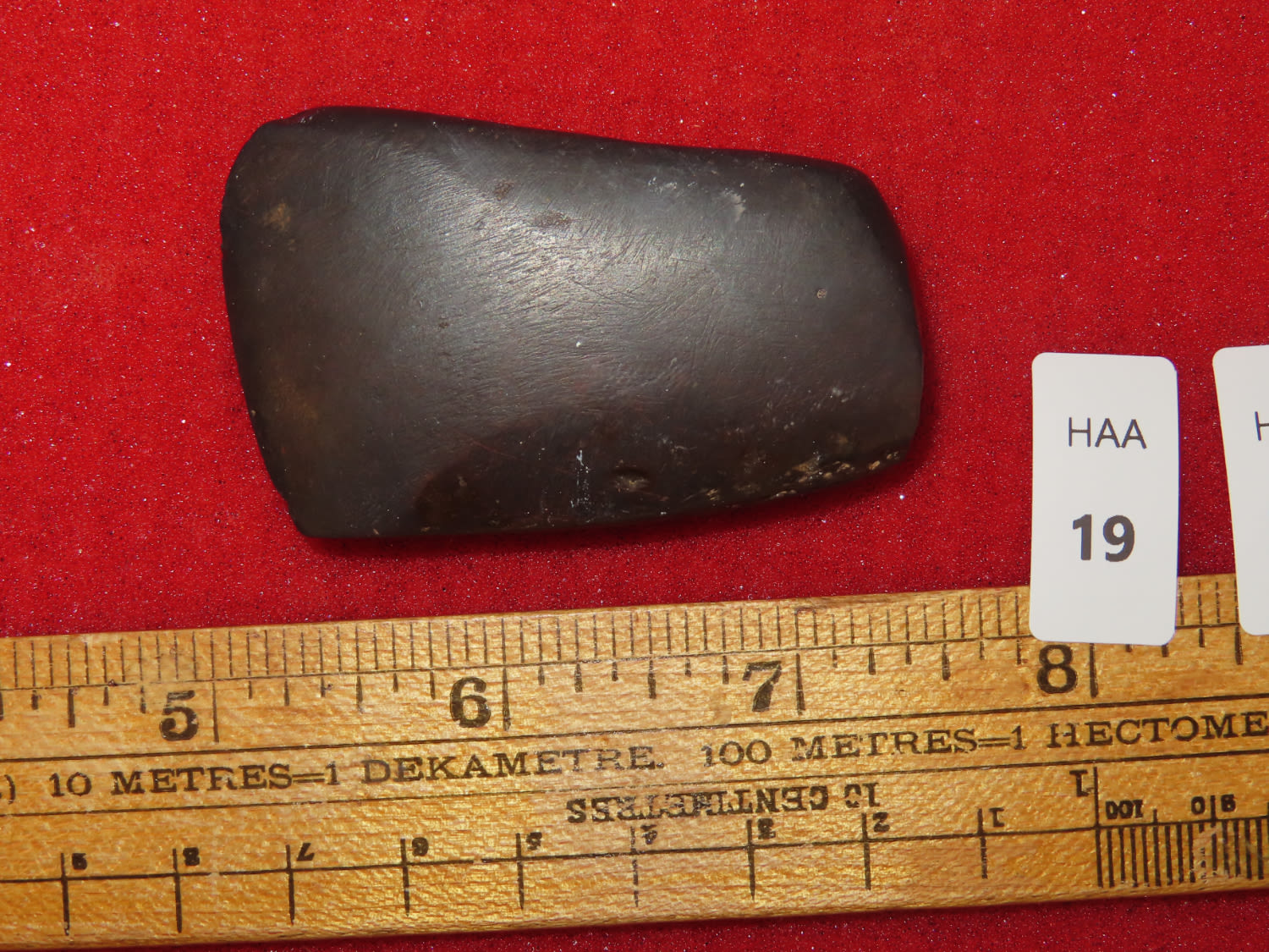 2 1/4″ x 1 1/2″ Hematite Adz, found in Iowa, Ex Tim Breakbill