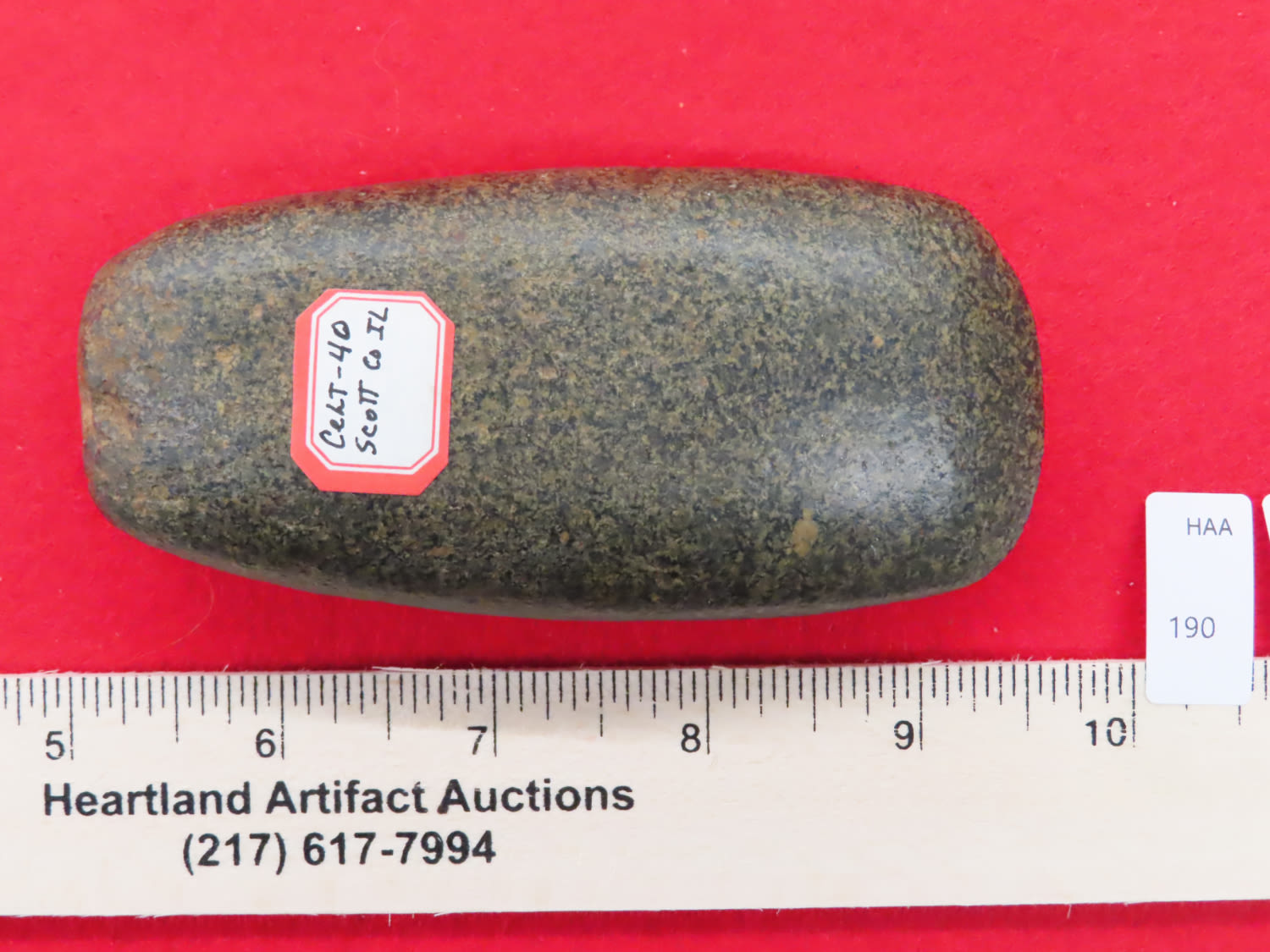4 1/4″ Celt, found in Scott Co Illinos, Ex Dennis DeRosear Collection
