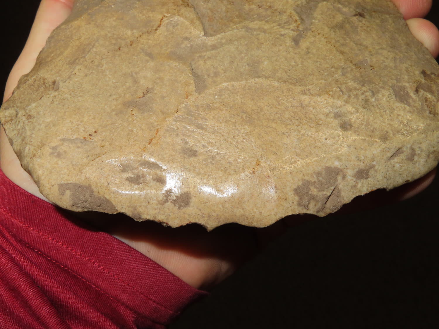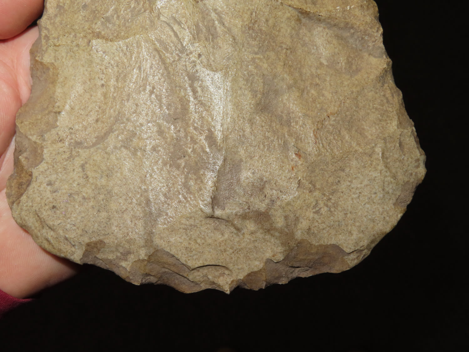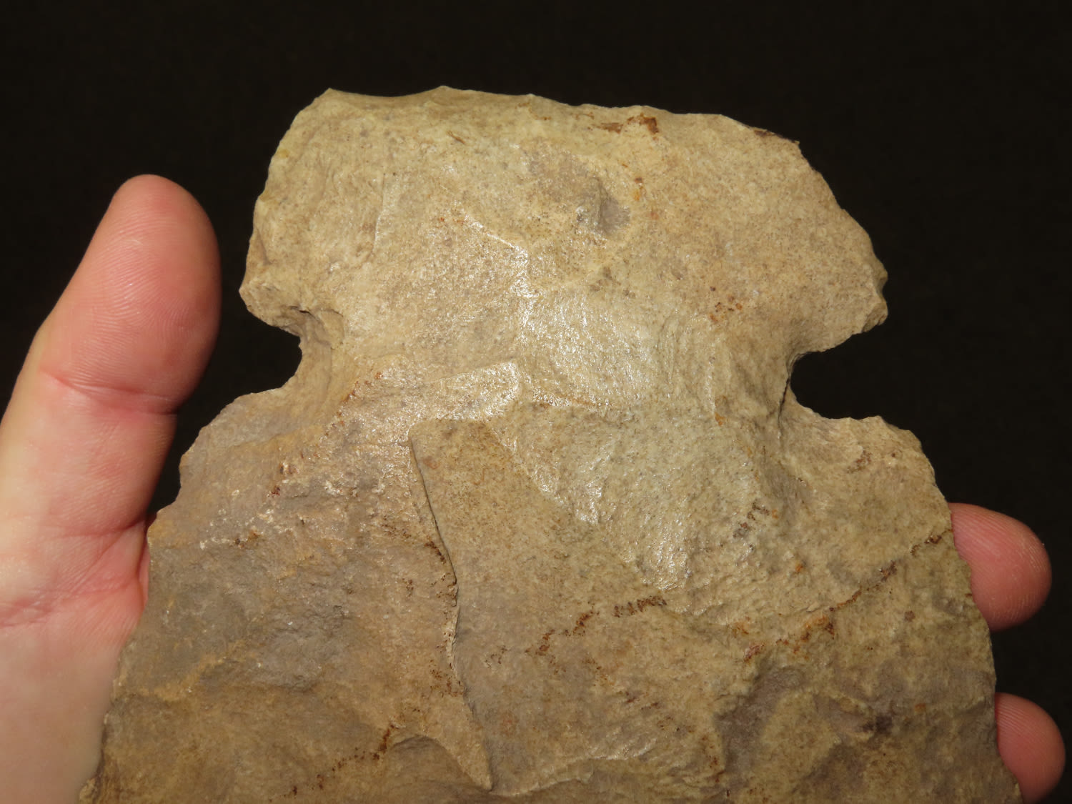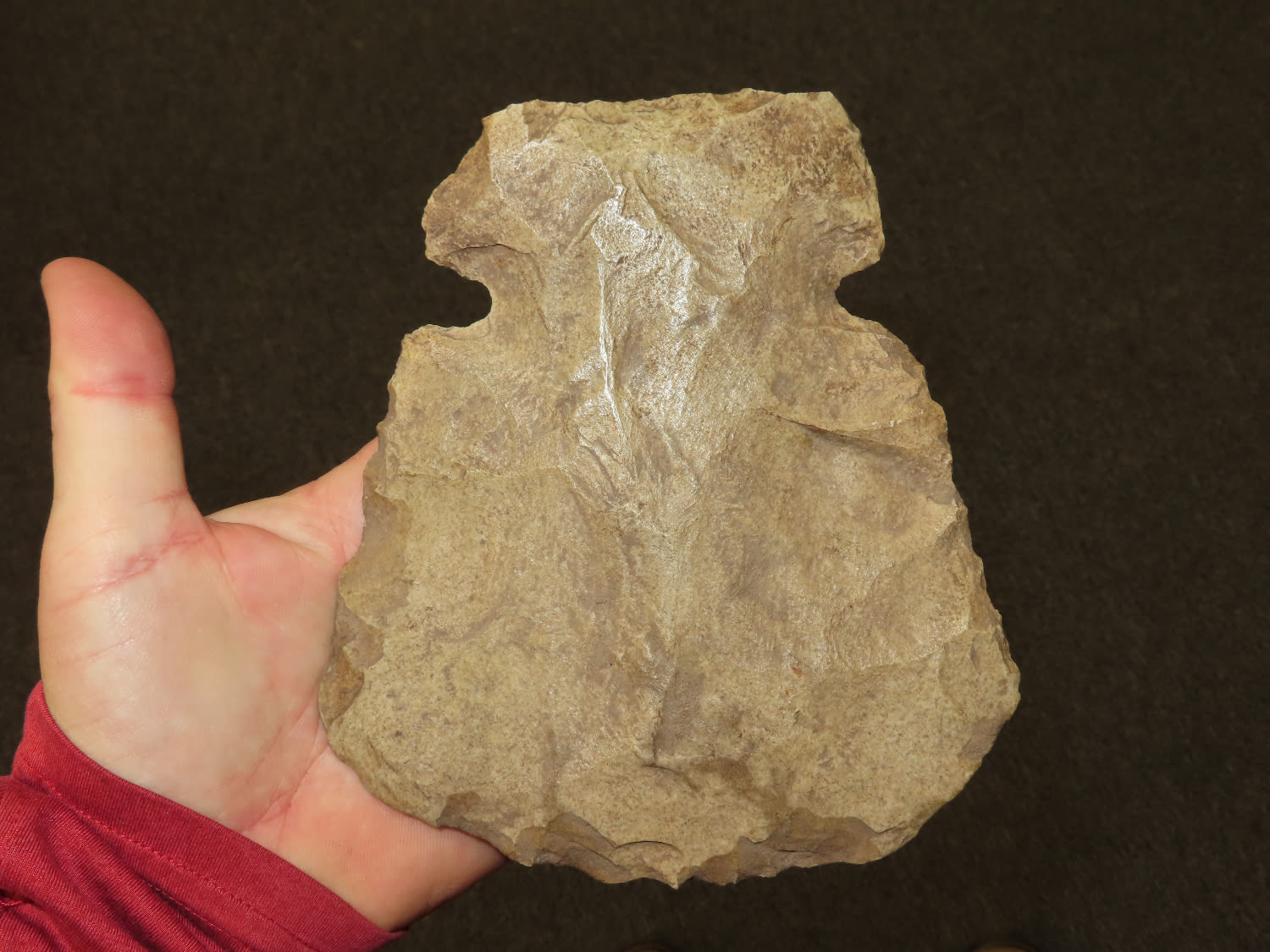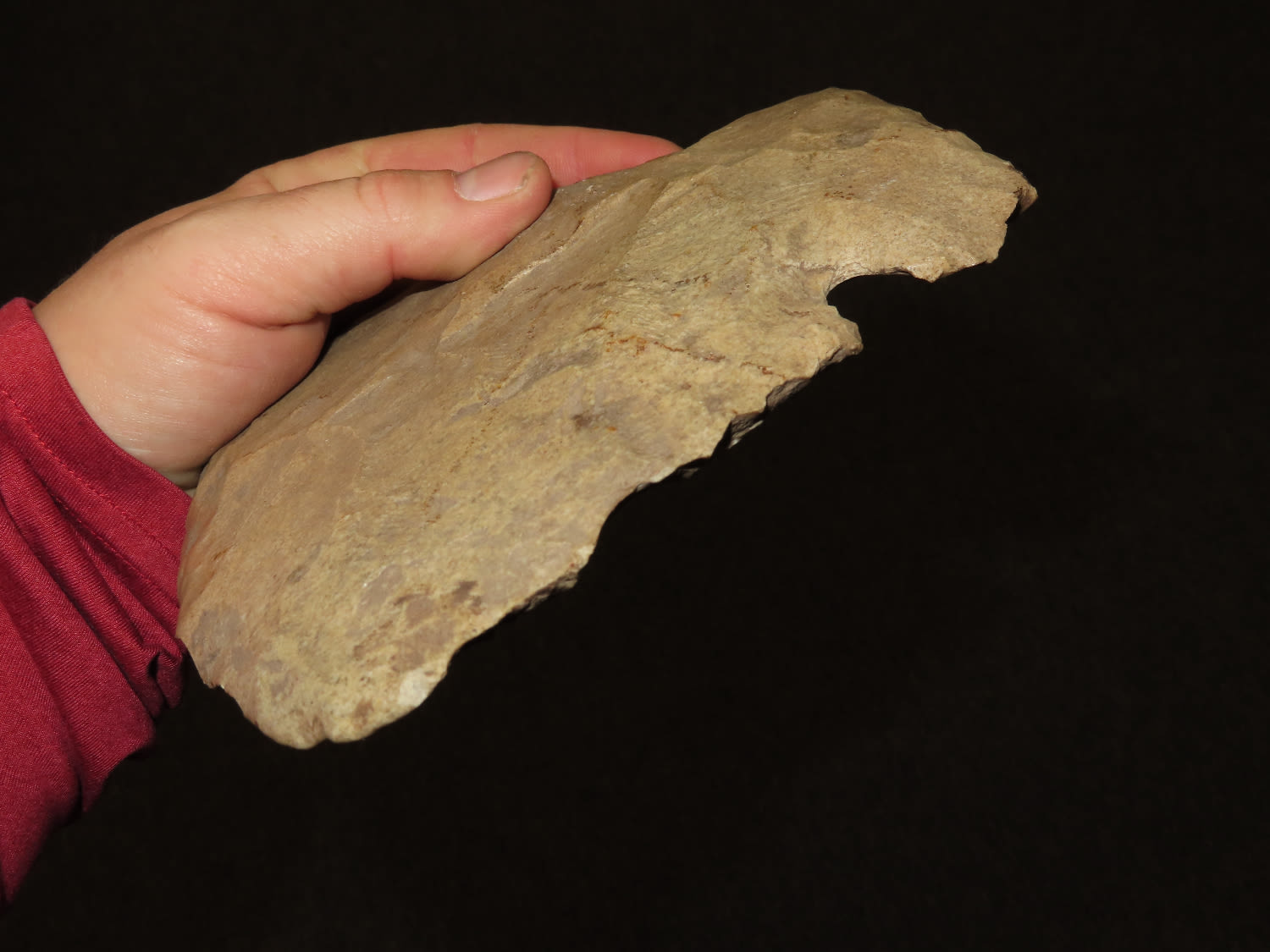 6 1/8″ x 5 1/2″ Mississippian Notched Hoe, Dickey COA, made of Mill Creek Chert, found in St Clair Co, Illinois-Beautiful Polished Bit from Use, Stunning Addition to any Collection!