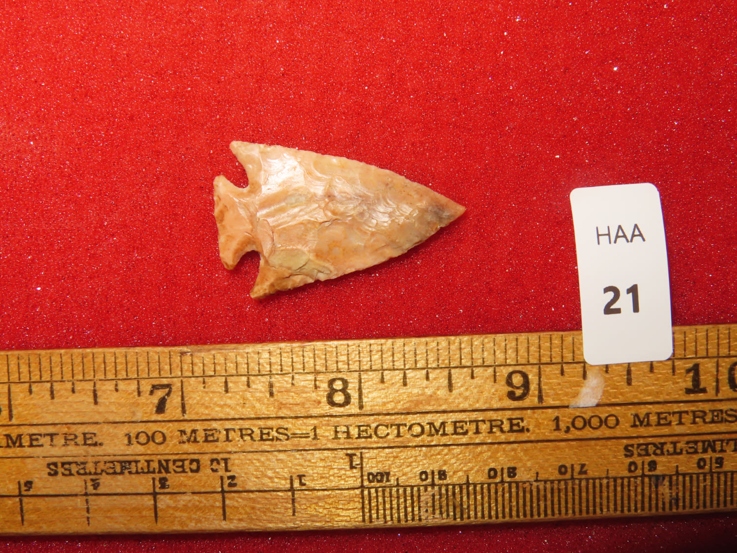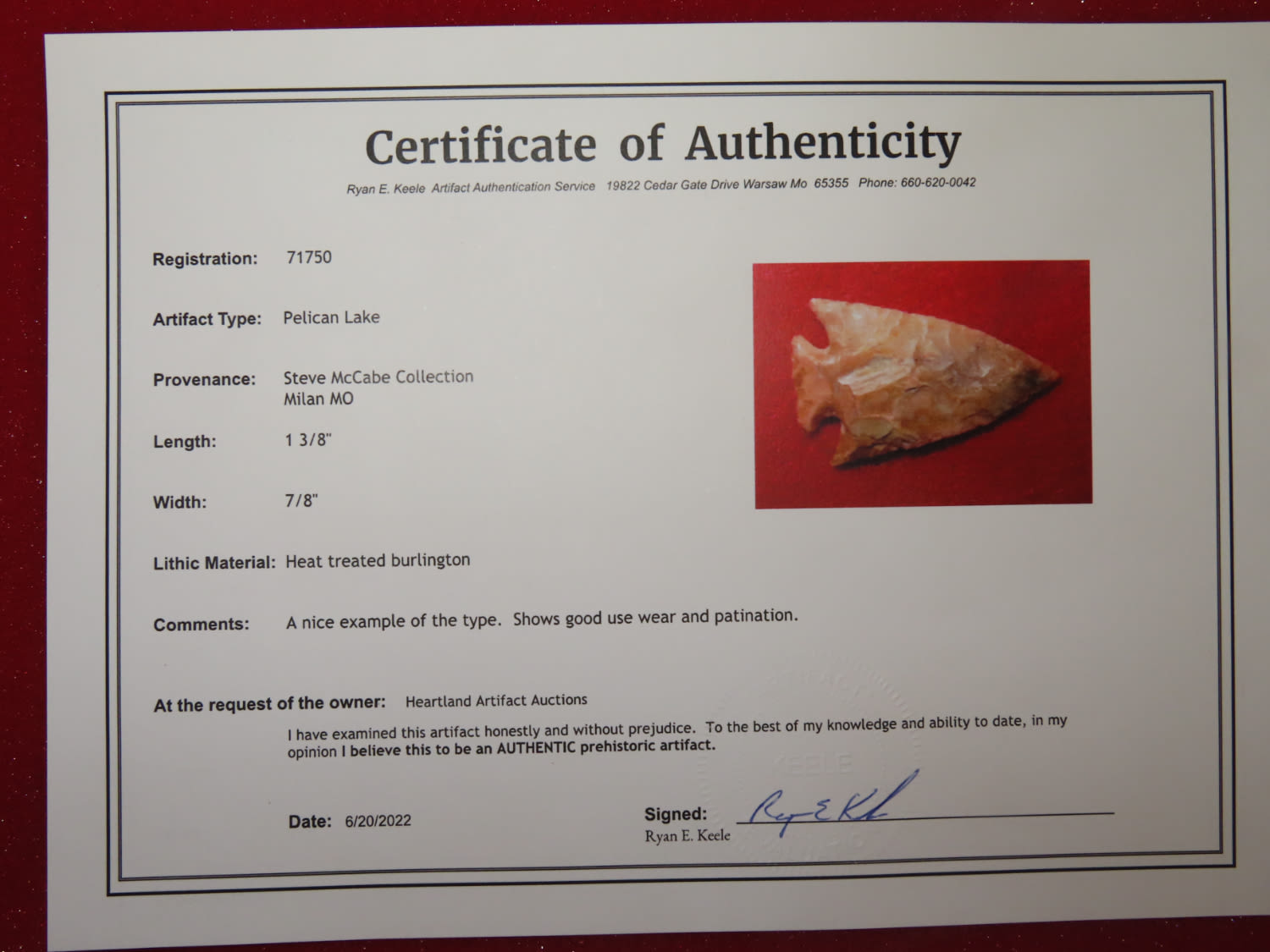 1 3/8″ Pelican Lake Arrowhead; Ryan Keele COA, Found in Milan, MO.; EX. Steve McCabe Collection