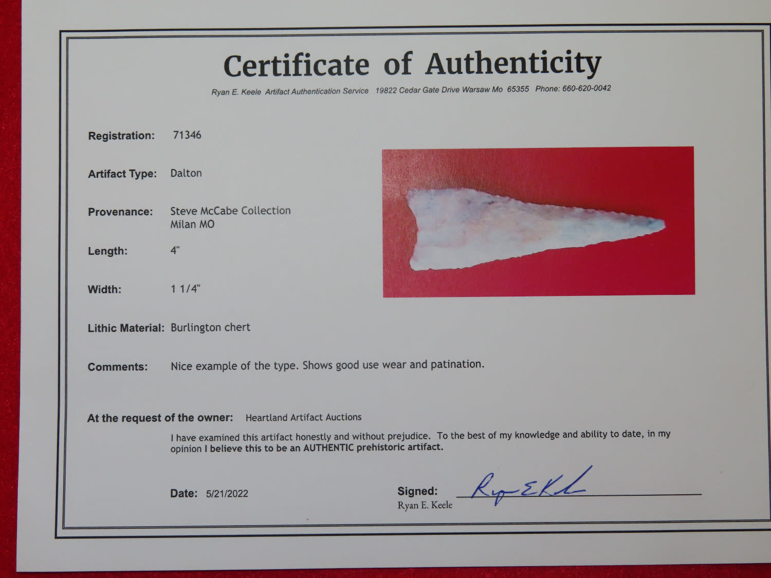 4″ Dalton with Solid Coloring, Keele COA, made of Burlington Chert, from the Steve McCabe Collection Milan Missouri Sullivan County