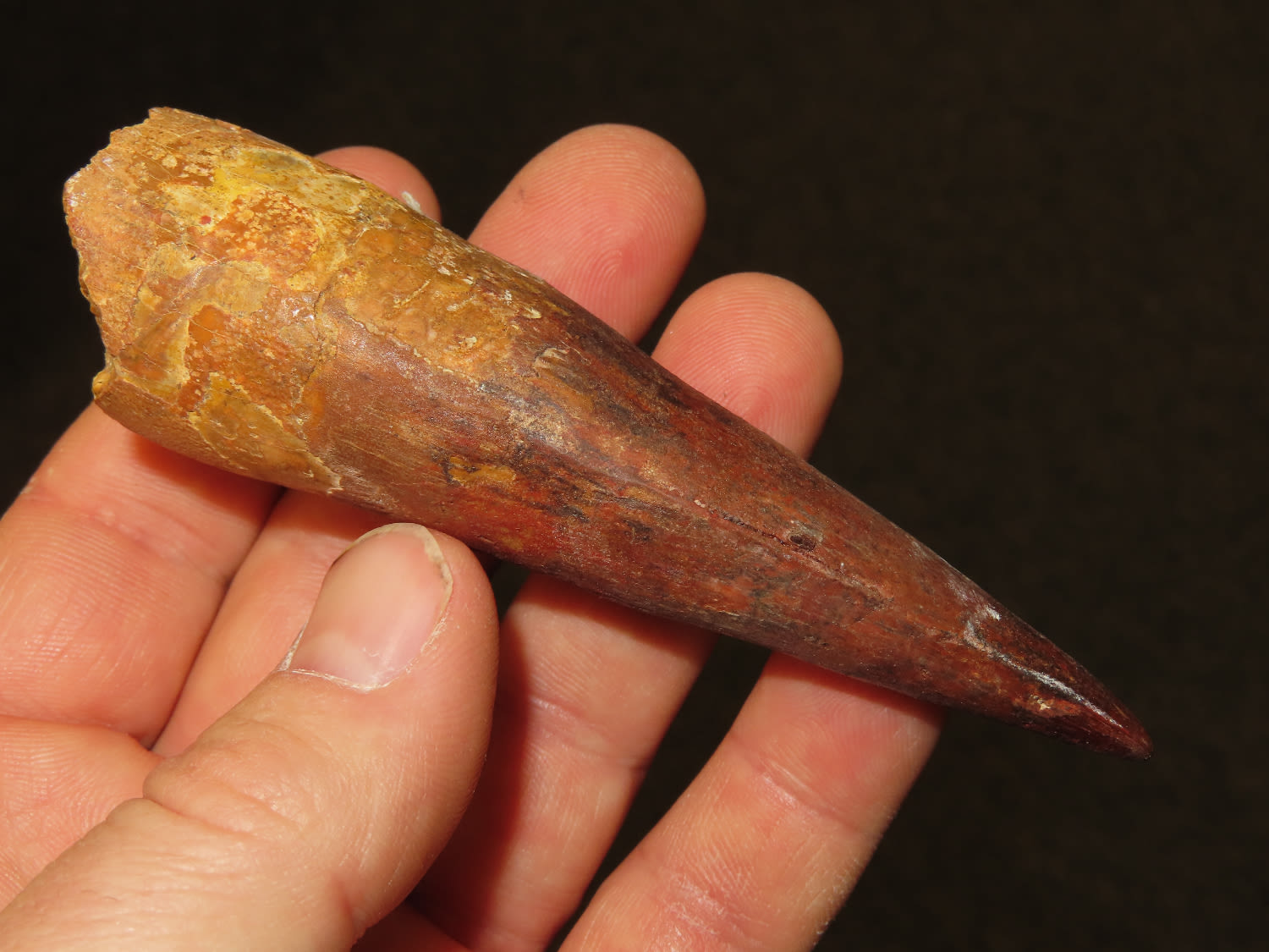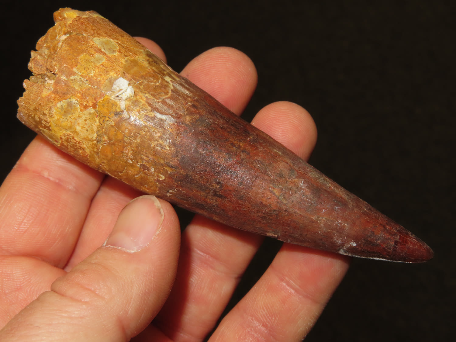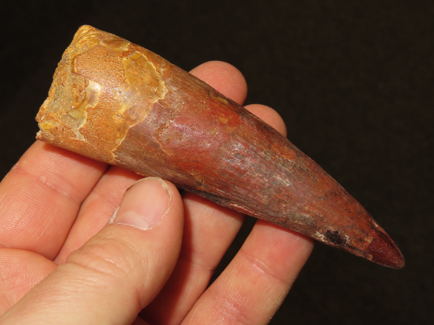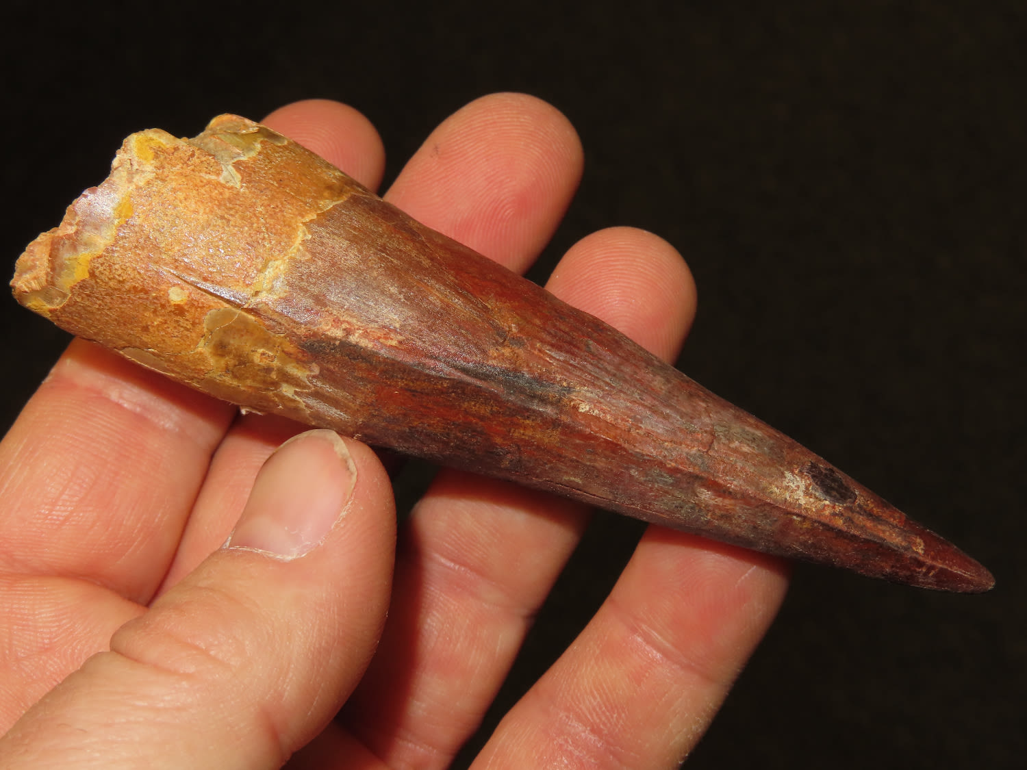 4 1/8″ Fossilized Spinosaurus (dinosaur bigger than T-Rex) tooth, dated roughly 94-100 Million years old