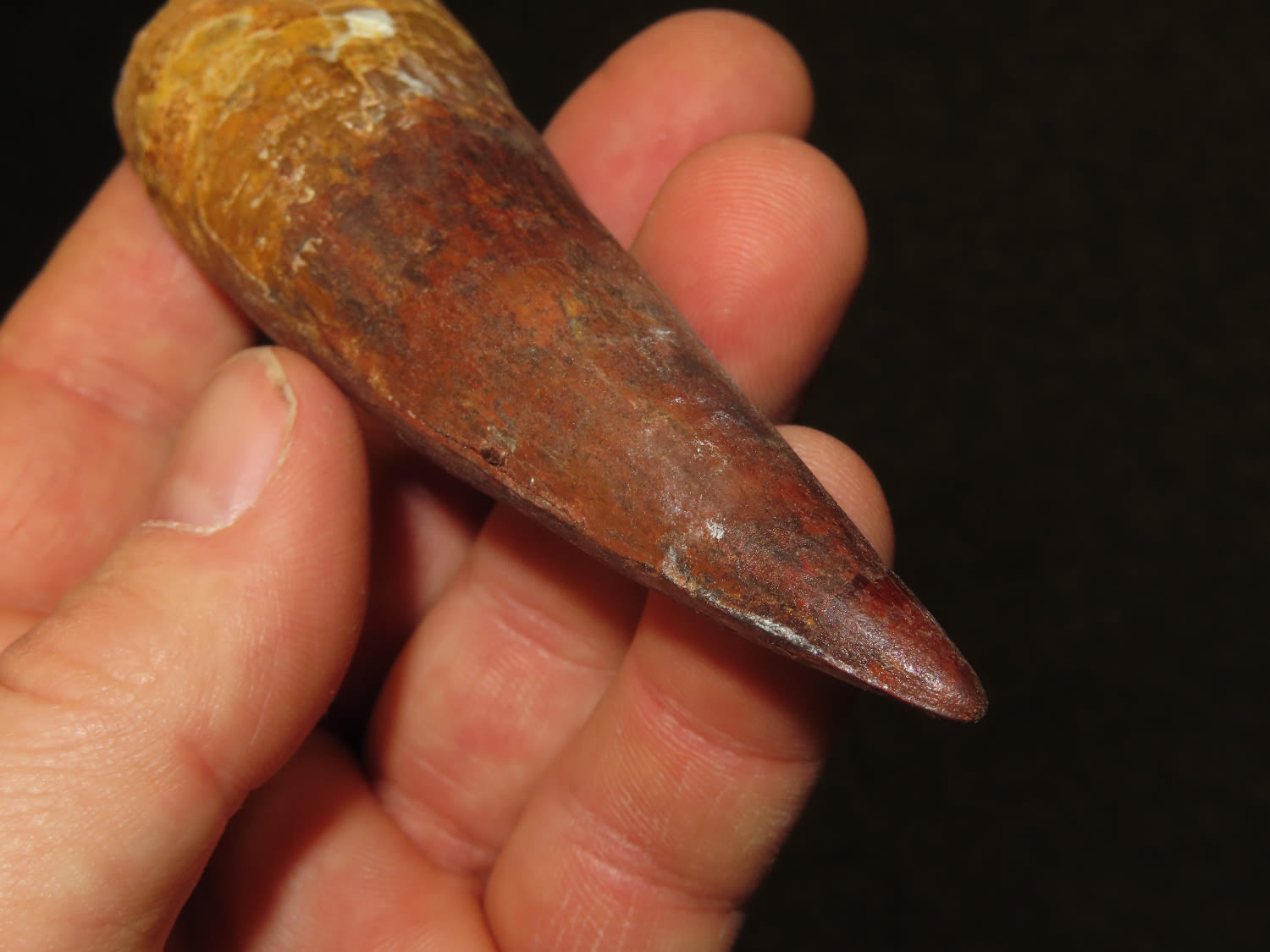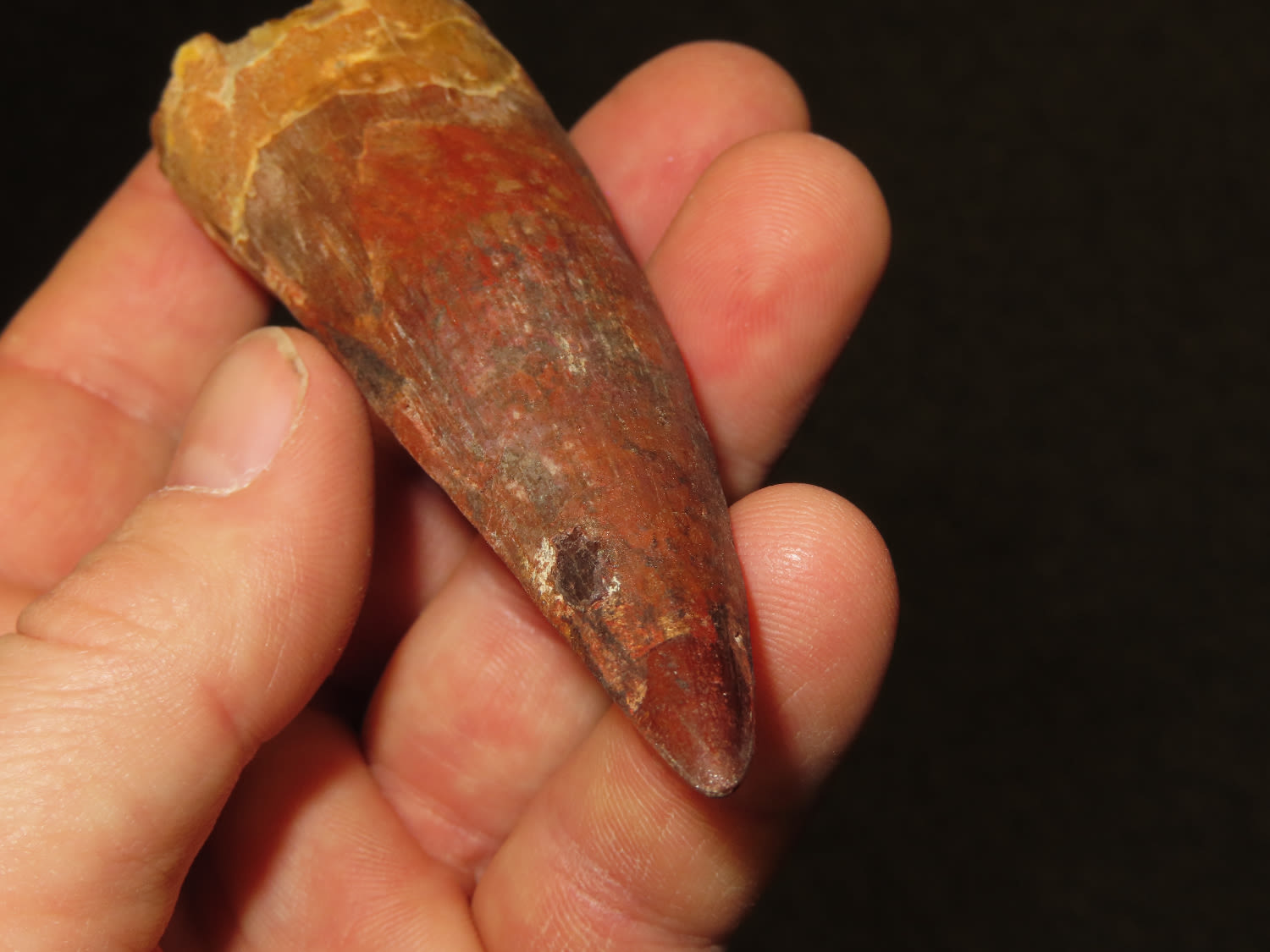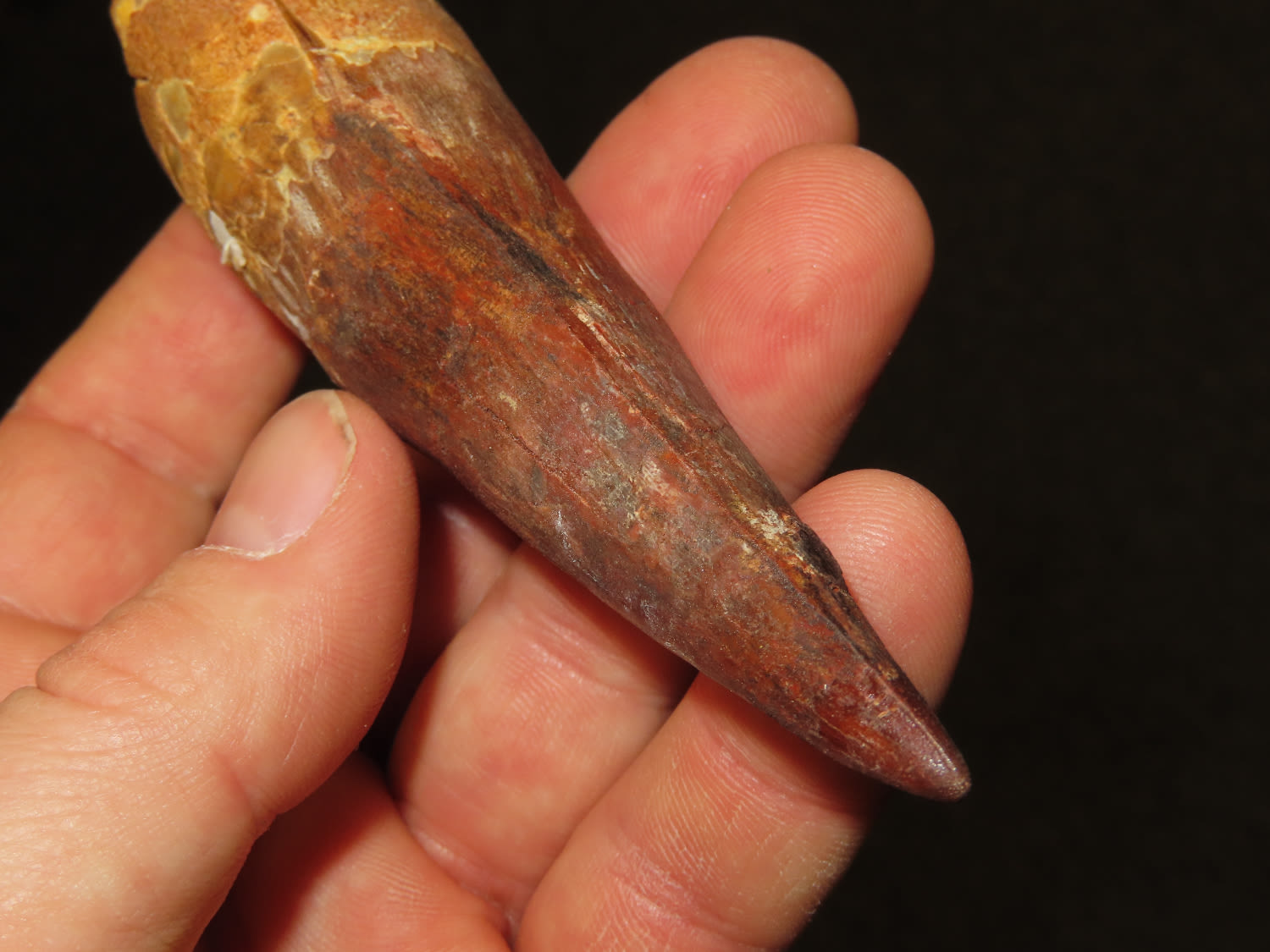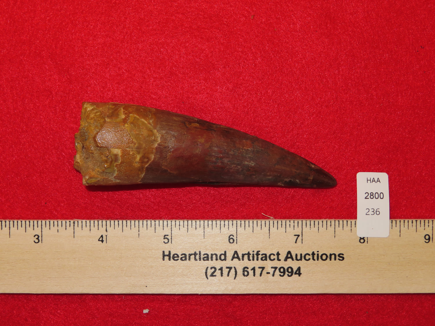 4 1/8″ Fossilized Spinosaurus (dinosaur bigger than T-Rex) tooth, dated roughly 94-100 Million years old