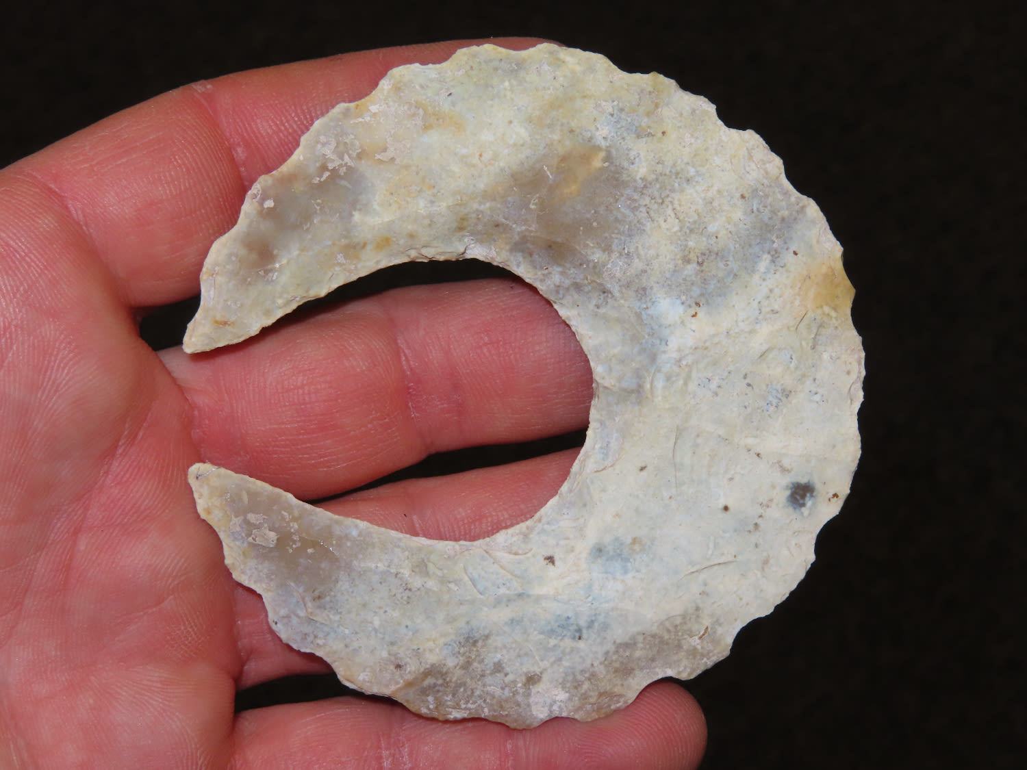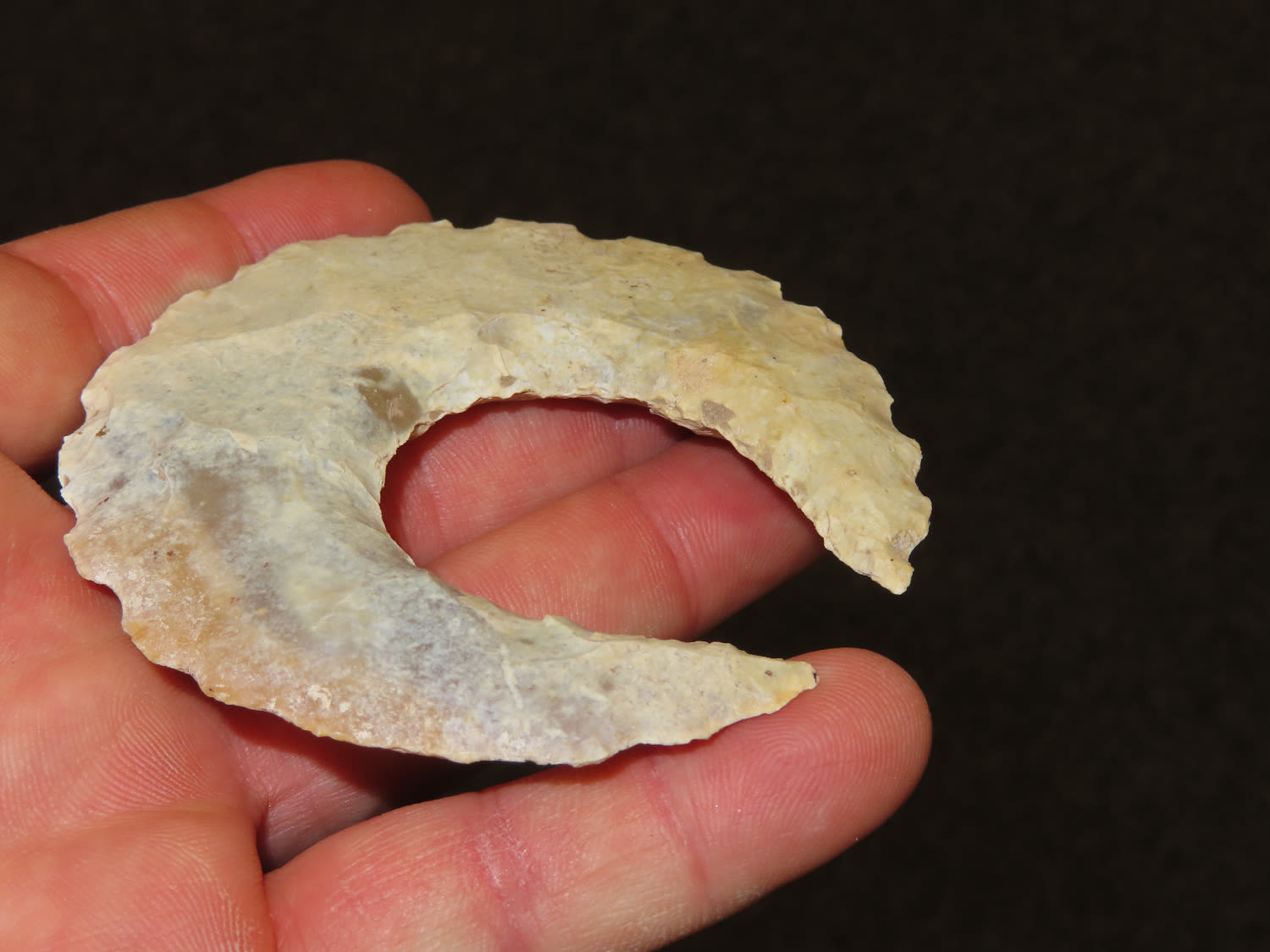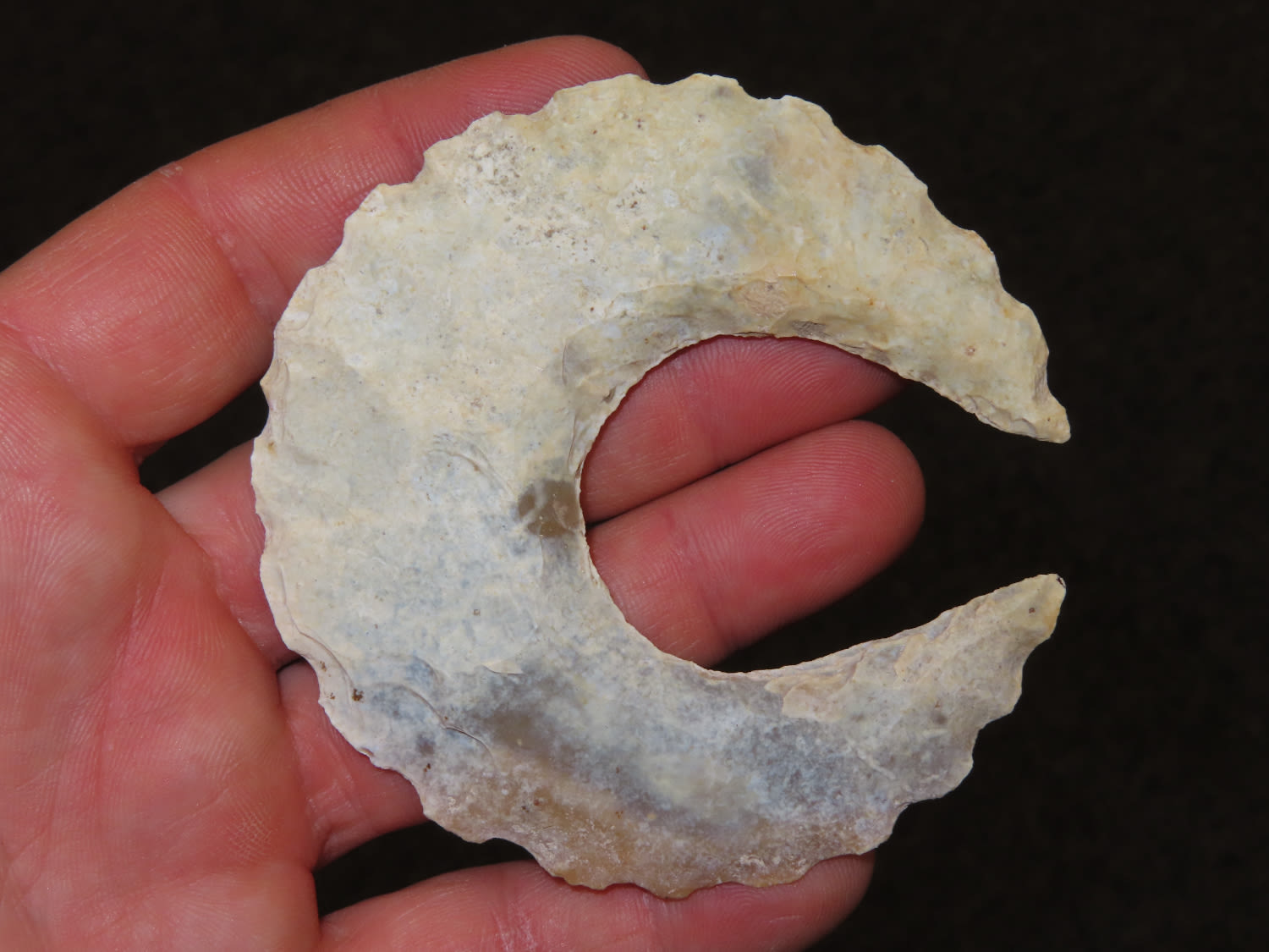Large & Outstanding Waning Moon Crescent Effigy Mayan Eccentric Found in Belize, Ex. Dave Wally & John Grotte 3 1/8″