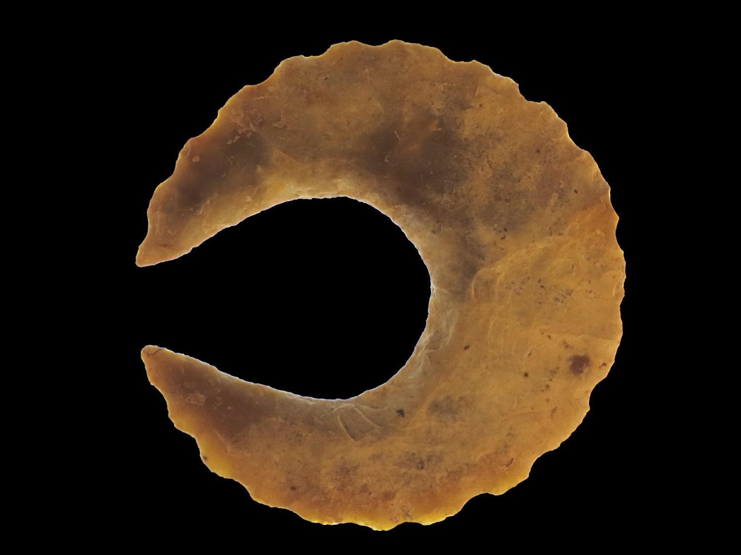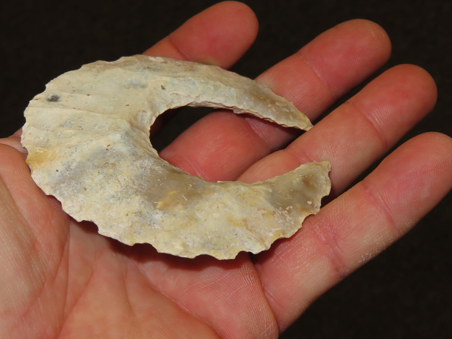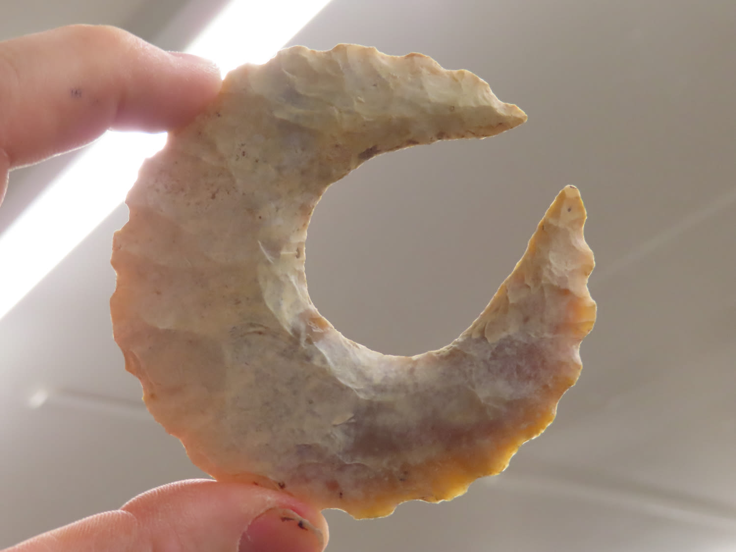 Large & Outstanding Waning Moon Crescent Effigy Mayan Eccentric Found in Belize, Ex. Dave Wally & John Grotte 3 1/8″