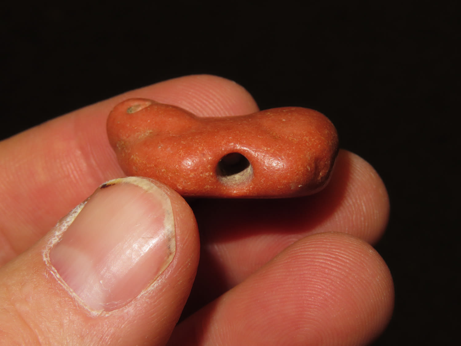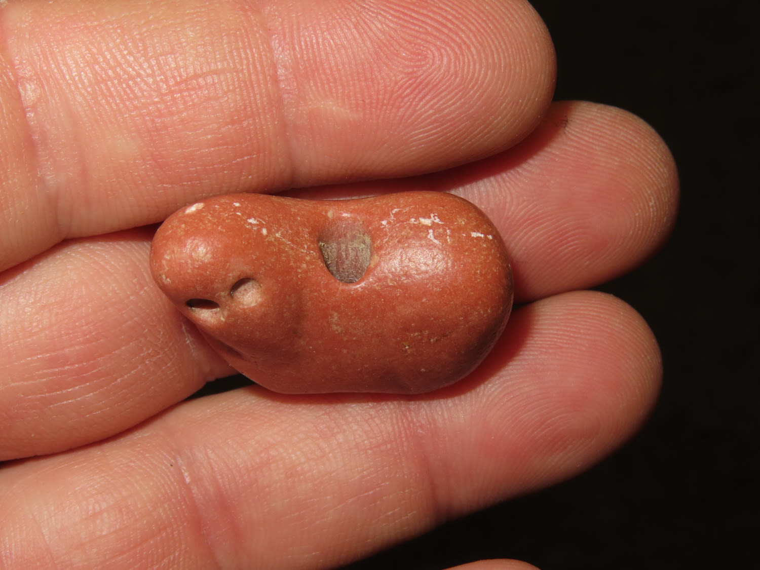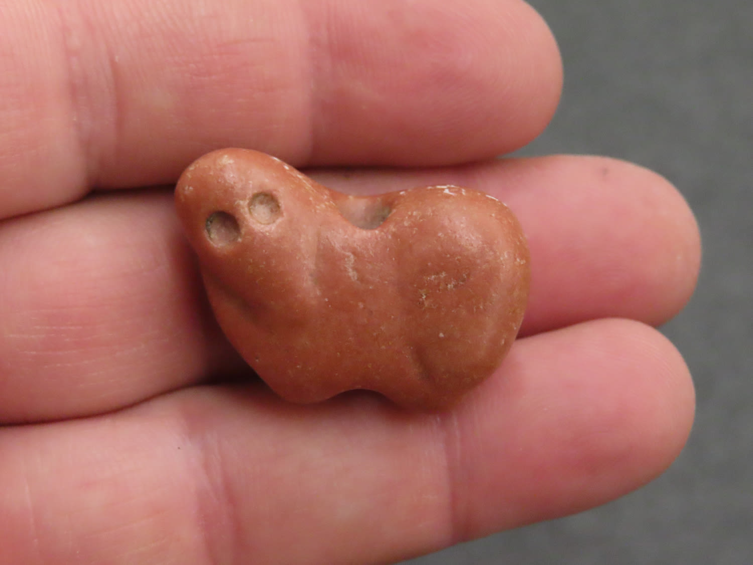 1 1/4″ x 7/8″ Effigy Amulet Bead, Jerry Dickey COA, small Catlilnite Animal, Found in Oklahoma