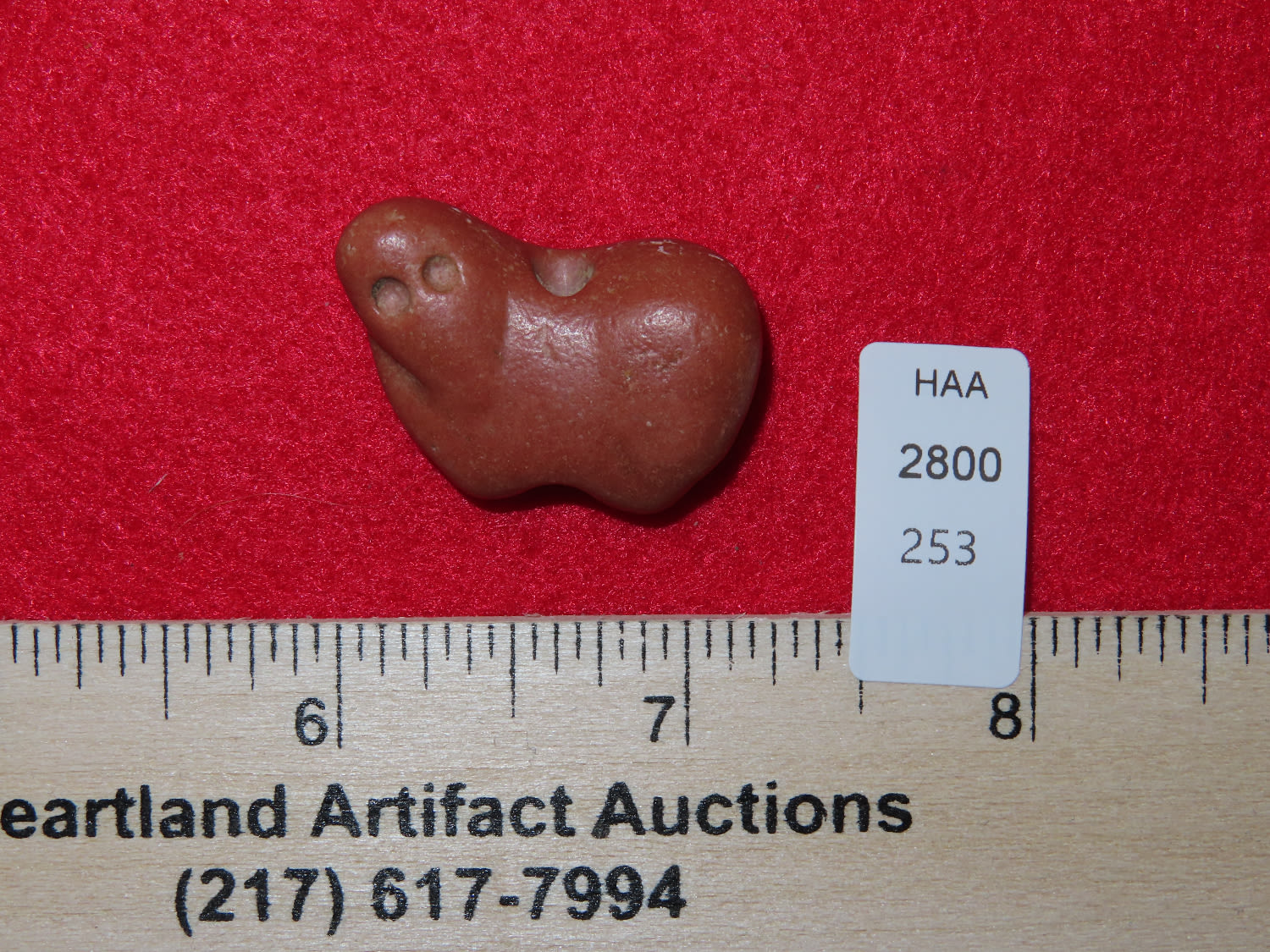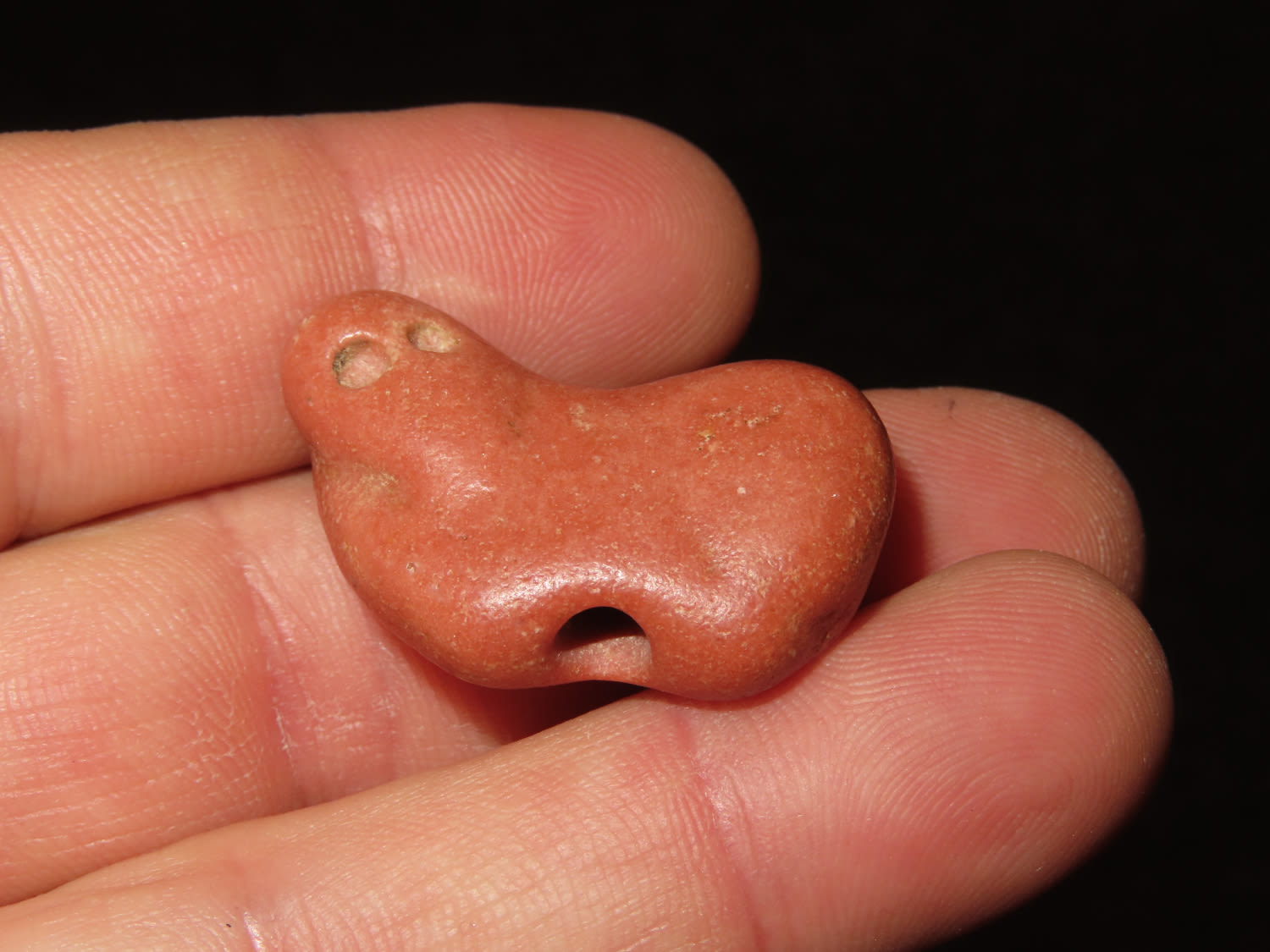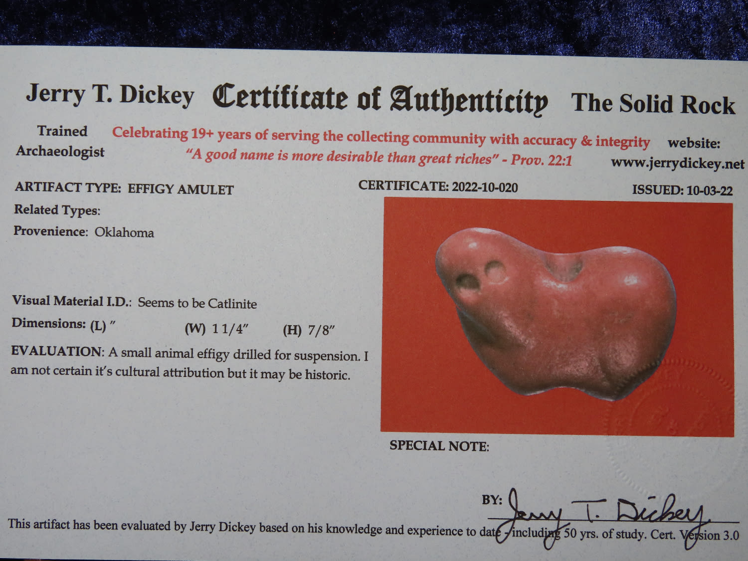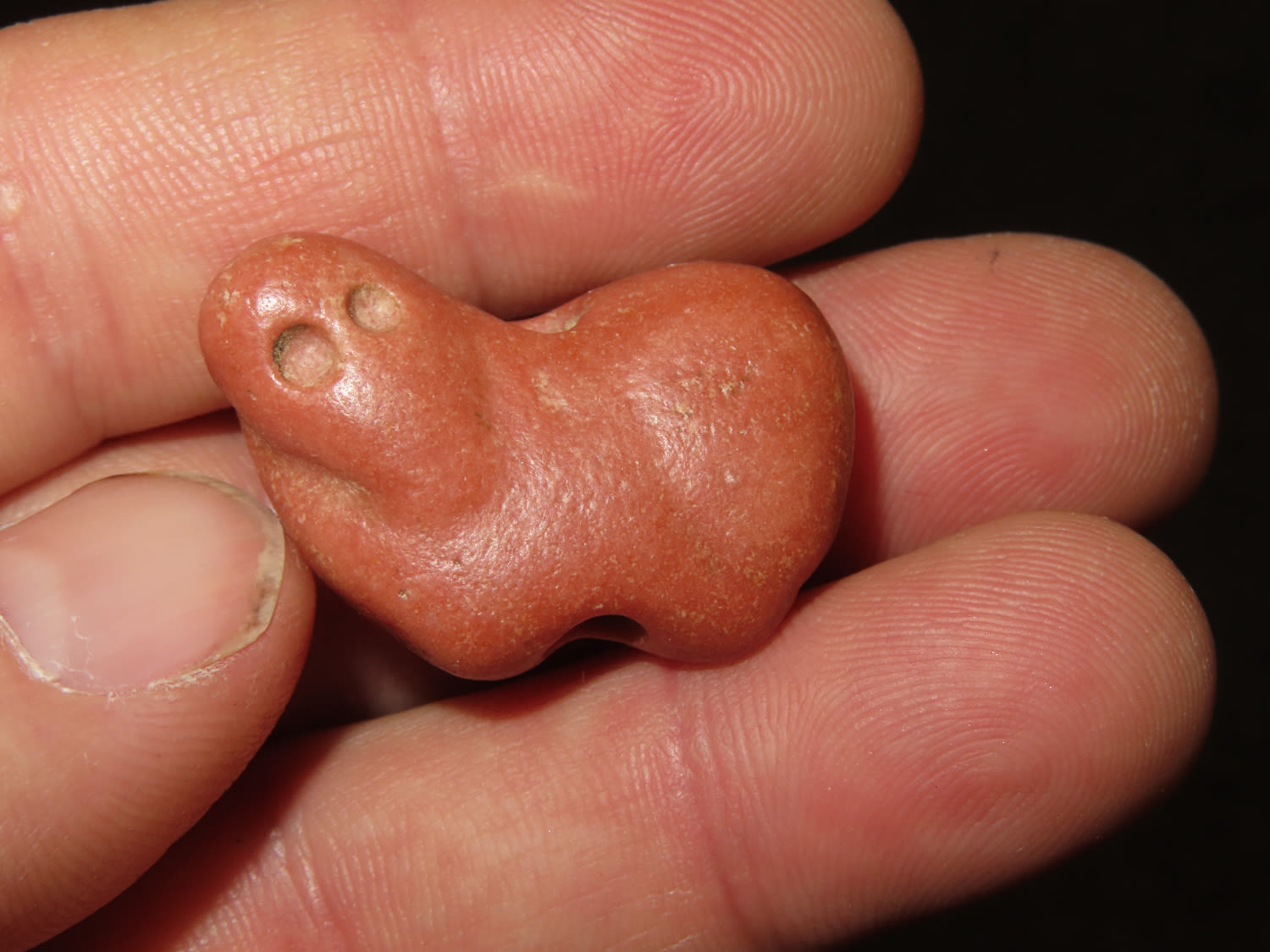 1 1/4″ x 7/8″ Effigy Amulet Bead, Jerry Dickey COA, small Catlilnite Animal, Found in Oklahoma
