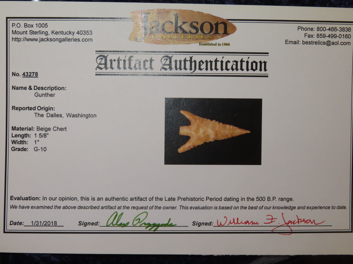 1 5/8″ Gunther, Jackson COA; Found in The Dells, Washington