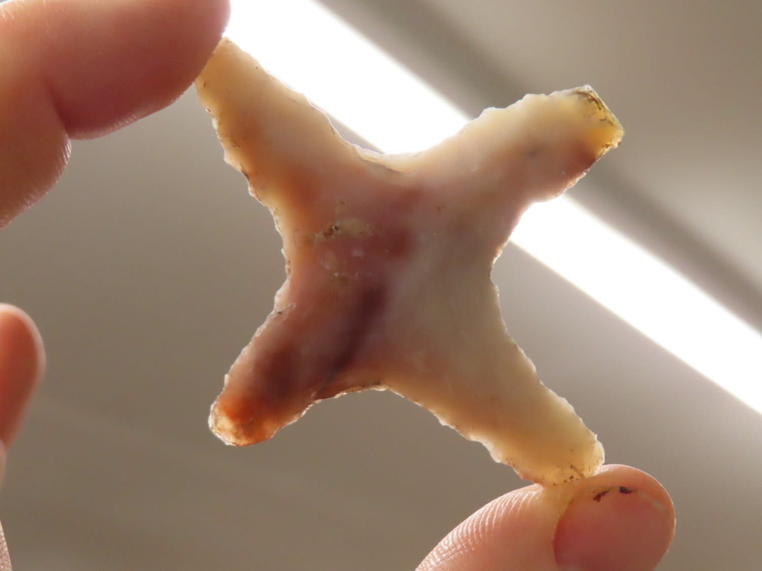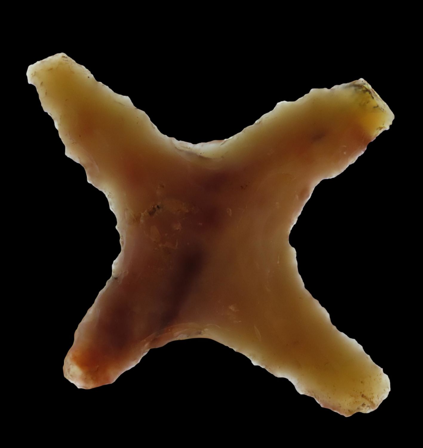 2 1/2" x 2 1/4" Cross Eccentric, Pre Columbian, Belieze, Ex DeRosear, D. Walley in 2004, Ex. Herb Mangold Collection