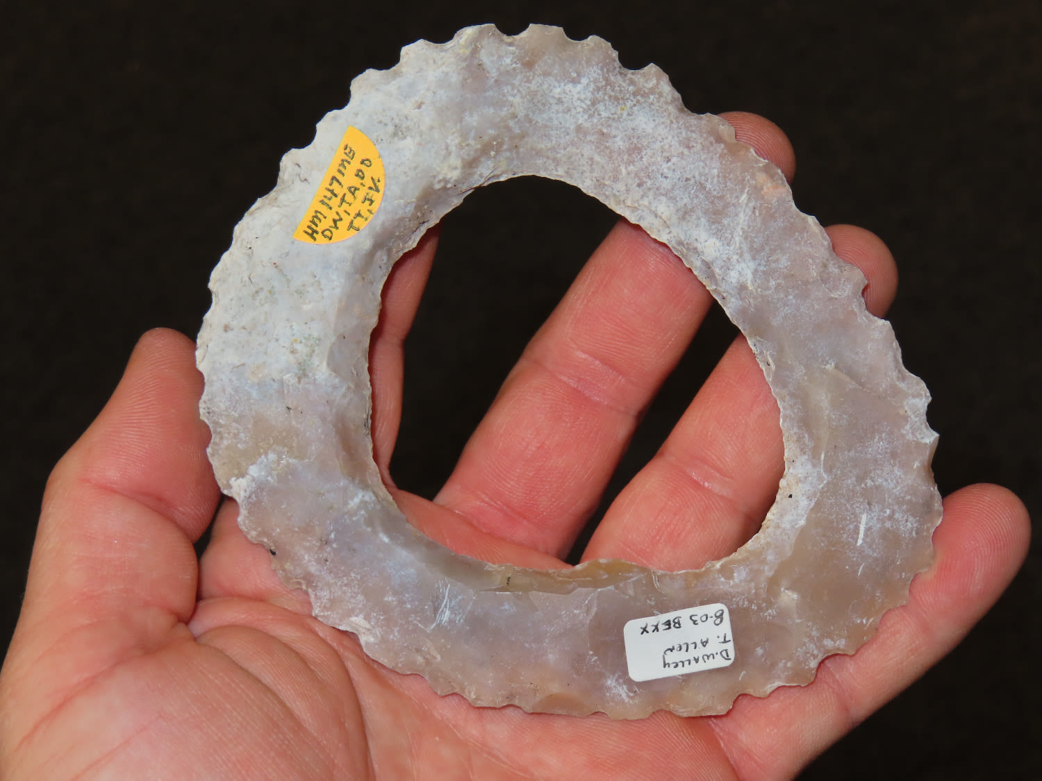 4 1/2″ x 3 3/4″ Ring Eccentric, Pre Columbian, Belieze, Ex DeRosear, D. Walley in 2004, Ex. Herb Mangold Collection