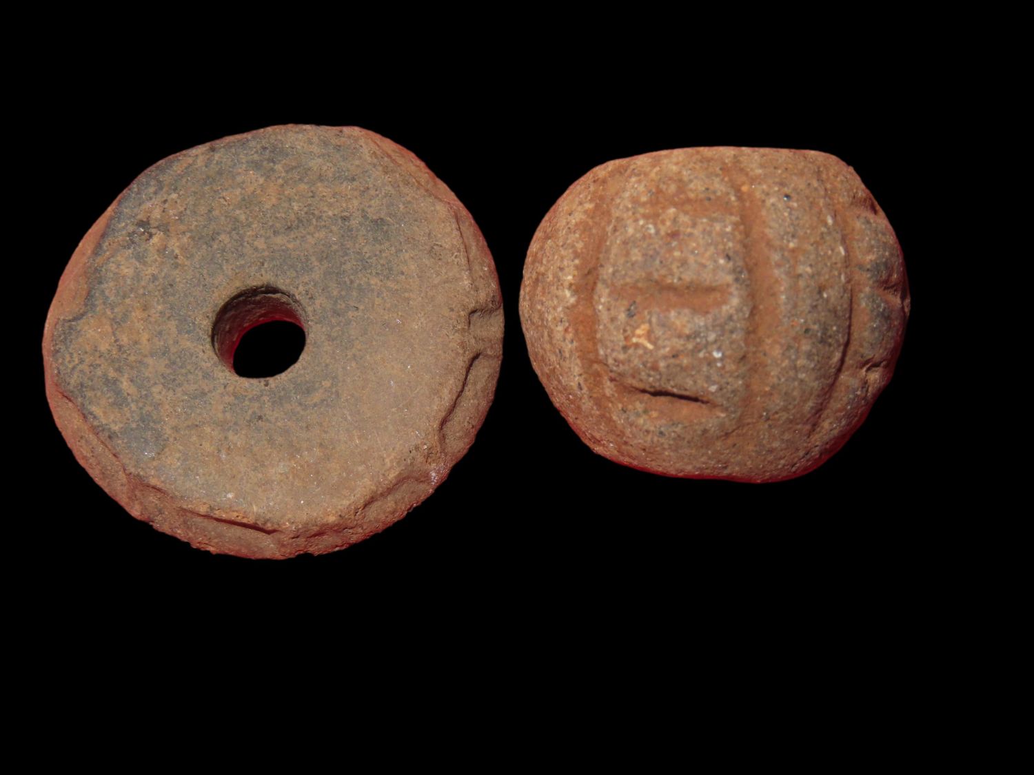 (2) Two Pre-Columbian Pottery Beads, Ex. Herb Mangold Collection