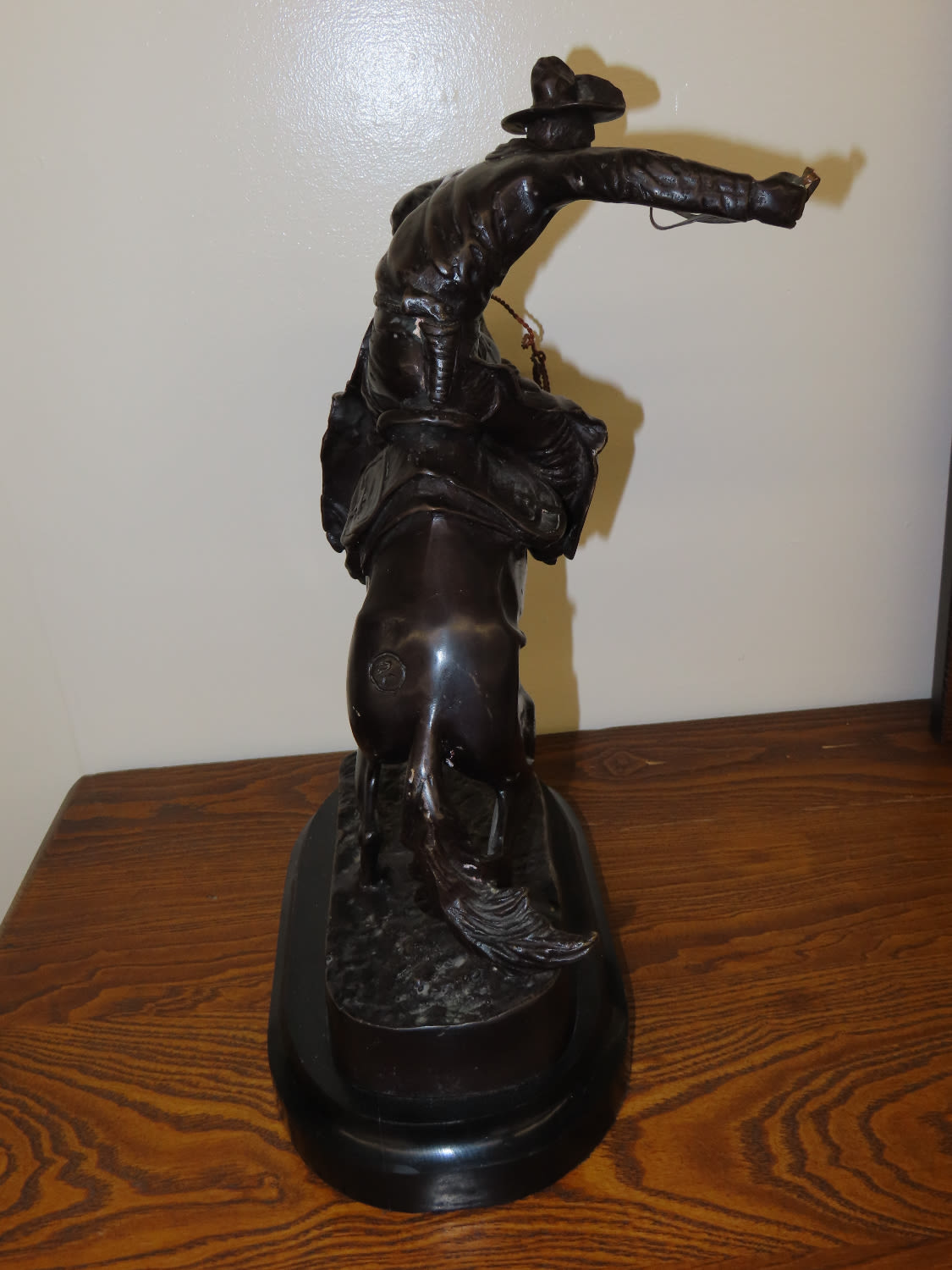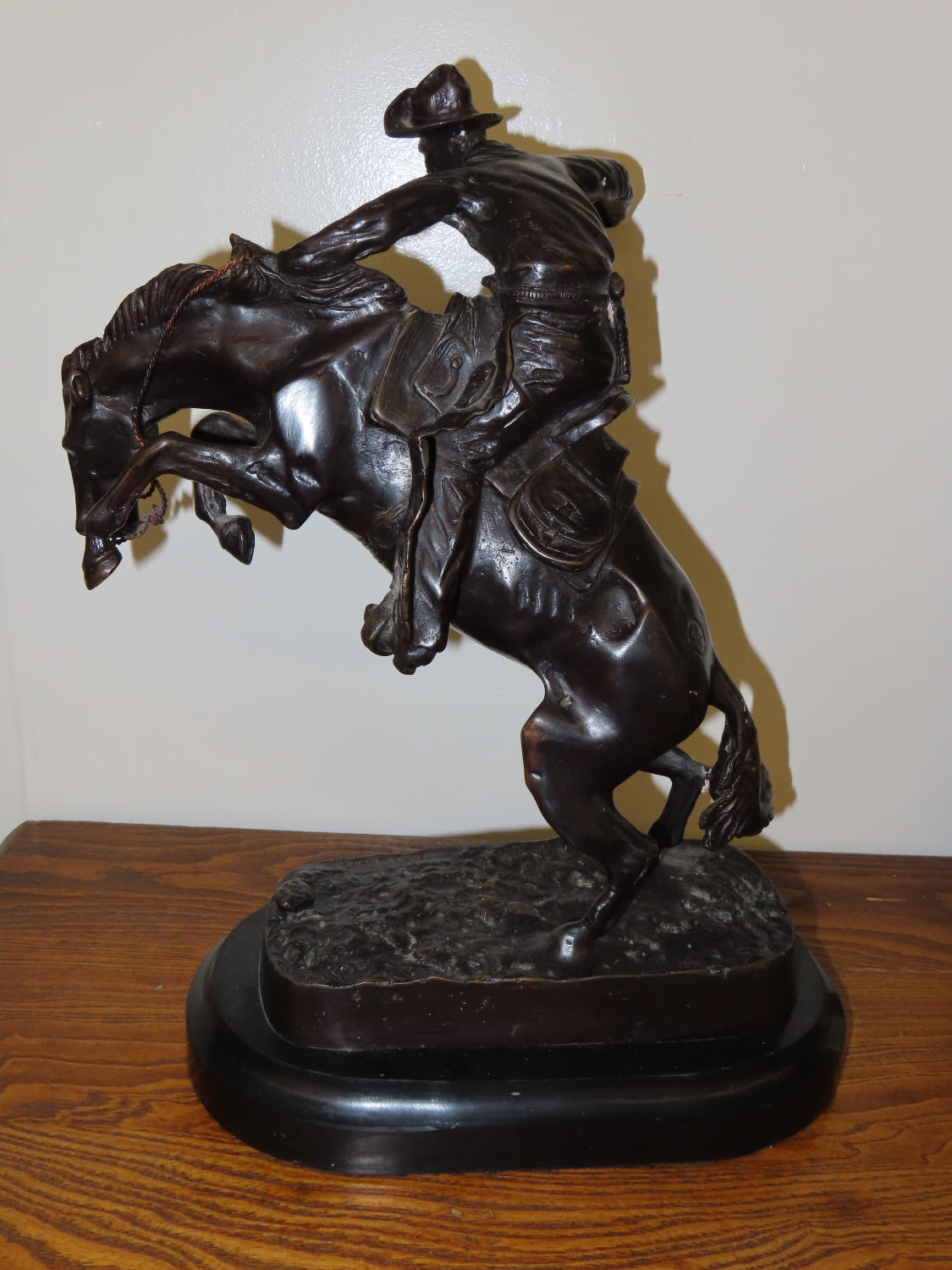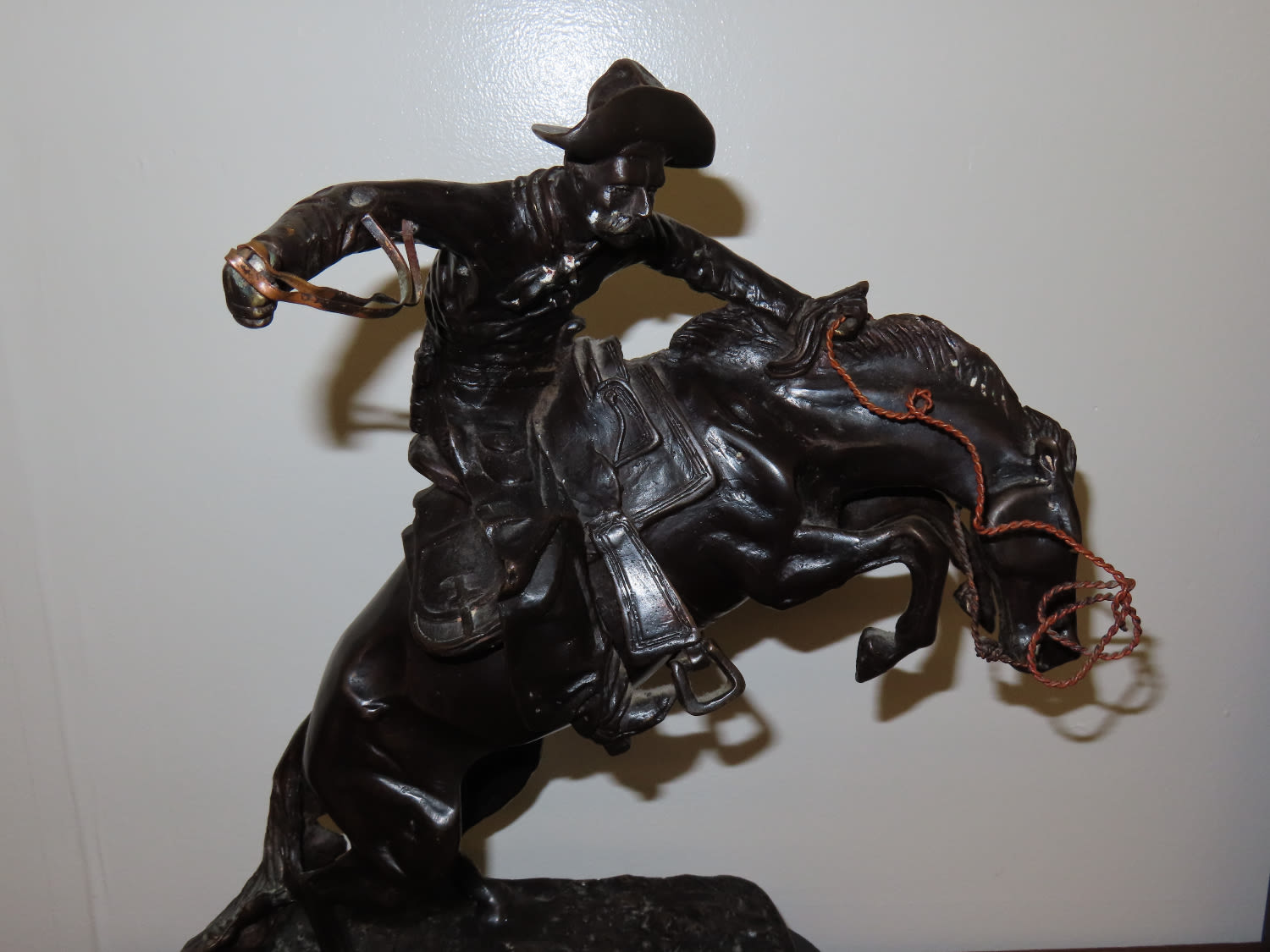 11″ Remington Bronze Sculpture “The Bronc Buster”