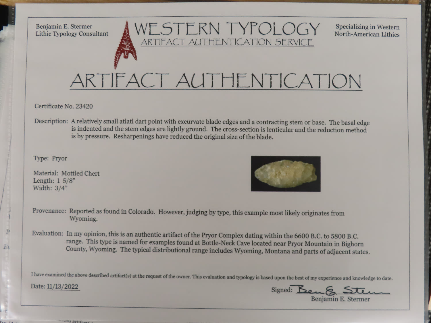 1 5/8″ High Plains Pryor, made of Mottled Chert; Ben Stermer COA; found in Colorado