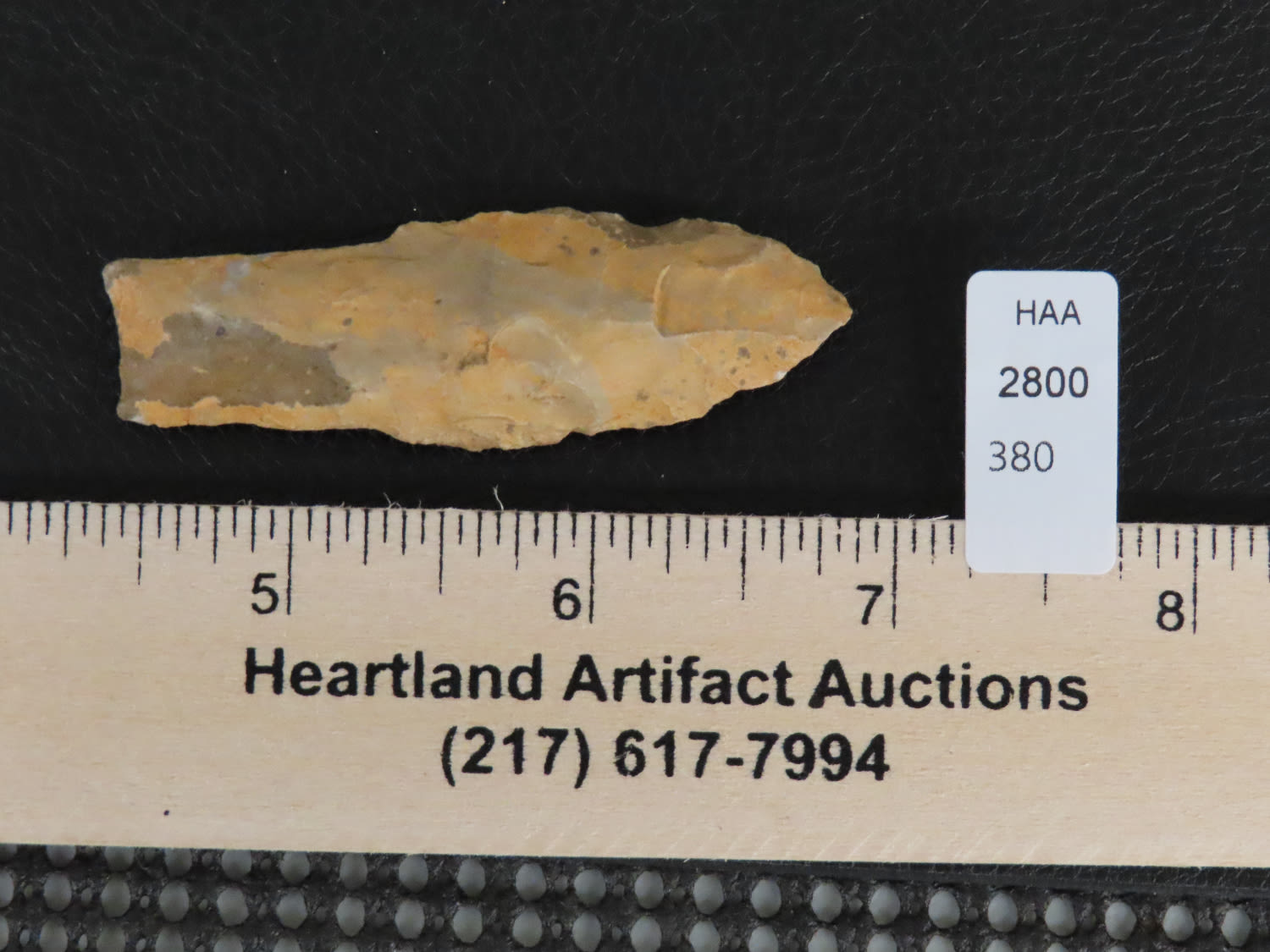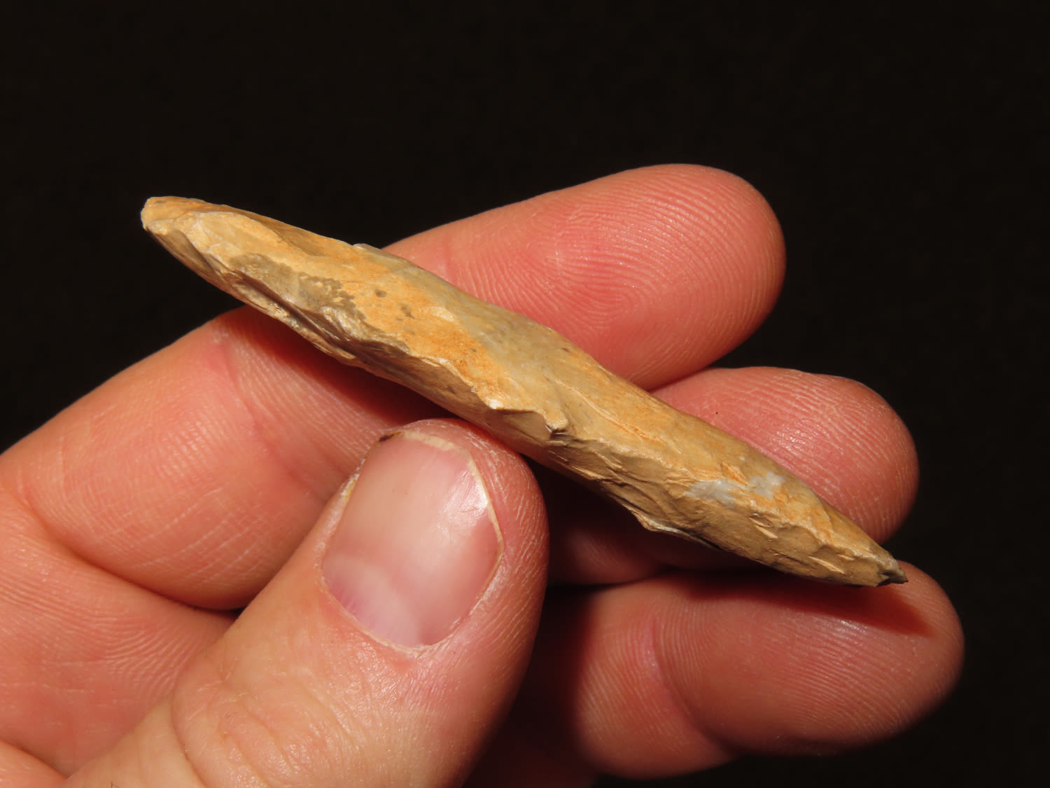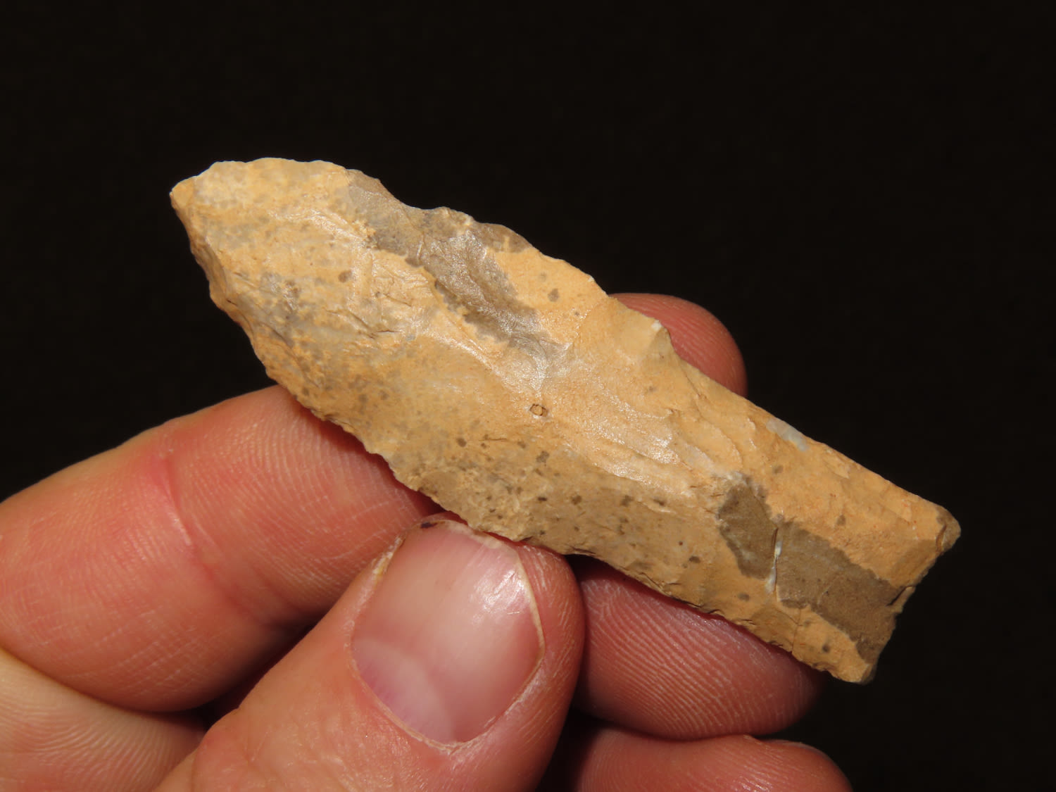 2 1/2″ Early- Mid Archaic High Plains Escobas (6000 BC – 3300 BC) Opaque Variegated material; Ben Stermer COS; Found Southern Colorado