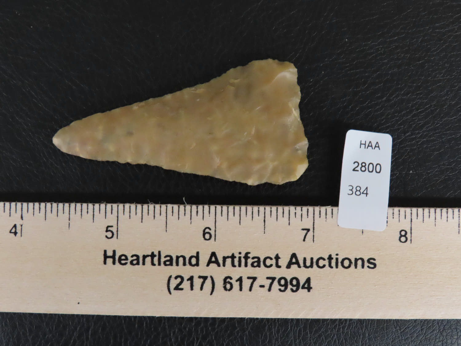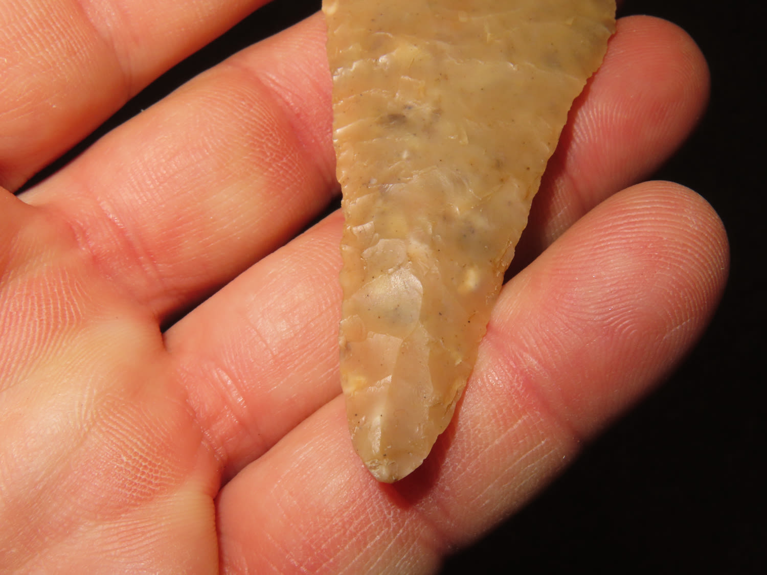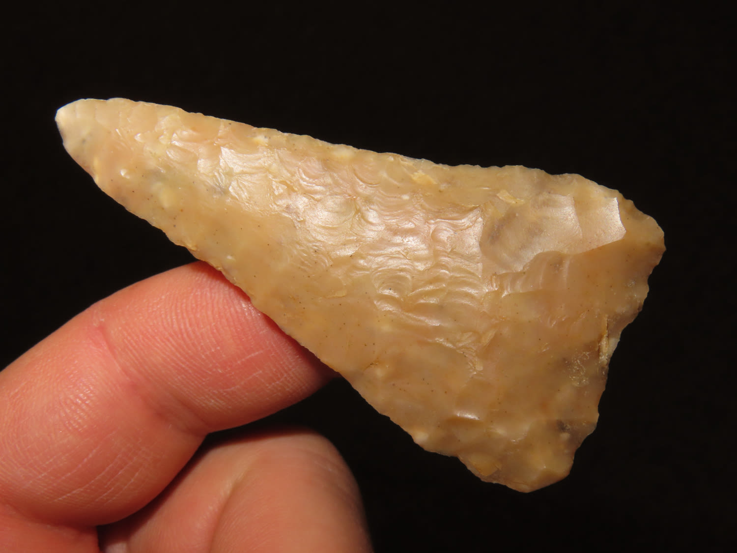 2 5/8″ Late Archaic/ Late Prehistoric High Plains Triangular Knife (1000 BC – 1200 AD range), Cream-Tan Chert Material; Ben Stermer COA; Found in Colorado