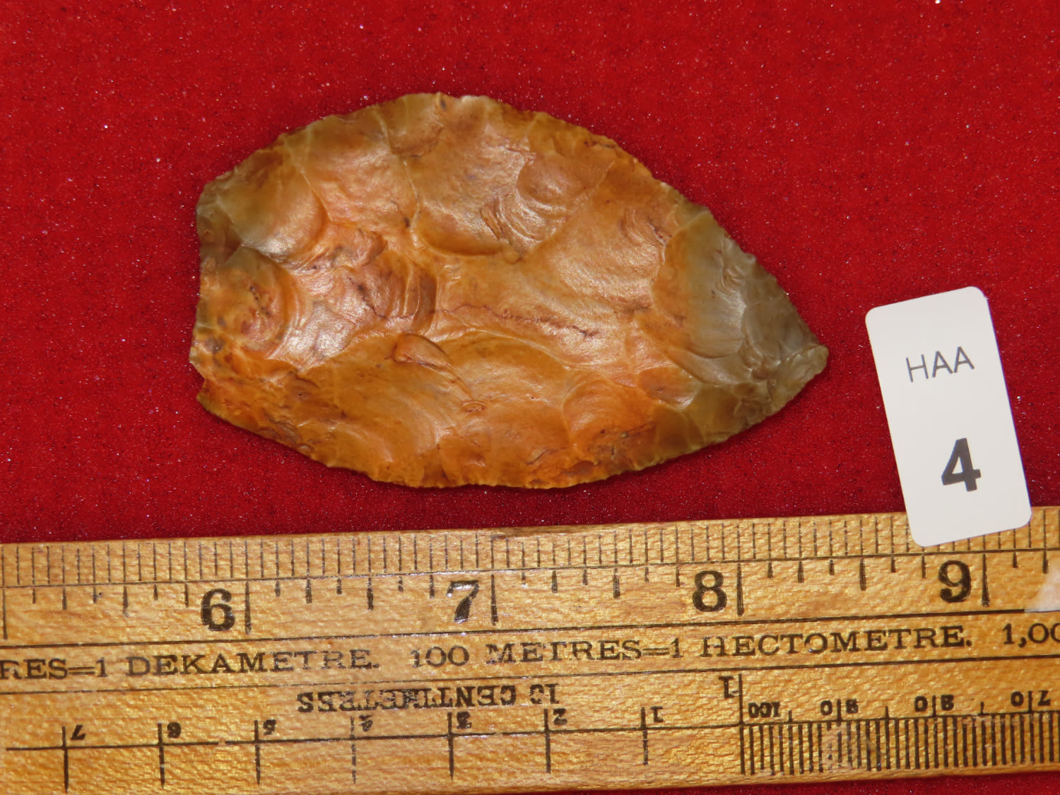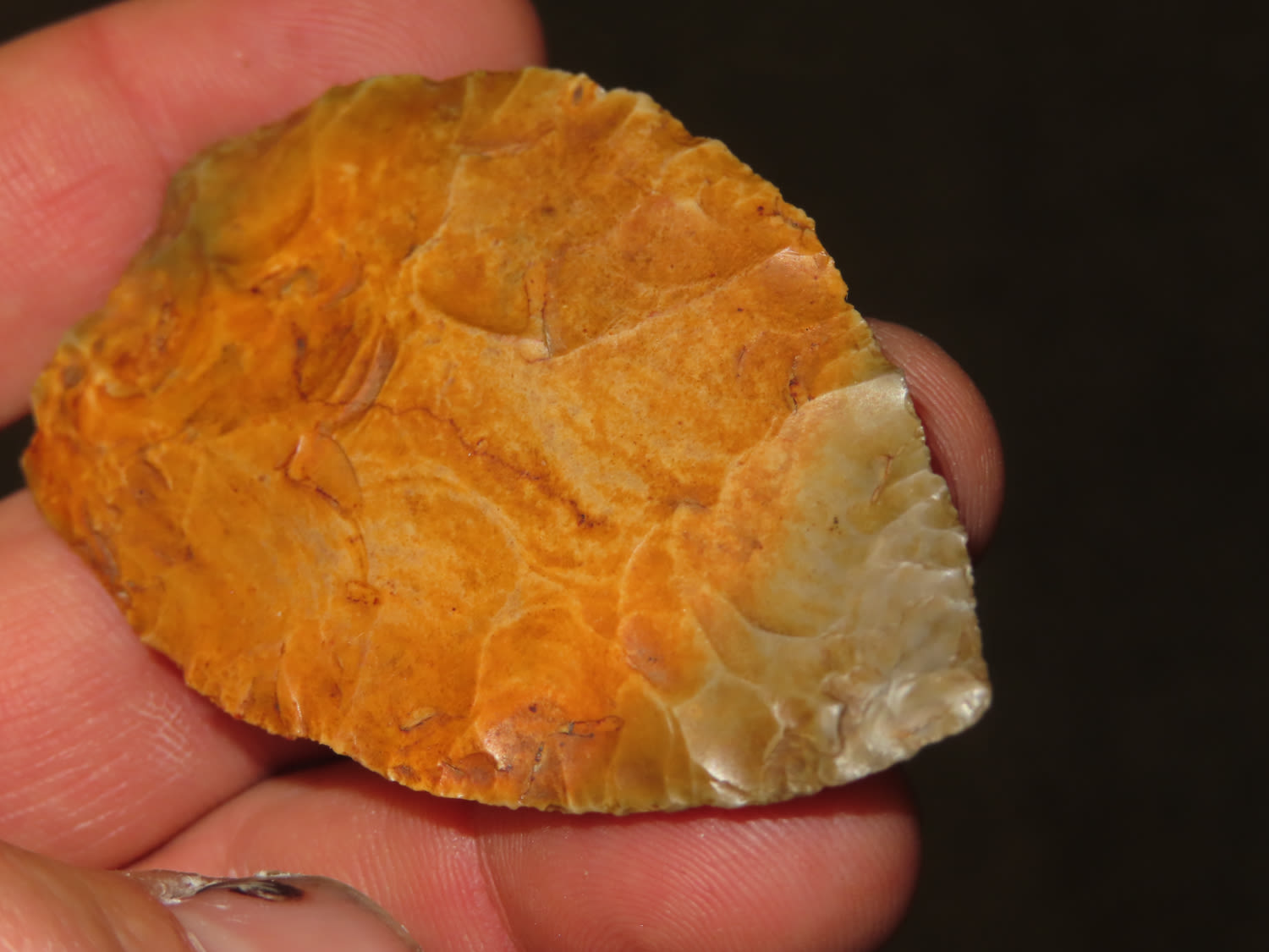 2 1/2″ Paleo Early Ovoid Knife, found in Iowa, Ex Tim Breakbill Collection