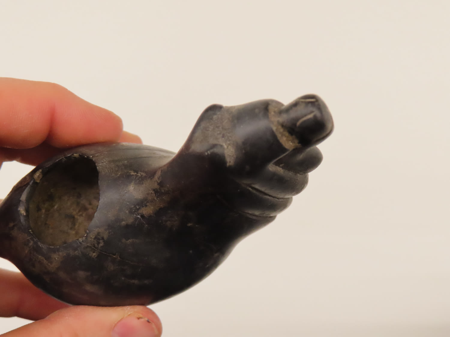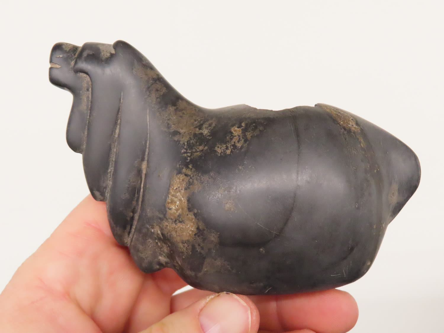 5" Stunning Canopa from Peru made of Black Granite Pre Columbian