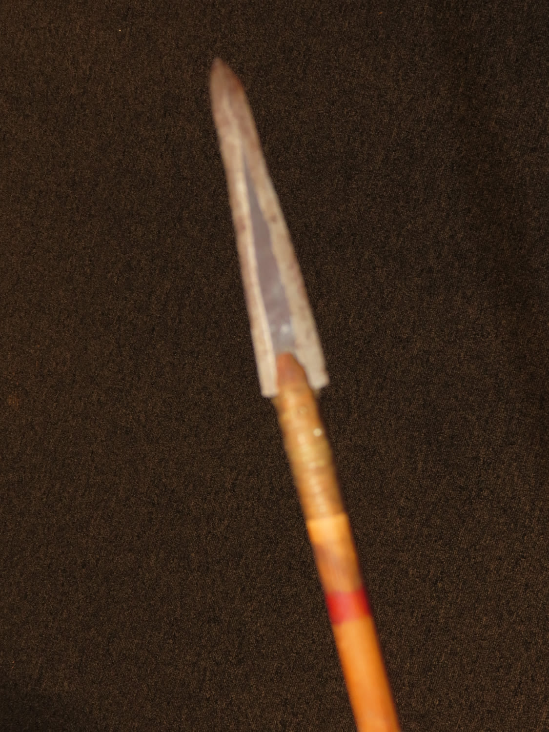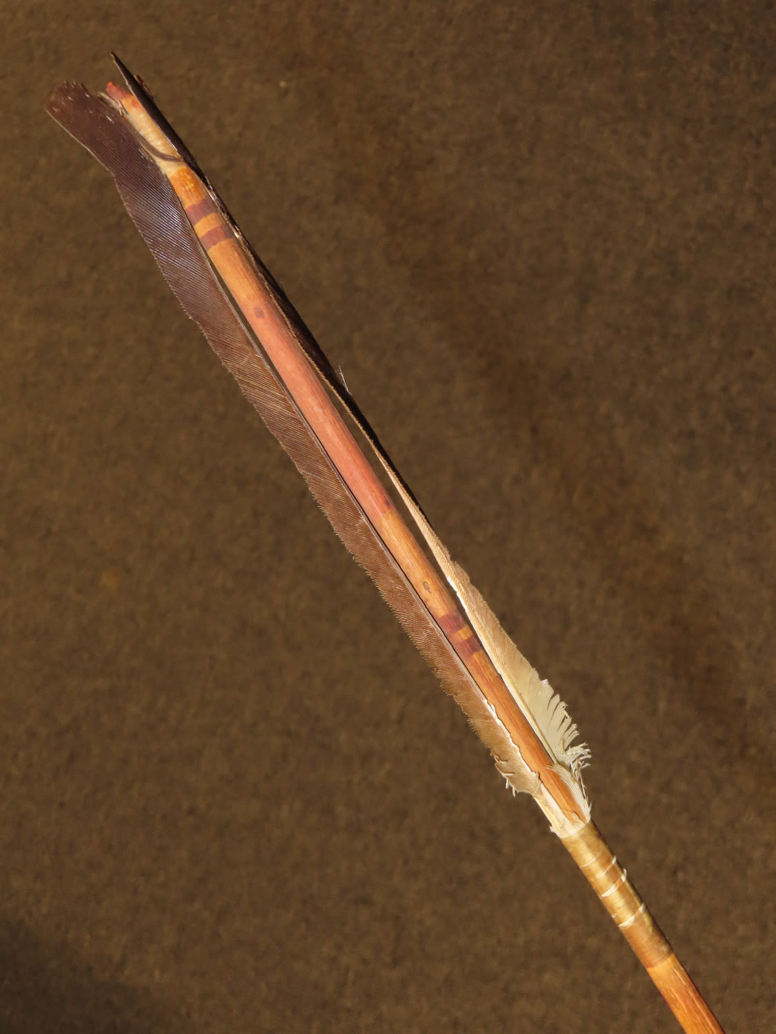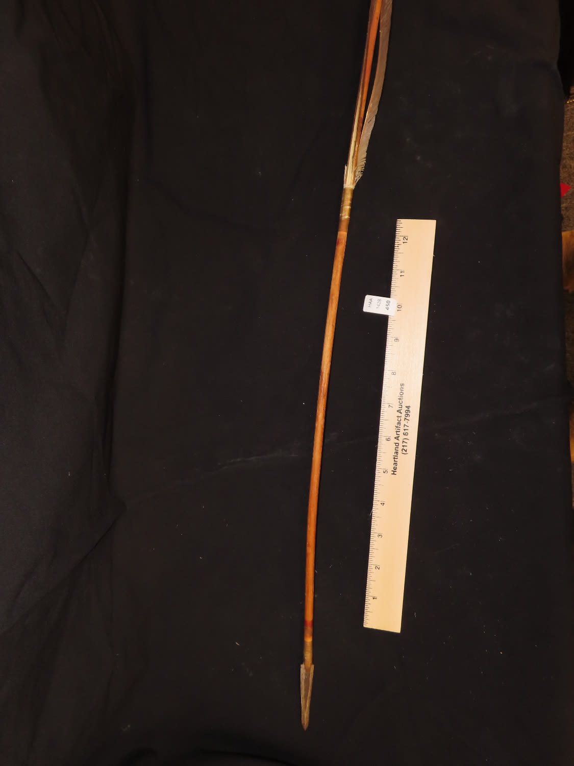 24″ Native American Arrow, Metal Point-most likely made of recycled hoop iron, minimal fletching, Ex Mitch Lewis