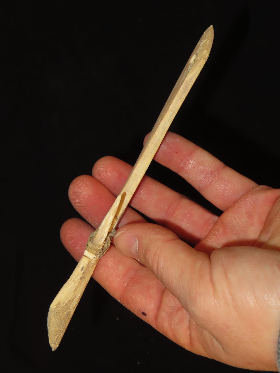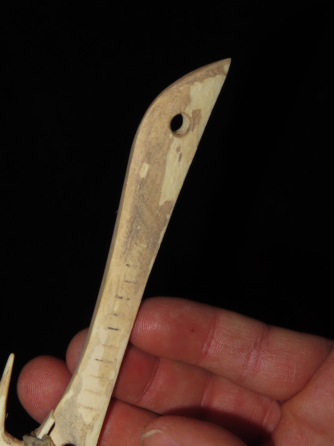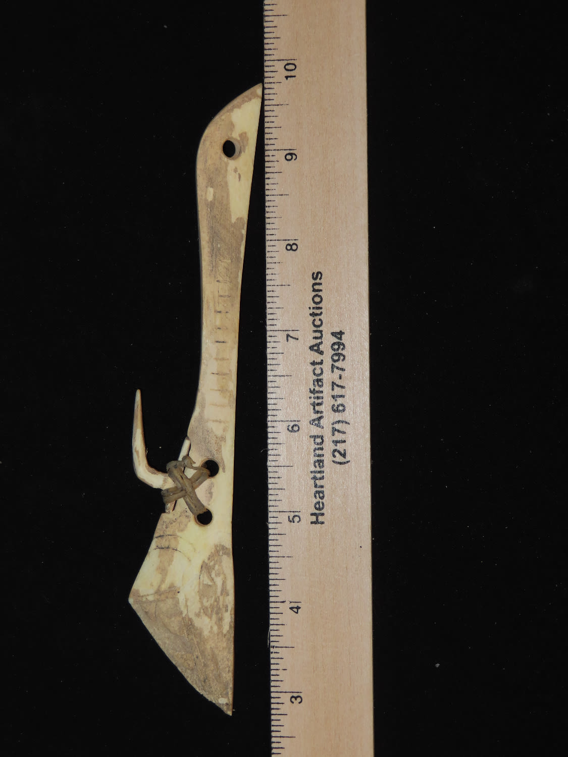 7″ Engraved Bone Halibut Fish Hook, Aleutian Islands Alaska, Inuit, Pre-1900, Collected by Famous Arctic Explorer Donald McMillan in the 1920’s Ex Tommy Bryden