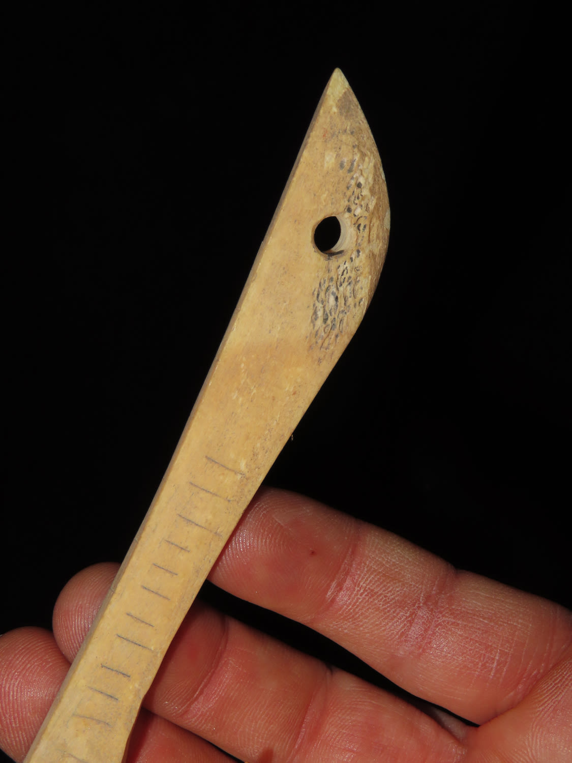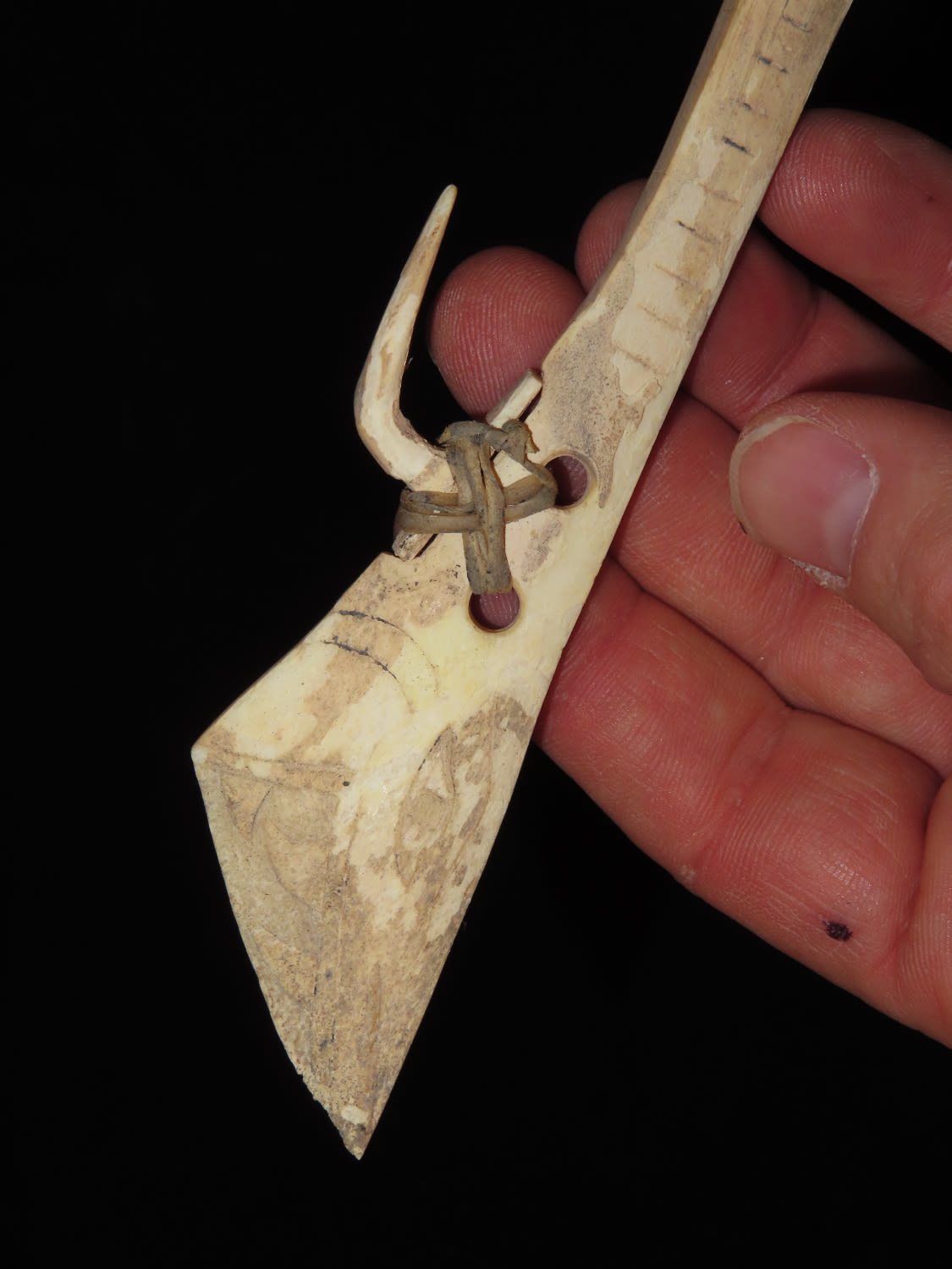 7" Engraved Bone Halibut Fish Hook, Aleutian Islands Alaska, Inuit, Pre-1900, Collected by Famous Arctic Explorer Donald McMillan in the 1920's Ex Tommy Bryden