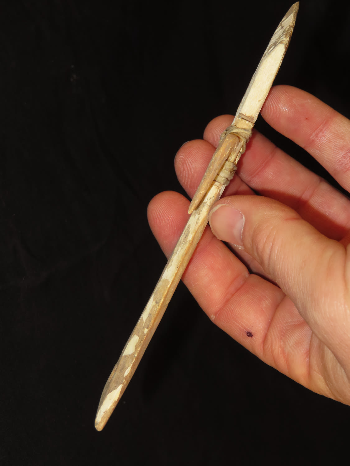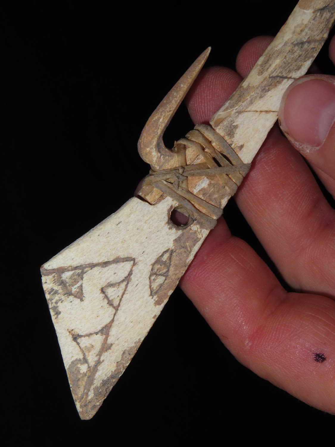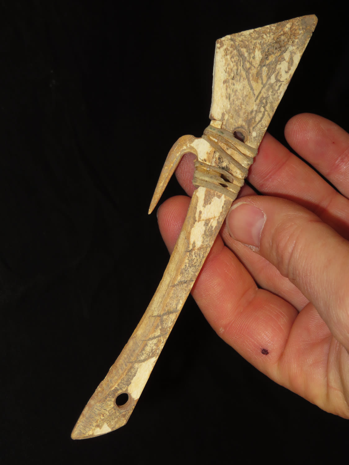 6.3/8″ Engraved Bone Halibut Fish Hook, Aleutian Islands Alaska, Inuit, Pre-1900, Collected by Famous Arctic Explorer Donald McMillan in the 1920’s Ex Tommy Bryden