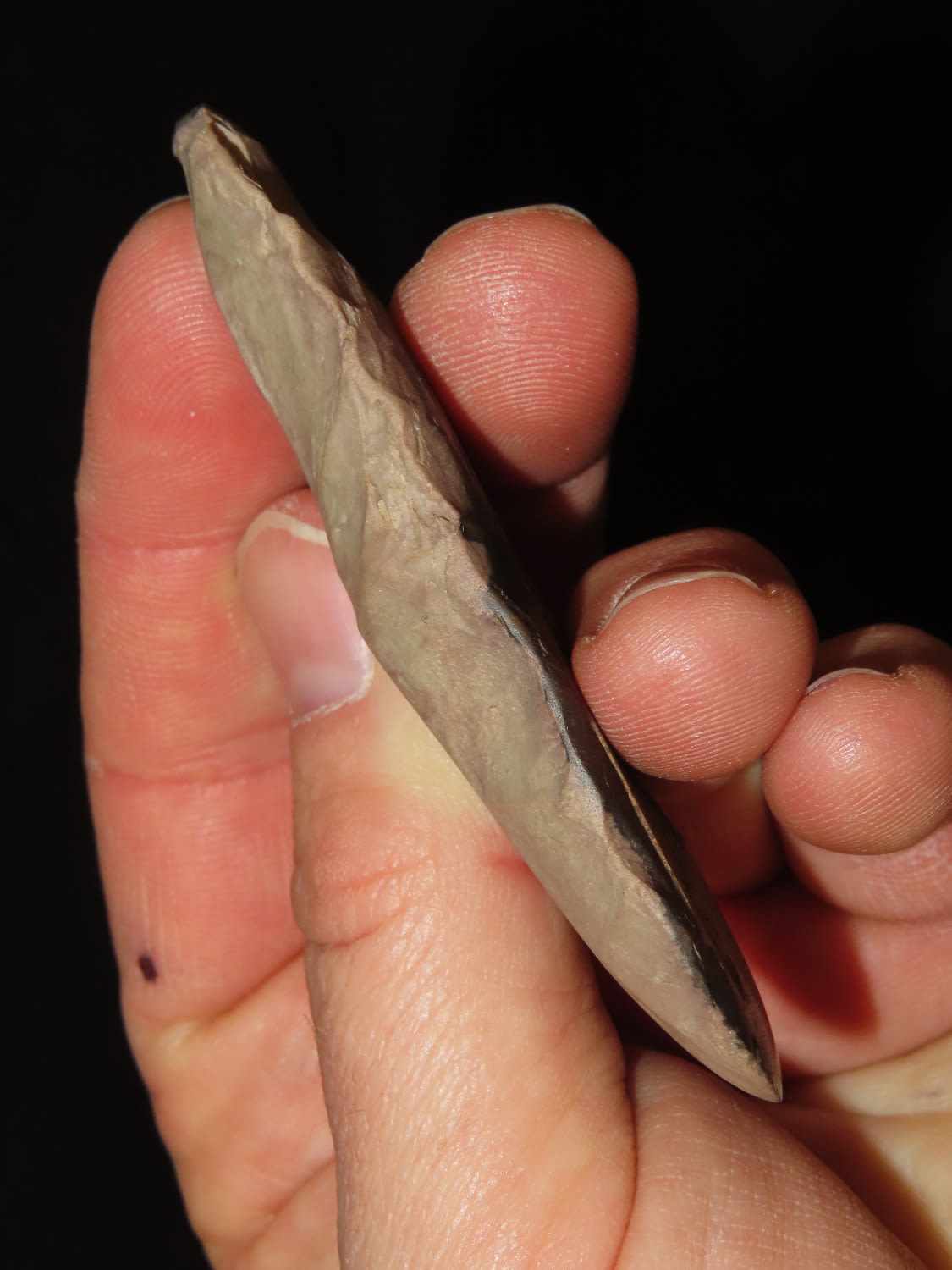 3.1/8″ Highly Polished Mill Creek Chert Chisle. Missouri Site Documented PM-5, Ex Tommy Bryden