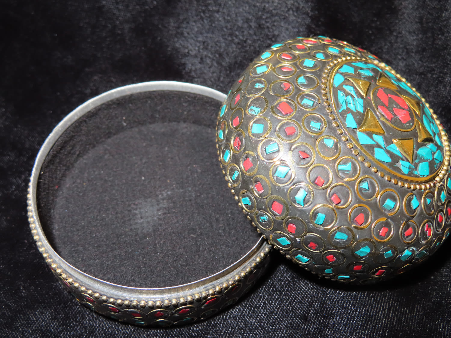 3″ Wide Beautiful Inlaid Circular Trinket Box
