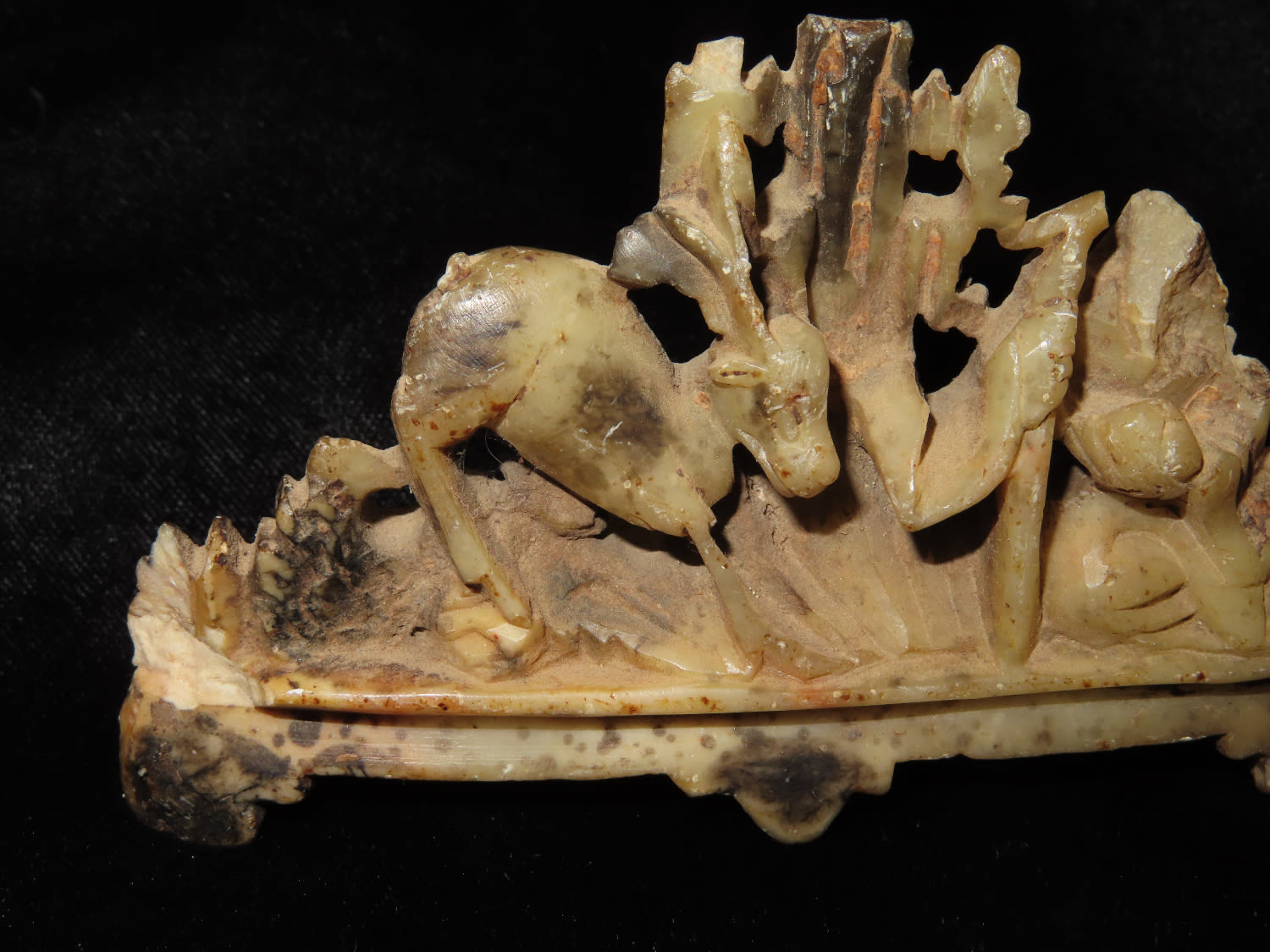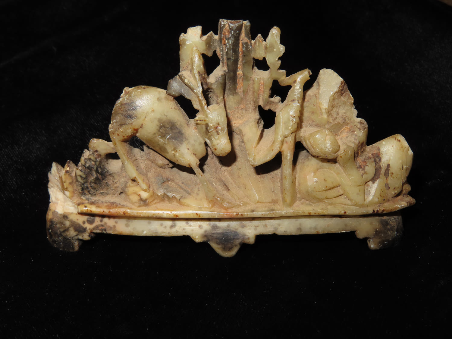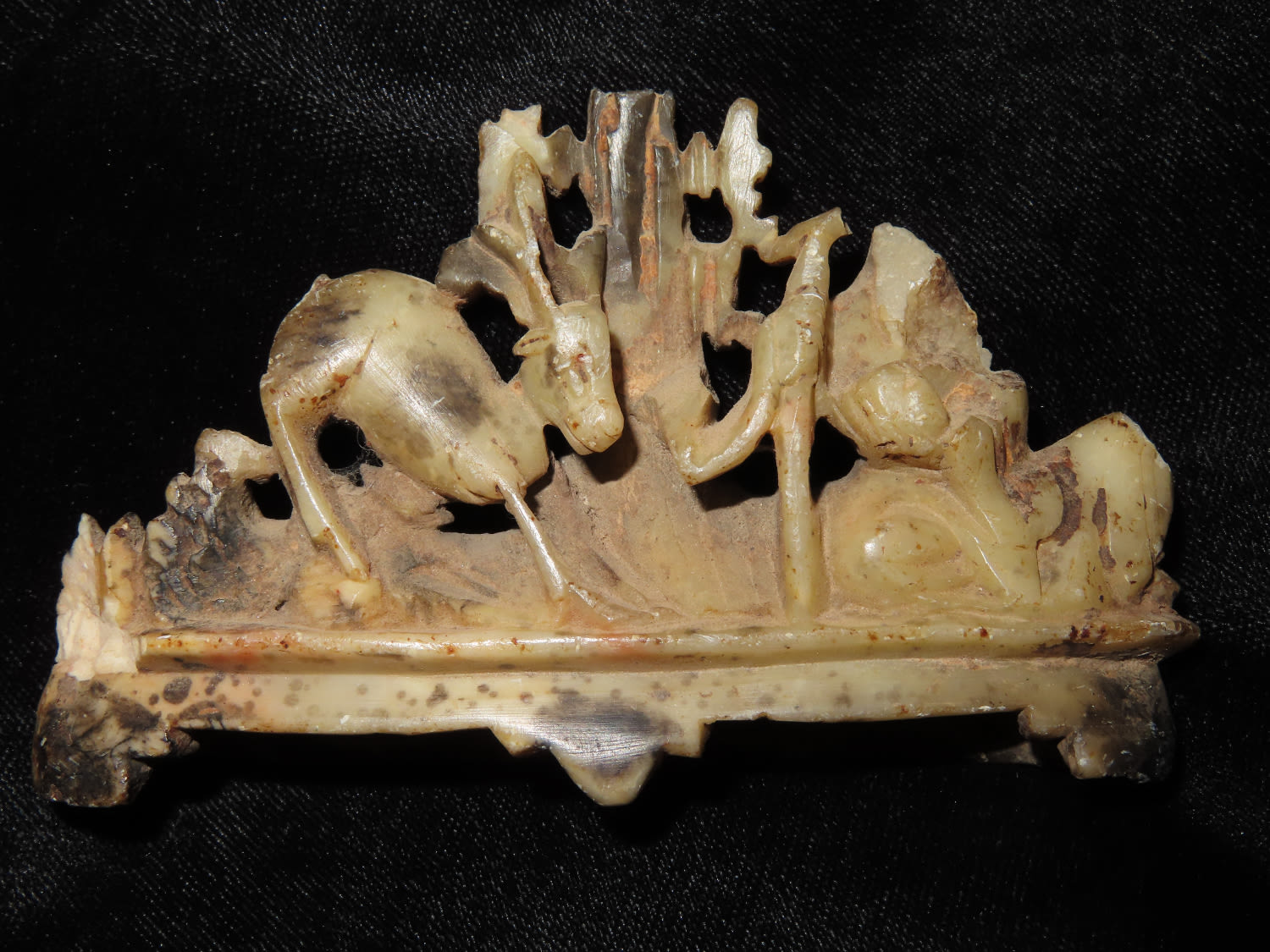 3 3/4″ Antique Carved Marble With Deer & Tree Scenery