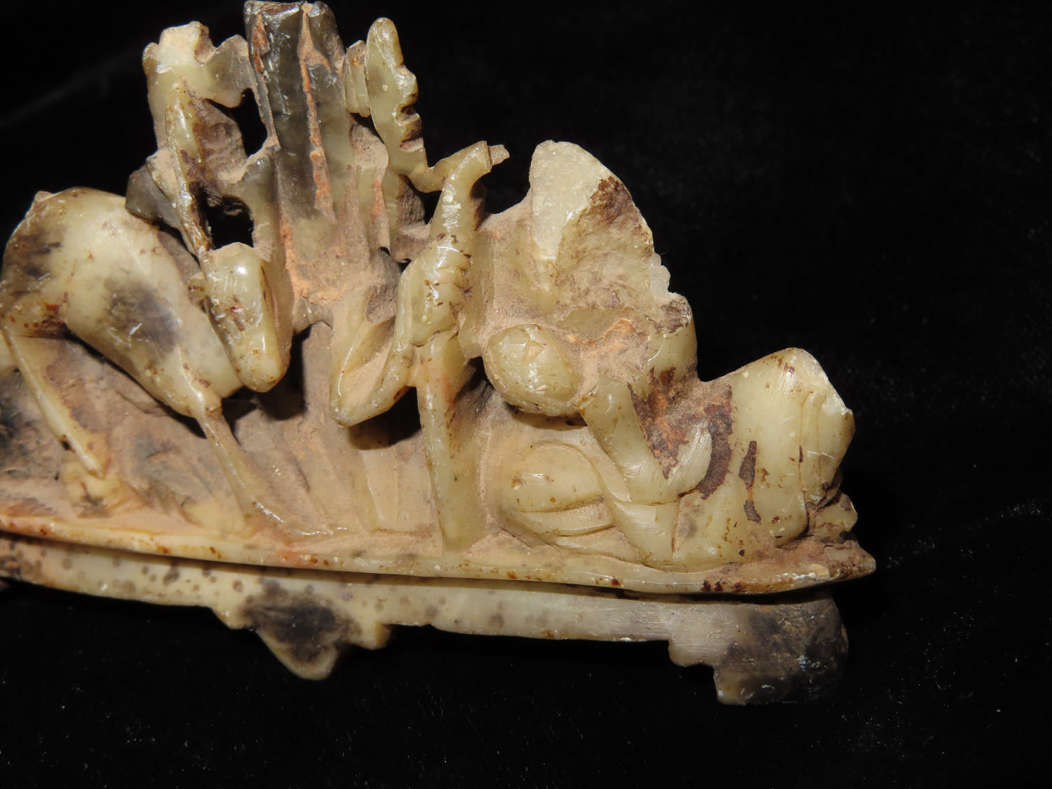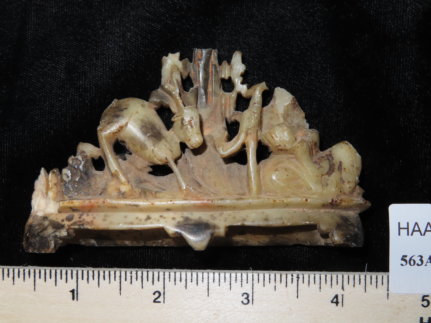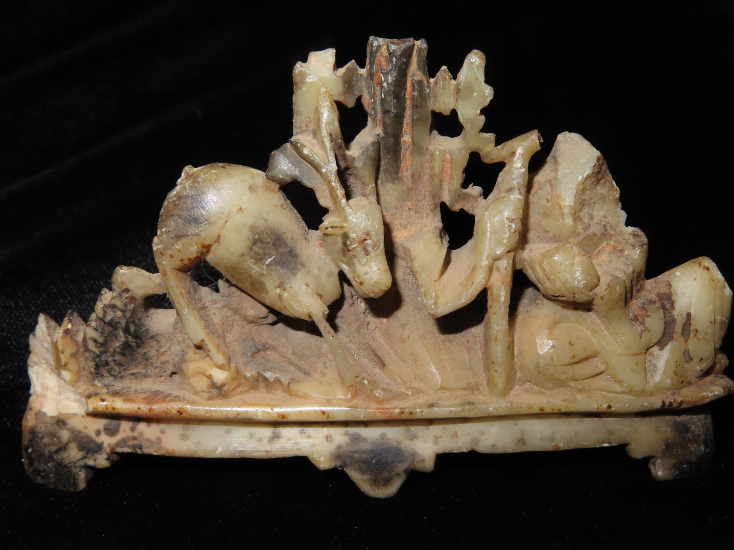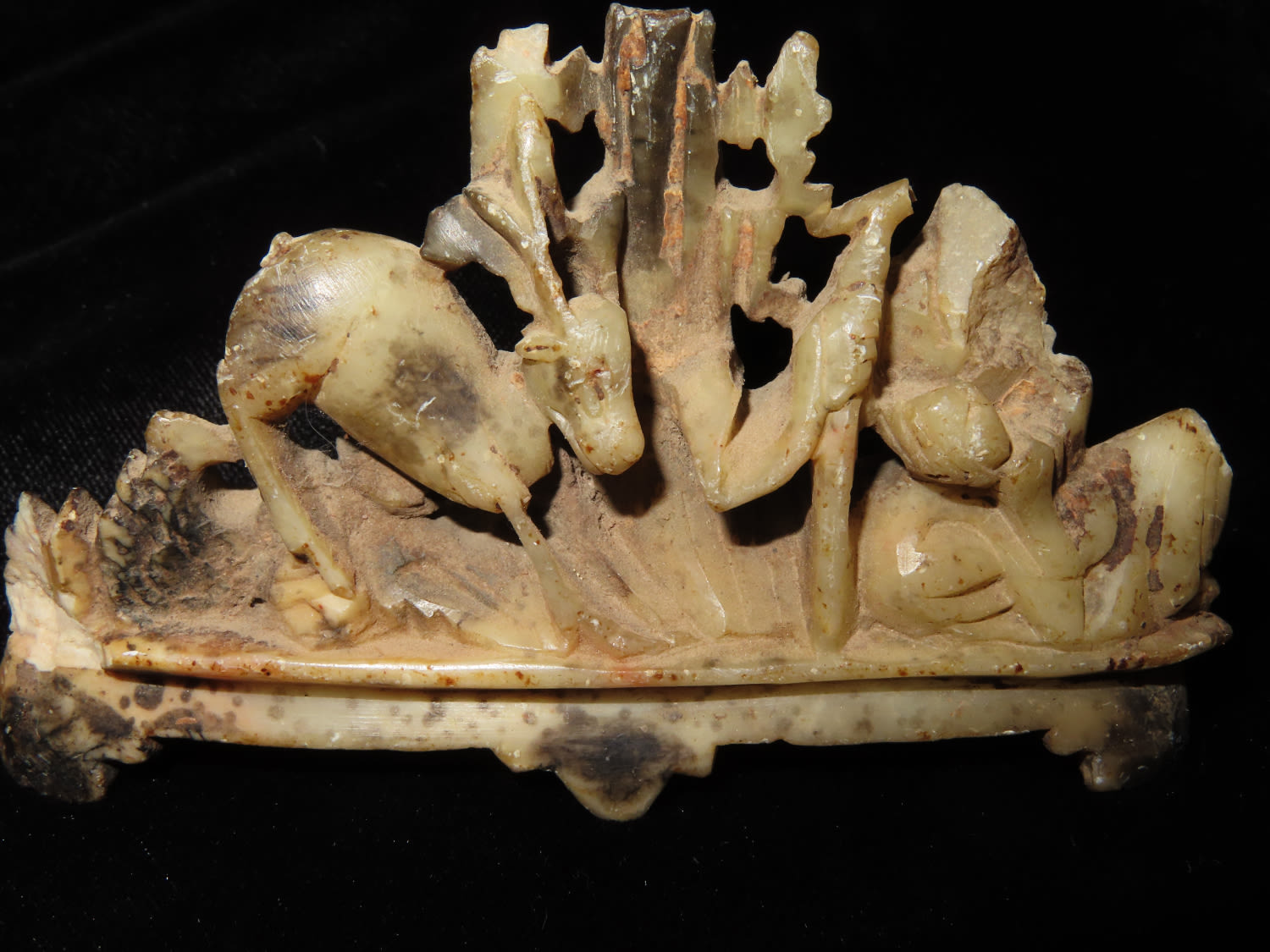 3 3/4″ Antique Carved Marble With Deer & Tree Scenery
